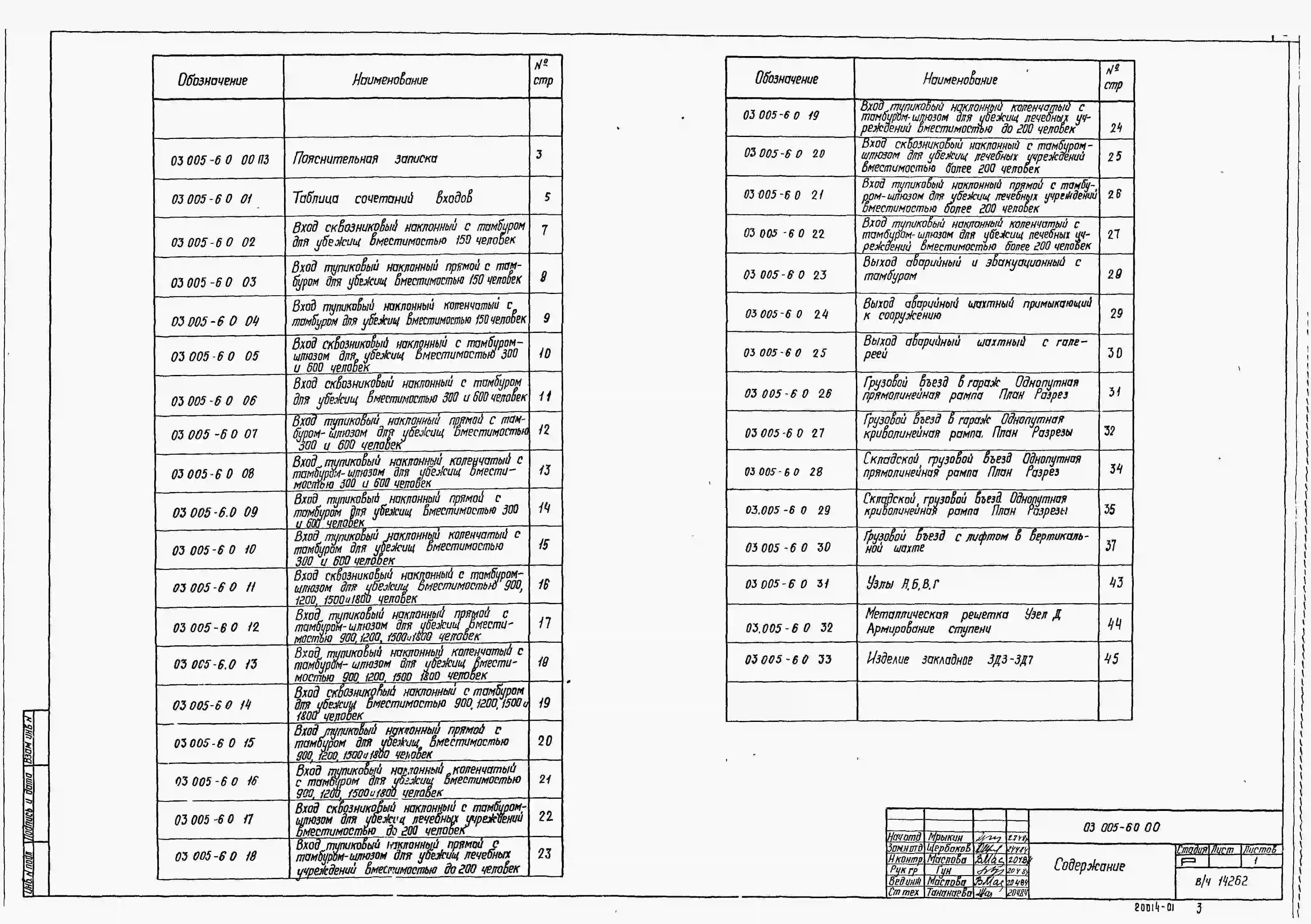 Серия 03.005-6 Входы, подходные галереи, тамбуры и шлюзы, аварийные выходы, грузовые въезды и рампы из железобетонных блоков в убежищах II-IV классов. Выпуск 2. Сборные железобетонные блоки входов. Рабочие чертежи