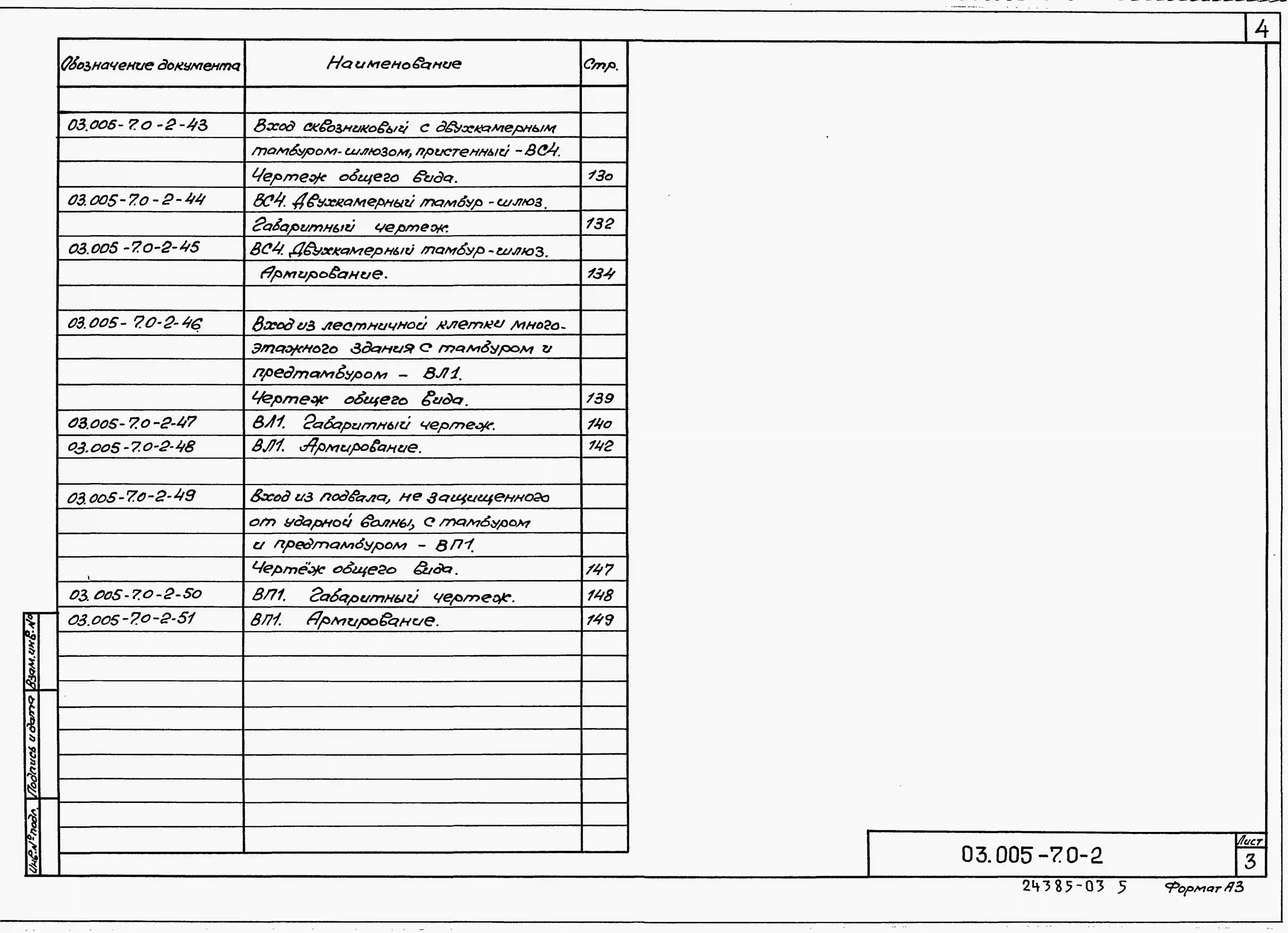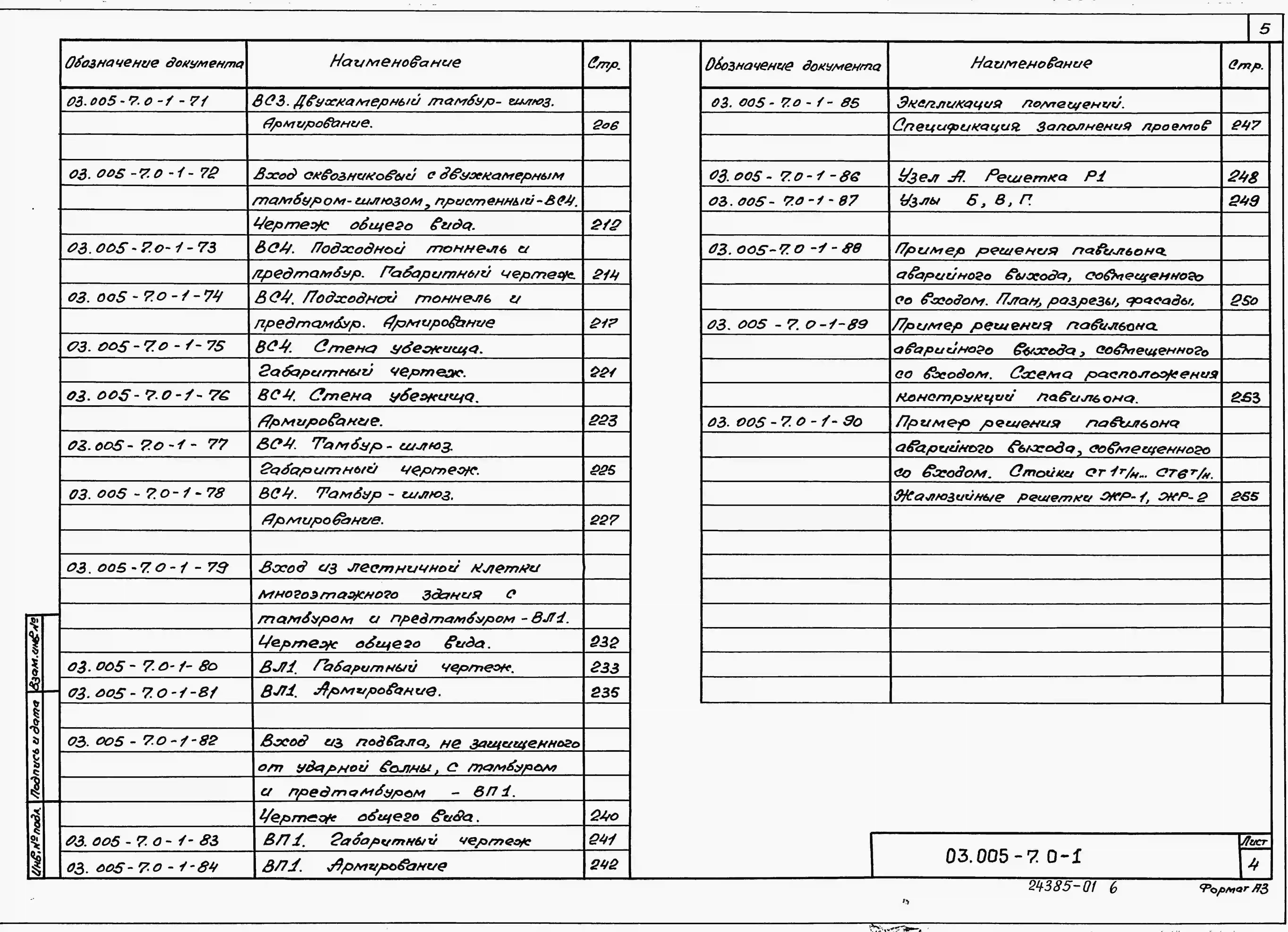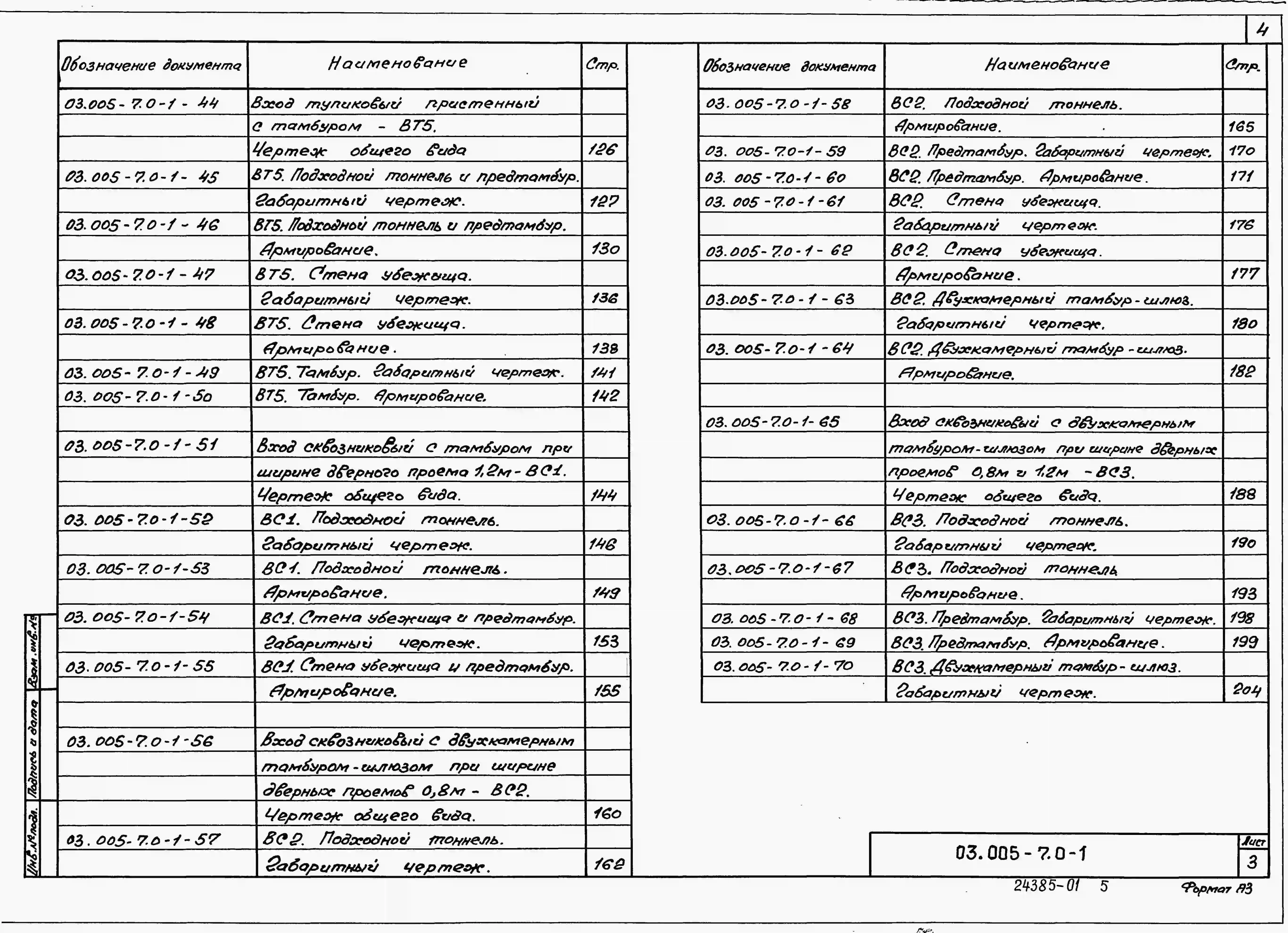 Серия 03.005-7 Монолитные железобетонные входы и аварийные выходы для защитных сооружеий из конструкций серии У-01-01/80. Выпуск 0-2. Конструктивные решения входов и аварийных выходов защитных сооружений в водонасыщенных грунтах. Материалы для проектиров
