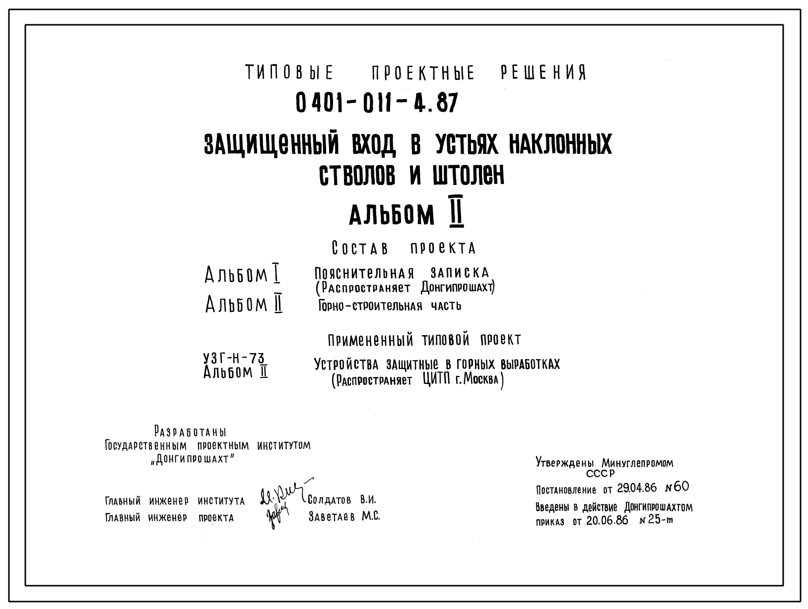 Типовой проект 0401-011-4.87 Защищенный вход в устьях наклонных стволов и штолен