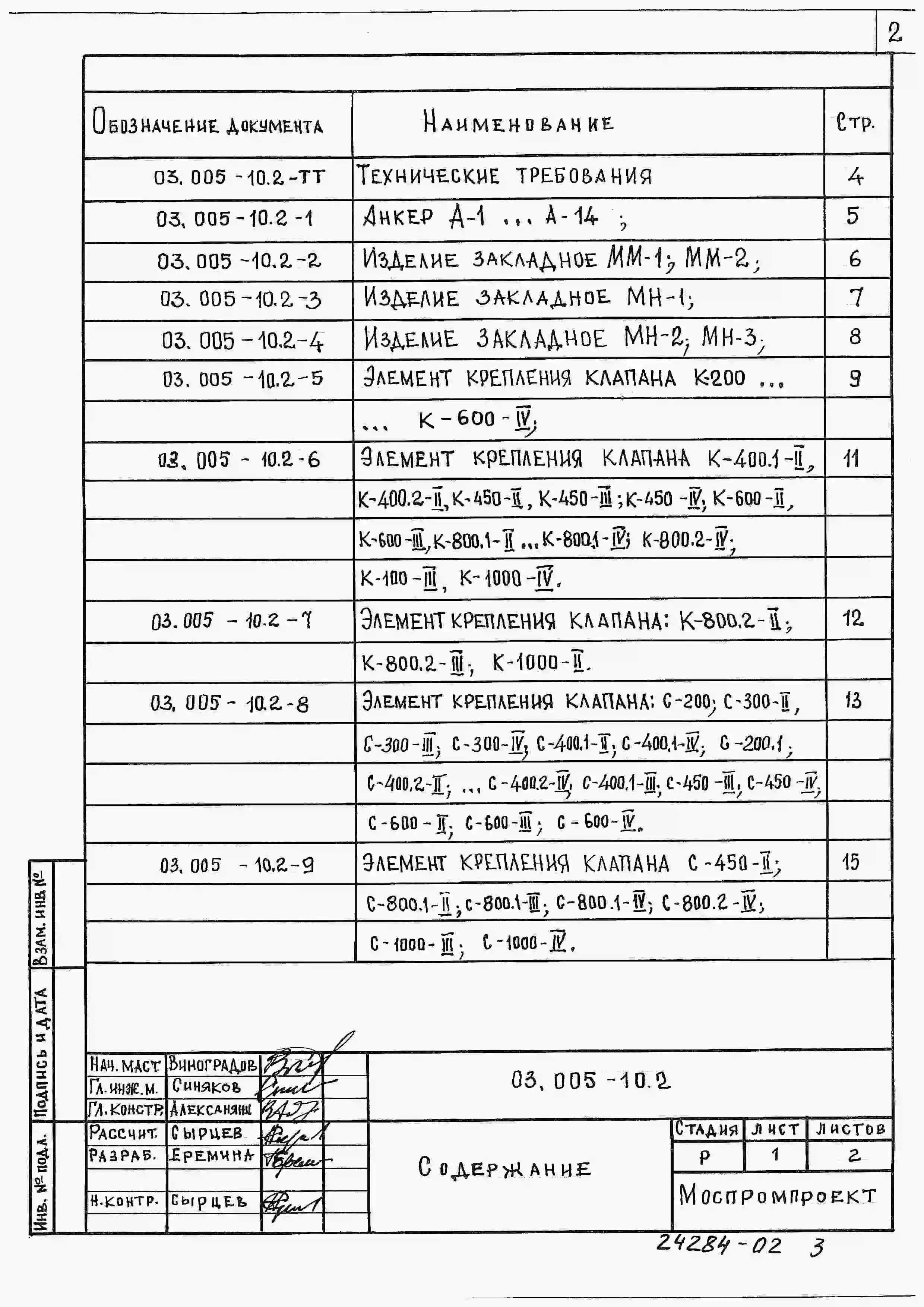 Серия 03.005-10 Крепление внутреннего оборудования и защитных устройств к ограждающим конструкциям убежищ гражданской обороны II-IV классов: Выпуск 2. Арматурные и закладные изделия. Рабочие чертежи