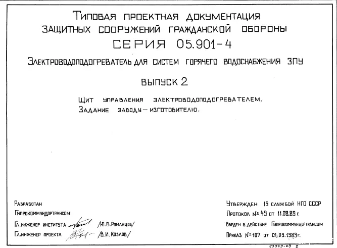 Серия 05.901-4 Электроподогреватель для систем горячего водоснабжения ЗПУ: Выпуск 2. Щит управления электроподогревателем. Задание заводу-изготовителю