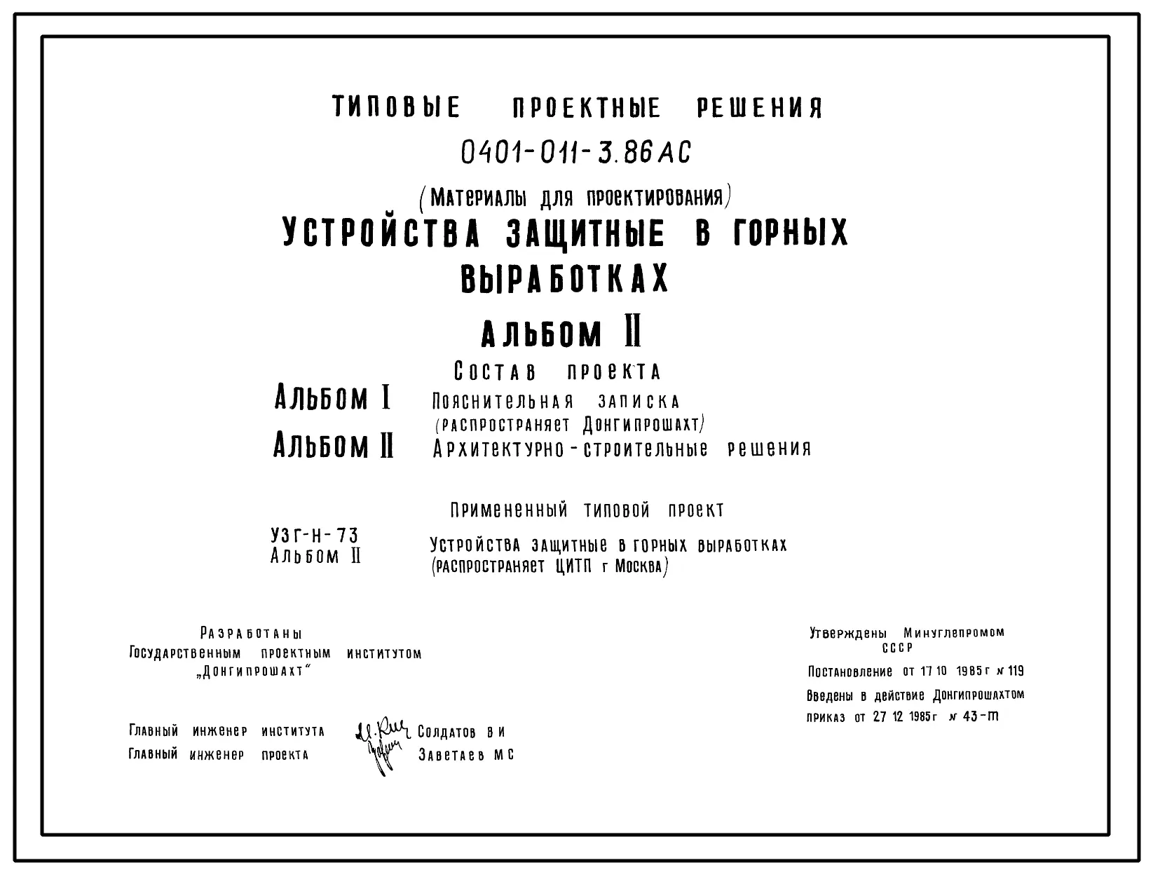 Типовой проект 0401-011-3.86 Устройства защитные в горных выработках (Дополнение к проекту УЗГ-Н-73)