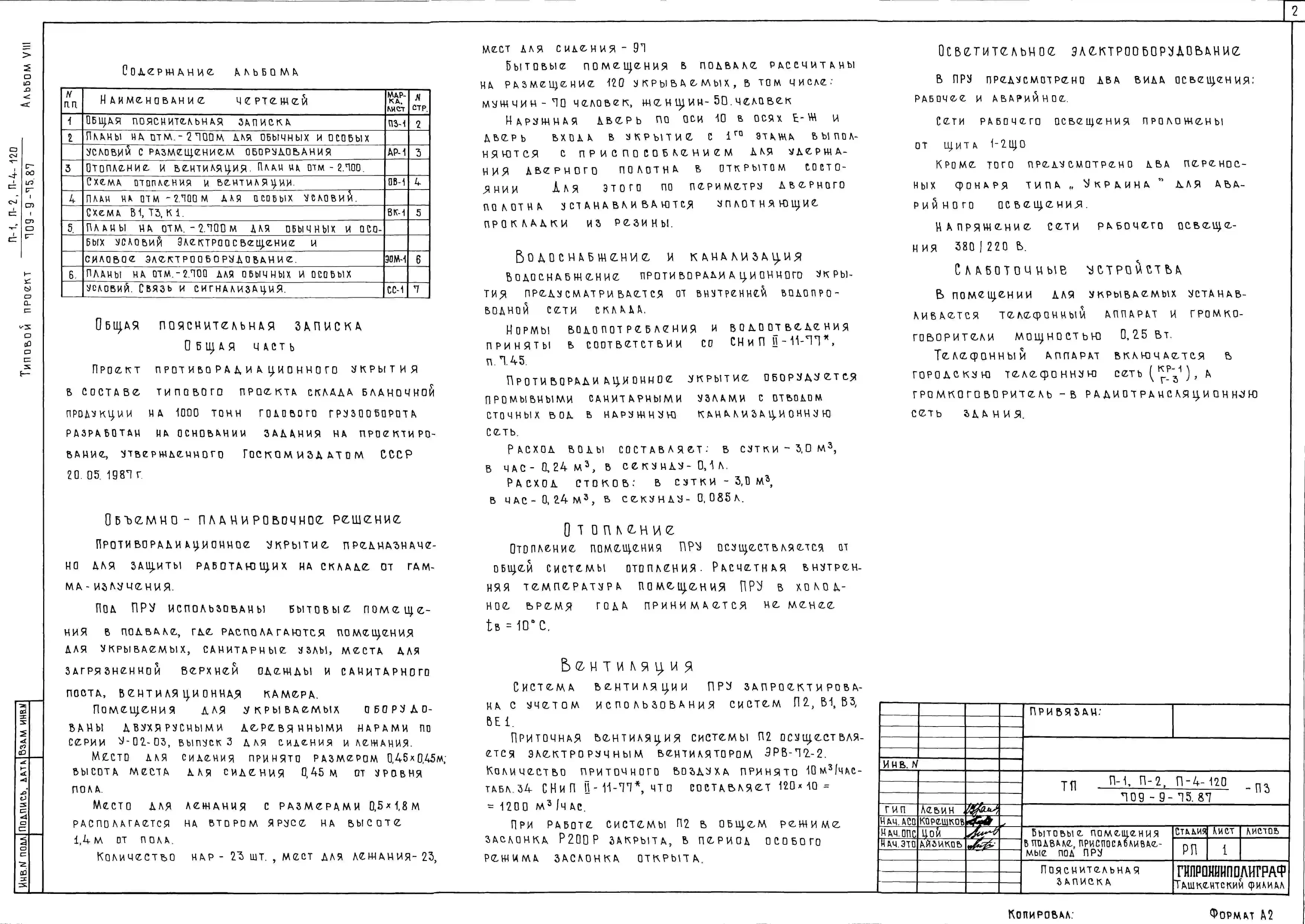 Типовой проект П-2,П-4-120 709-9-75.87 Бытовые помещения в подвале склада бланочной продукции на 1000 т годового грузооборота. Площадь основных помещений 74,5 м2
