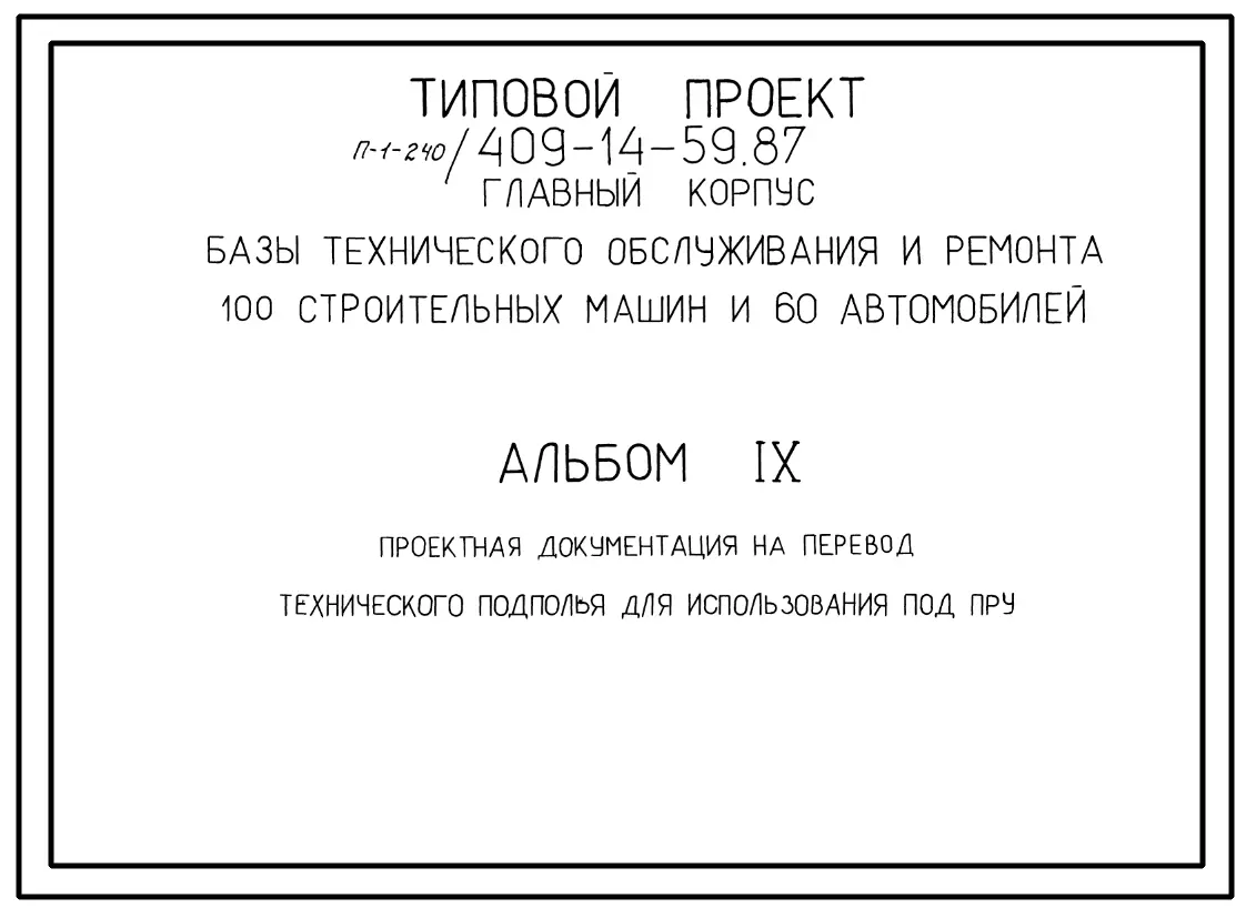 Типовой проект П-1-240(409-14-59.87) Технического подполье пристройки административно-бытовых помещений главного корпуса базы технического обслуживания и ремонта, (убежище на 240 человек, размеры убежища 18м на 13,2м, режимы вентиляции 1,2).