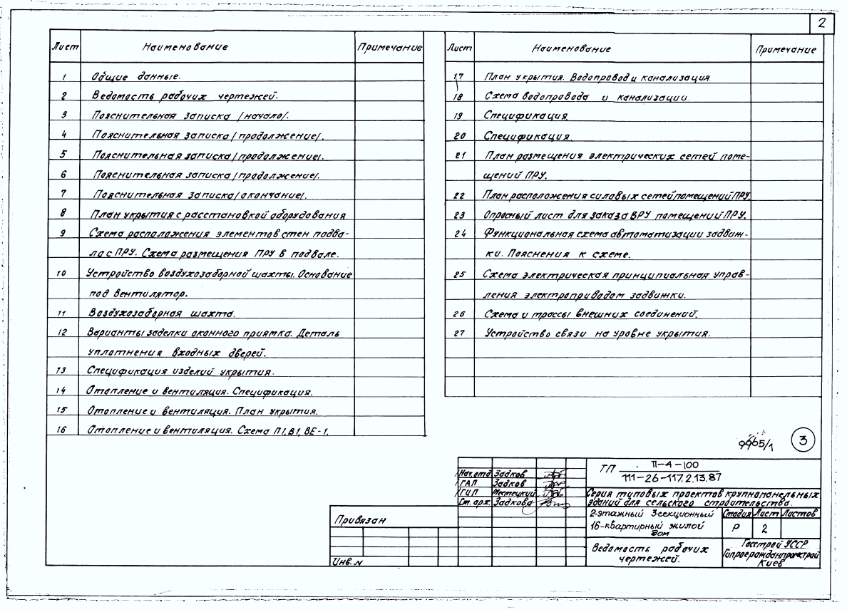 Типовой проект П-4-100(111-26-117.2.13.87) Хозяйственные помещения в подвале 2-этажного 3-секционного 16-квартирного жилого дома, (убежище на 100 человек, размеры убежища 24м на 10,8м, режимы вентиляции 1,2).