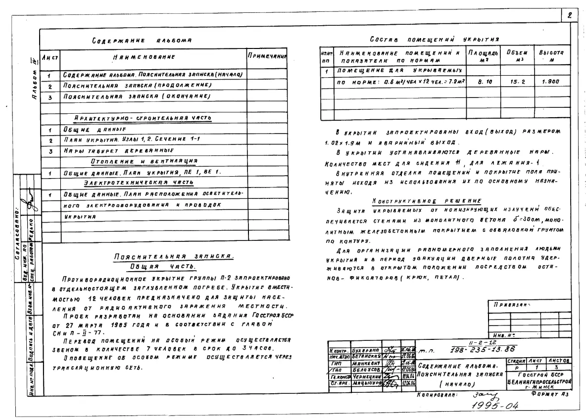 Типовой проект П-2-12(198-235-13.86) Хозяйственное помещение заглубленного погреба, (убежище на 12 человек, размеры убежища 4,2м на 4,2м, режимы вентиляции 1).