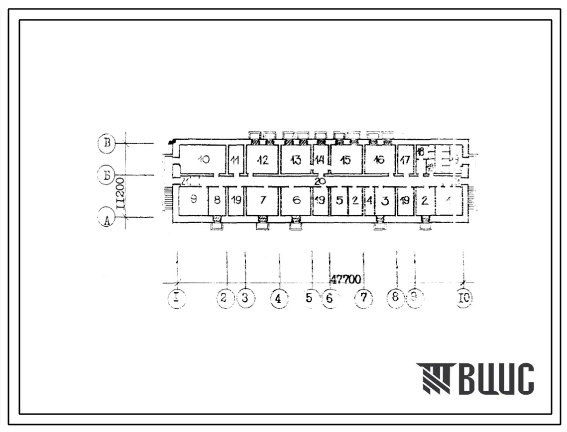 Типовой проект Б-1-490(114-204-14с) Помещения общественного назначения в подвале 2-х этажного 12-квартирного 3-секционного жилого дома, (убежище на 490 человек, размеры убежища 47,7м на 11,2м, режимы вентиляции 1,2).