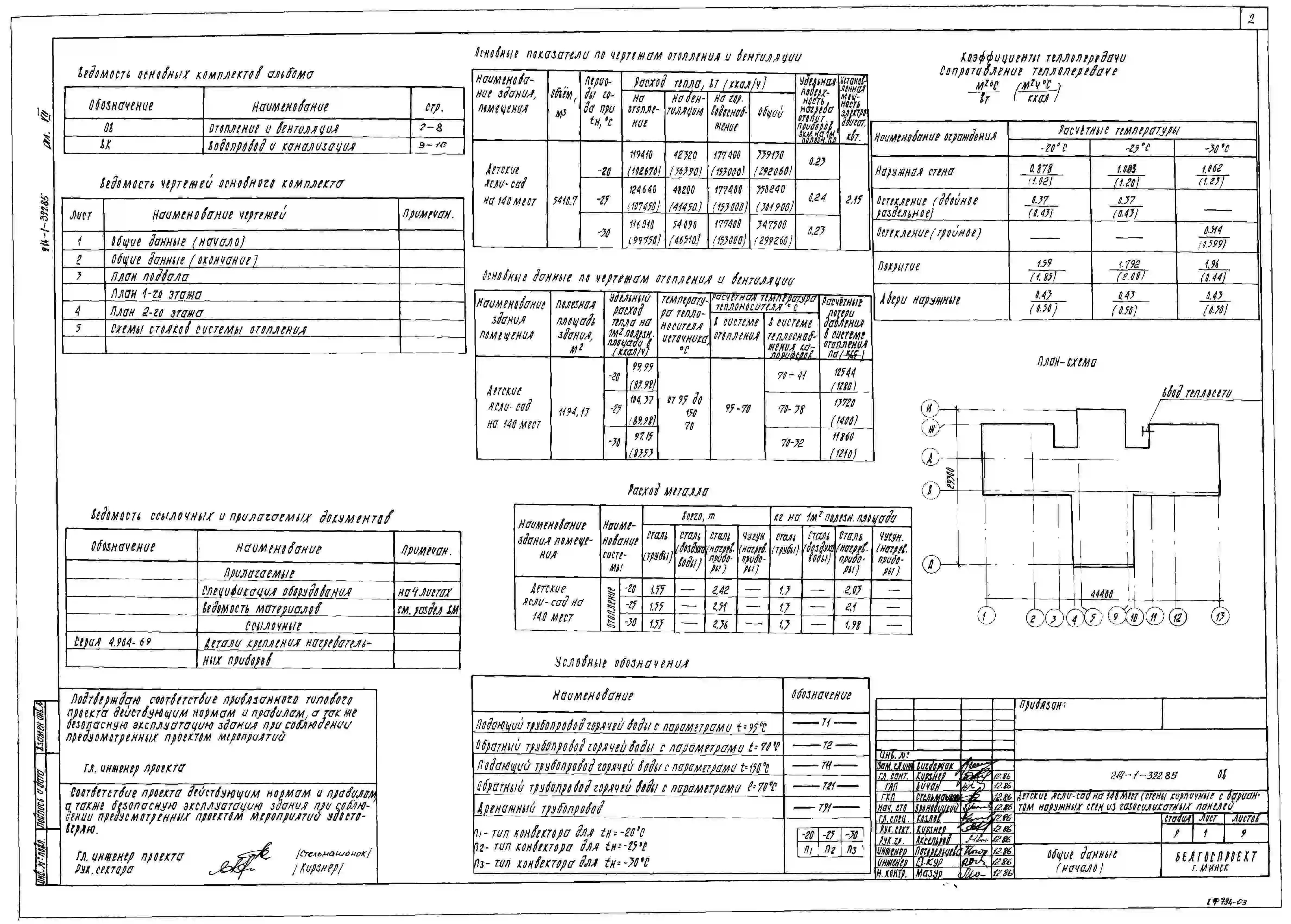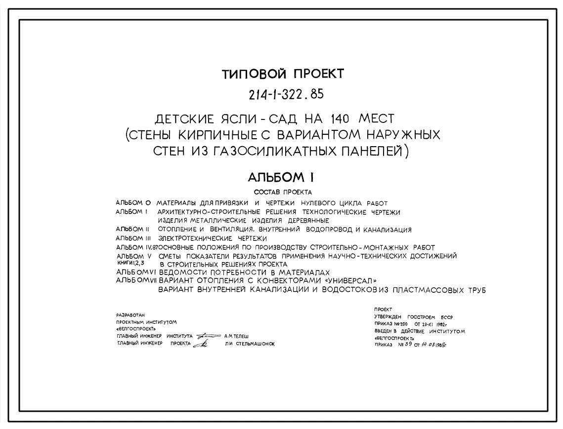 Типовой проект 214-1-322.85 Детские ясли-сад на 140 мест. Здание двухэтажное. Стены из кирпича (вариант - из газосиликатных панелей).
