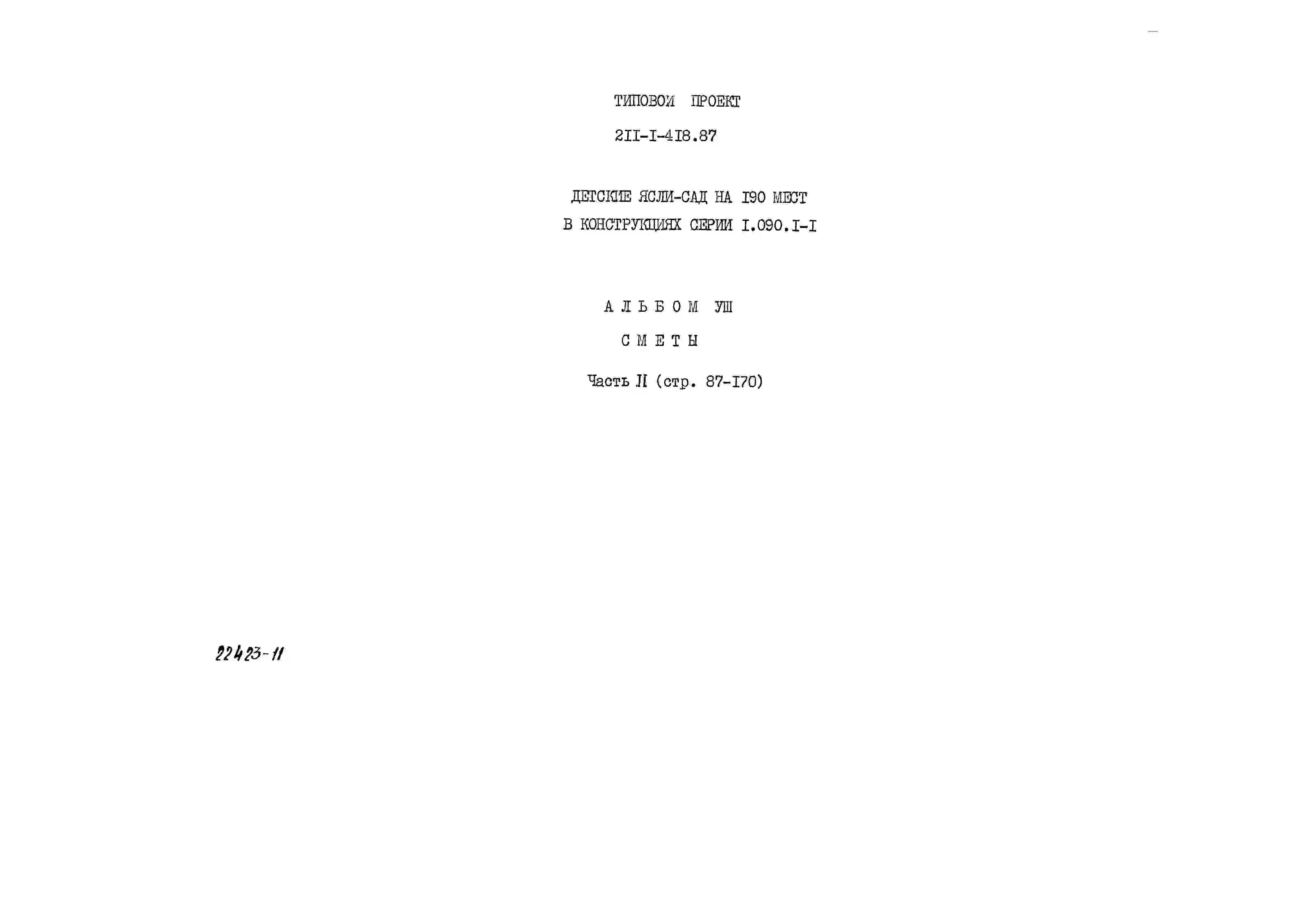 Типовой проект 211-1-418.87 Детские ясли – сад на 190 мест. Здание двухэтажное. Стены из трехслойных легкобетонных панелей по серии 1.090.1-1.
