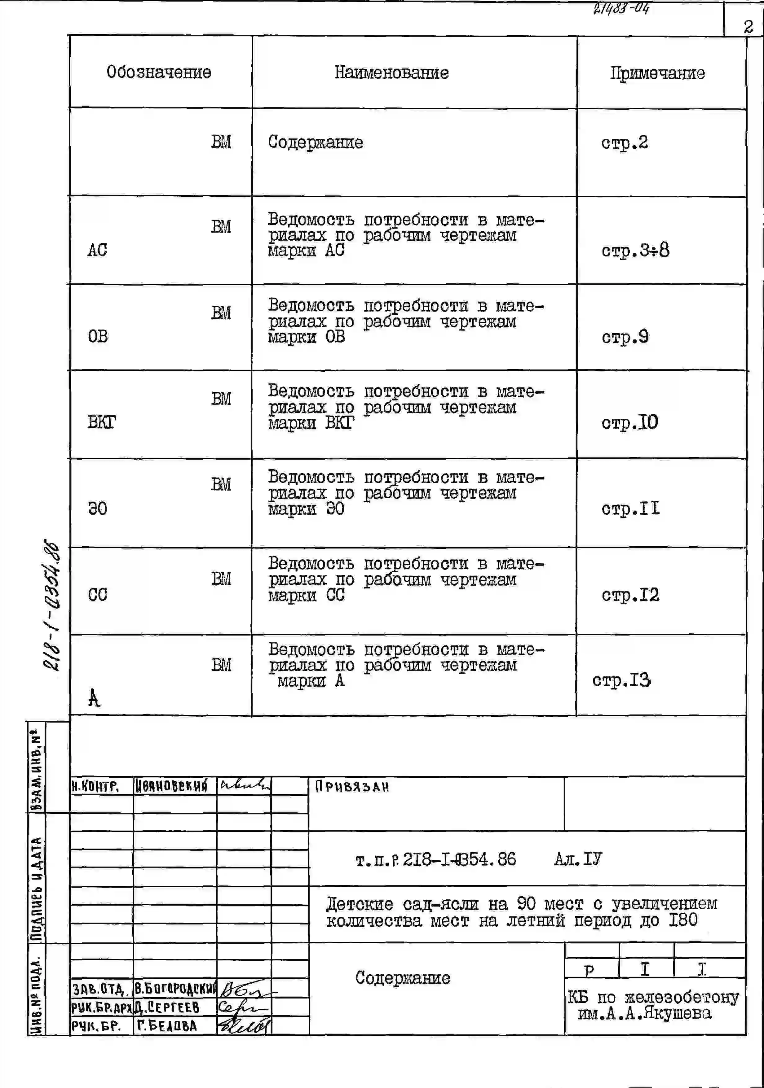 Типовой проект 218-1-0354.86 Детские ясли-сад на 90 мест с увеличением количества мест на летний период до 180. Здание одноэтажное. Стены из монолитного керамзитобетона.