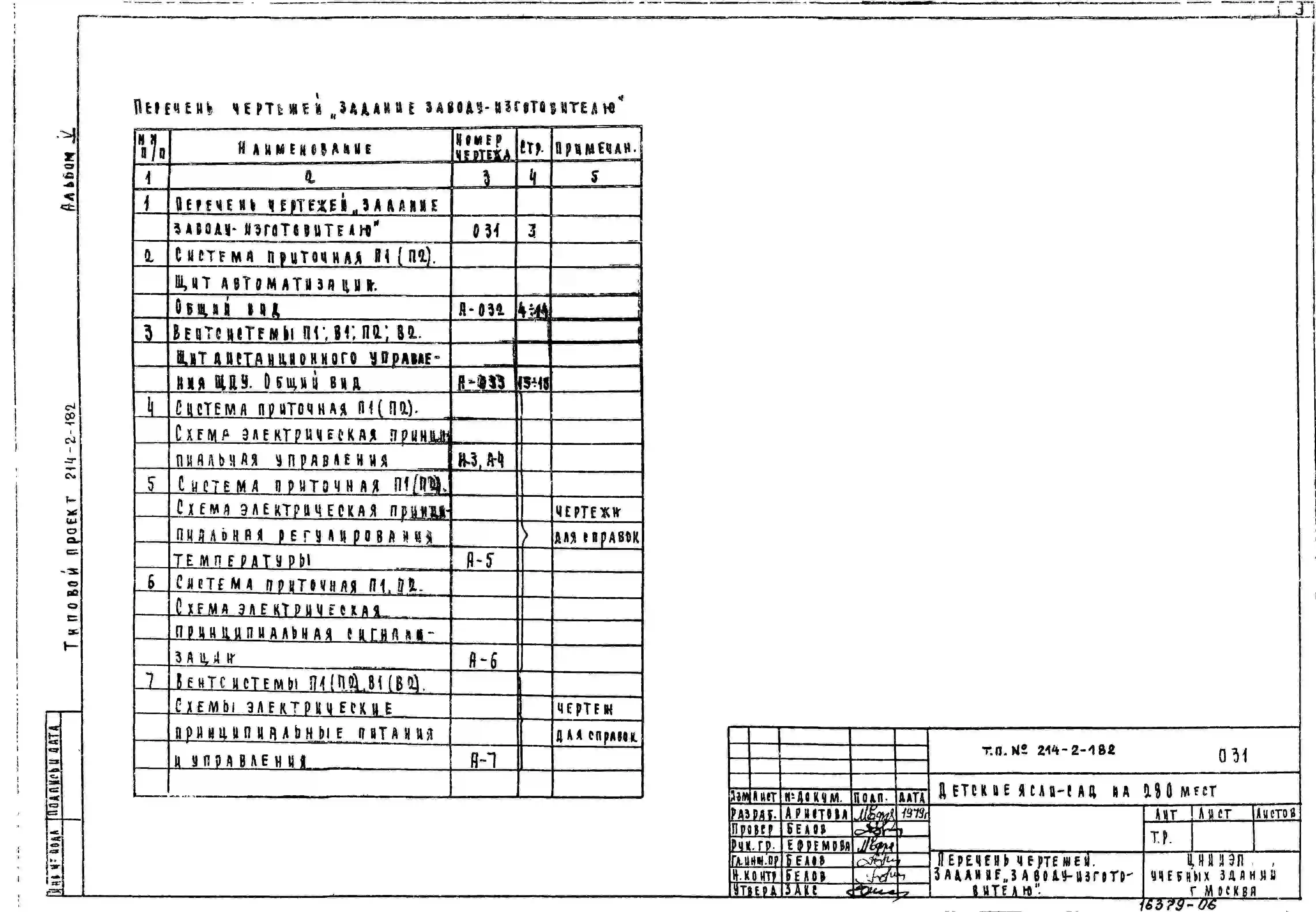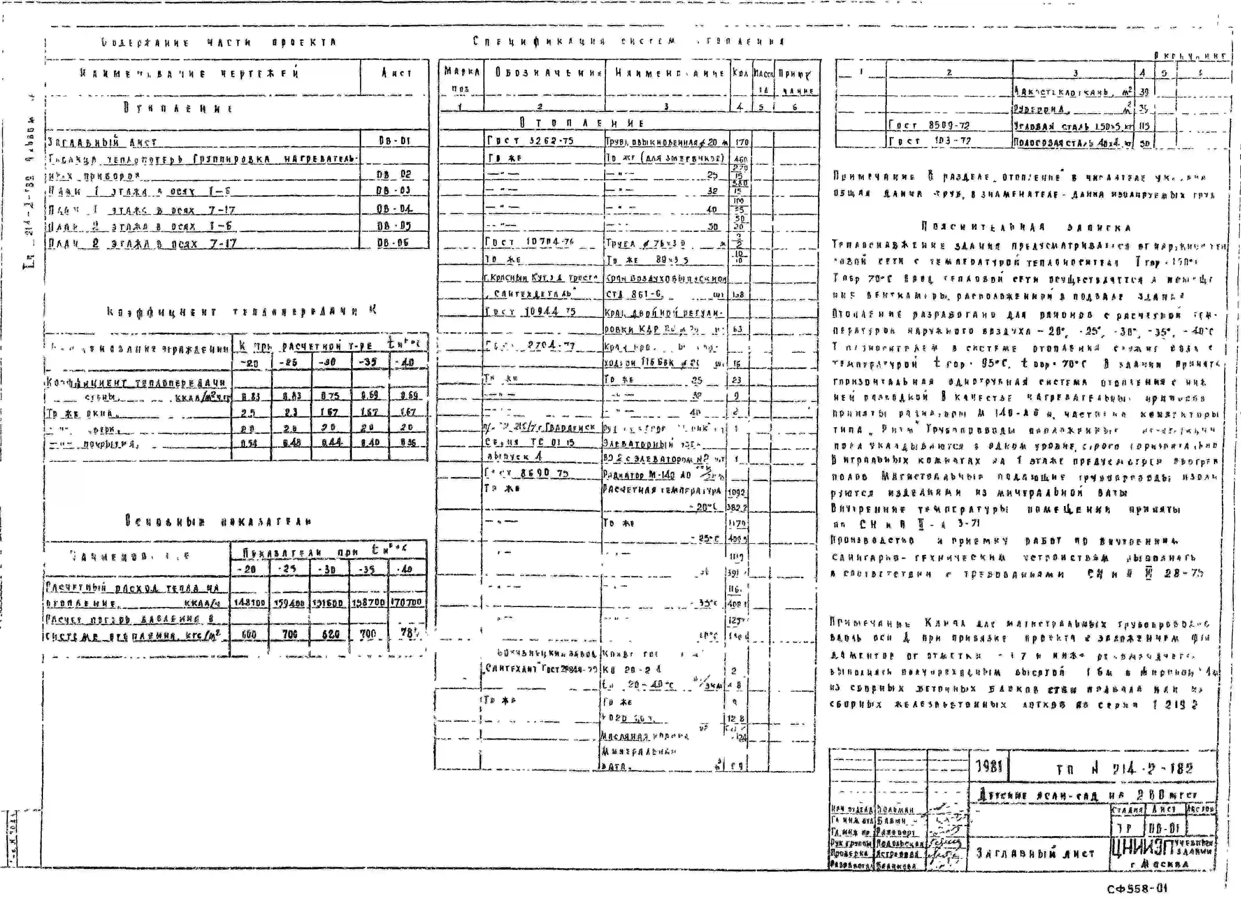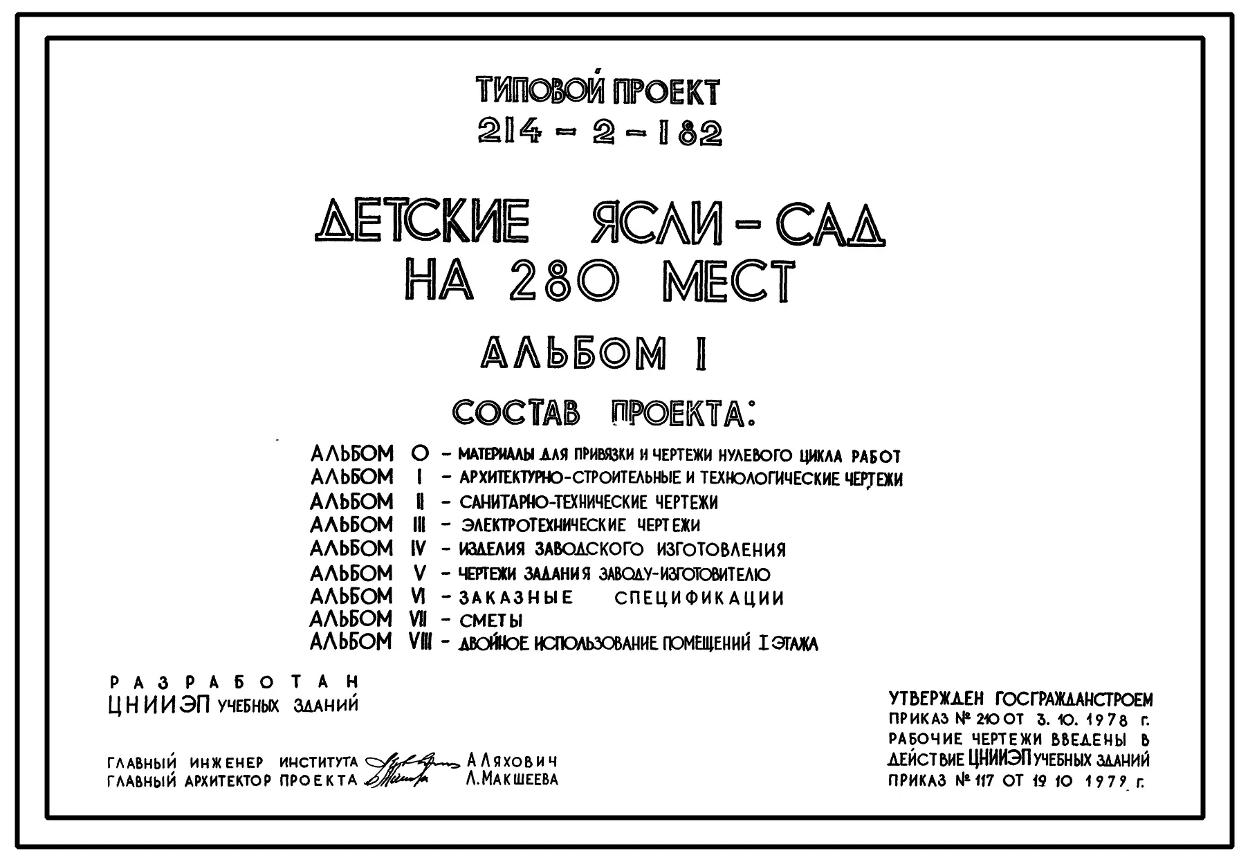 Типовой проект 214-2-182 Детские ясли-сад на 280 мест. Для строительства в 1В климатическом подрайоне, 2 и 3 климатических районах
