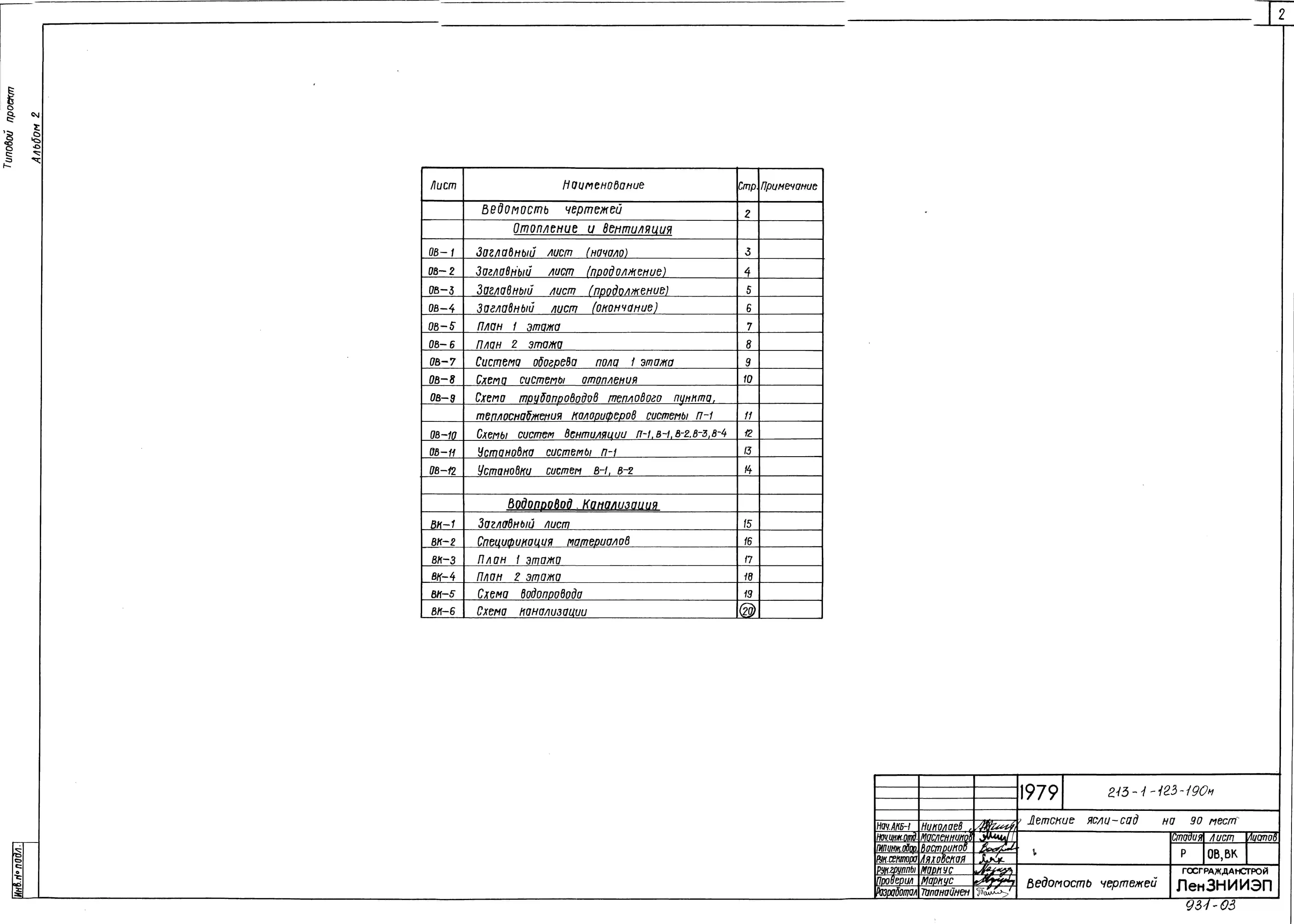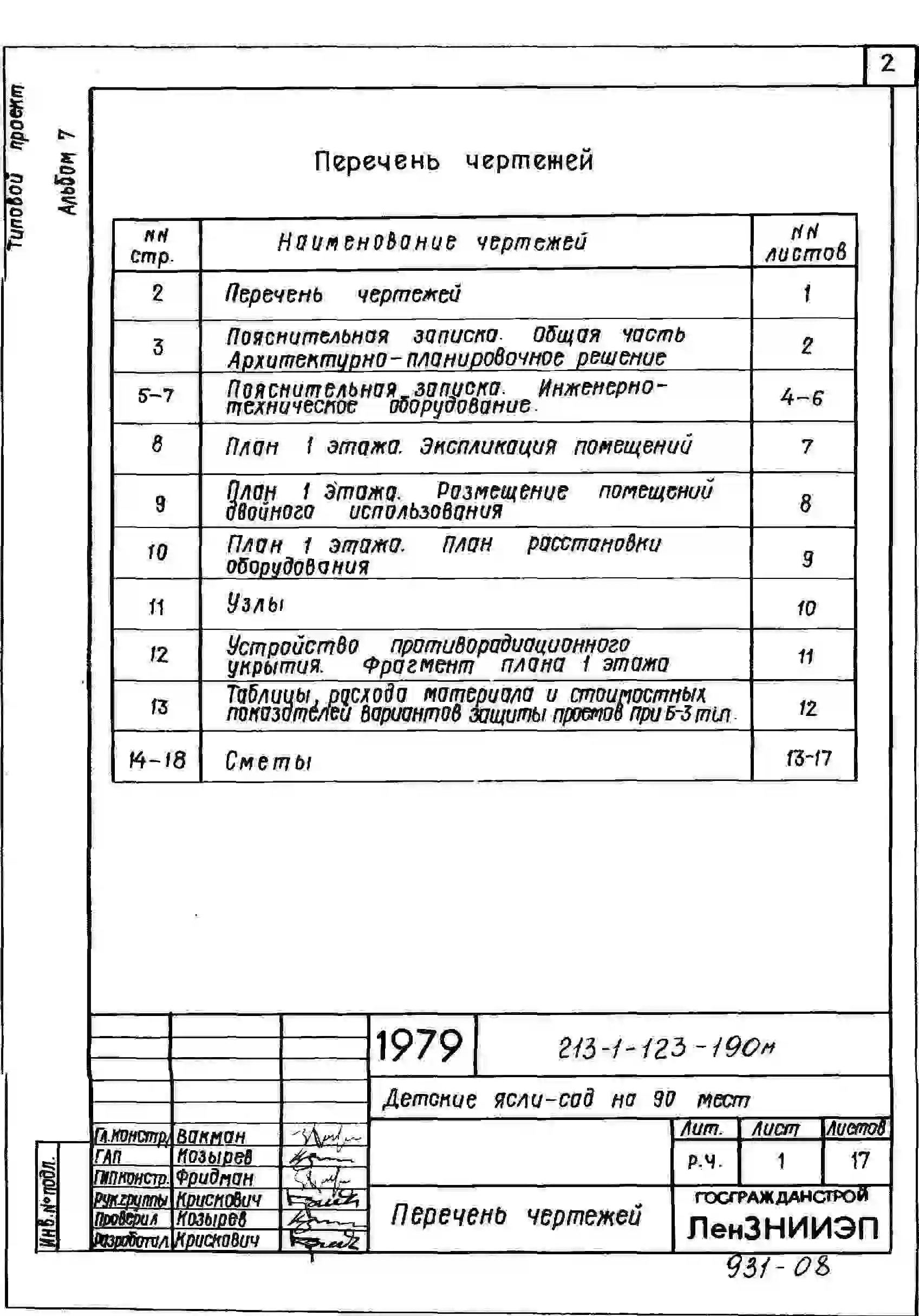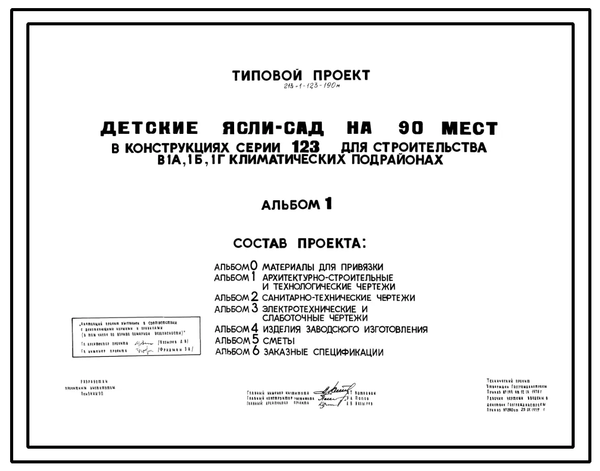 Типовой проект 213-1-123-190м Детские ясли-сад на 90 мест. В конструкциях серии 123. Для строительства в 1А, 1Б и 1Г климатических подрайонах с вечномерзлыми грунтами