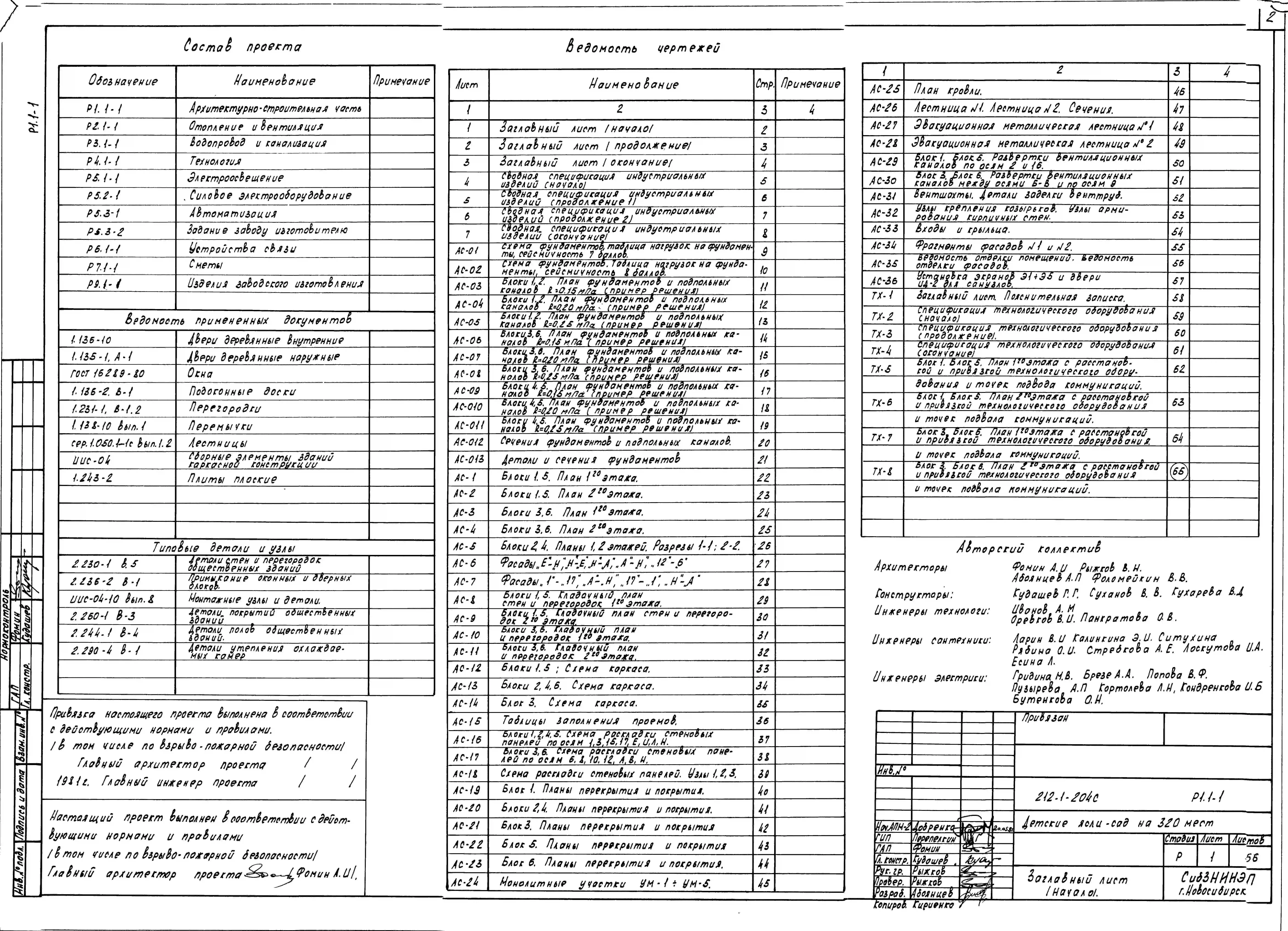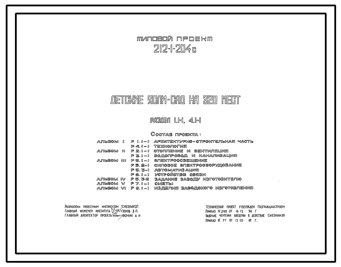 Типовой проект 212-1-204с Детские ясли-сад на 320 мест.
