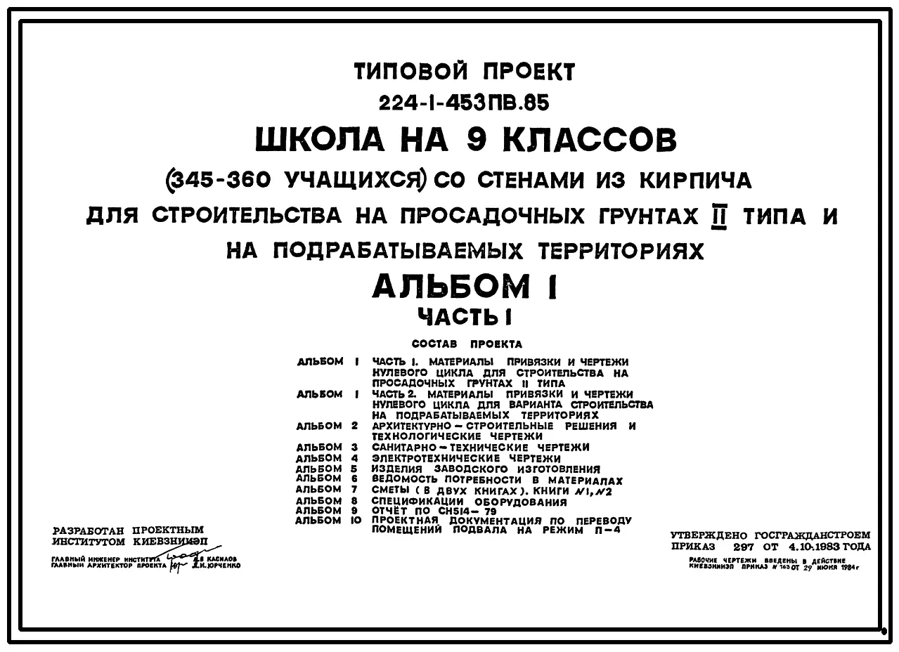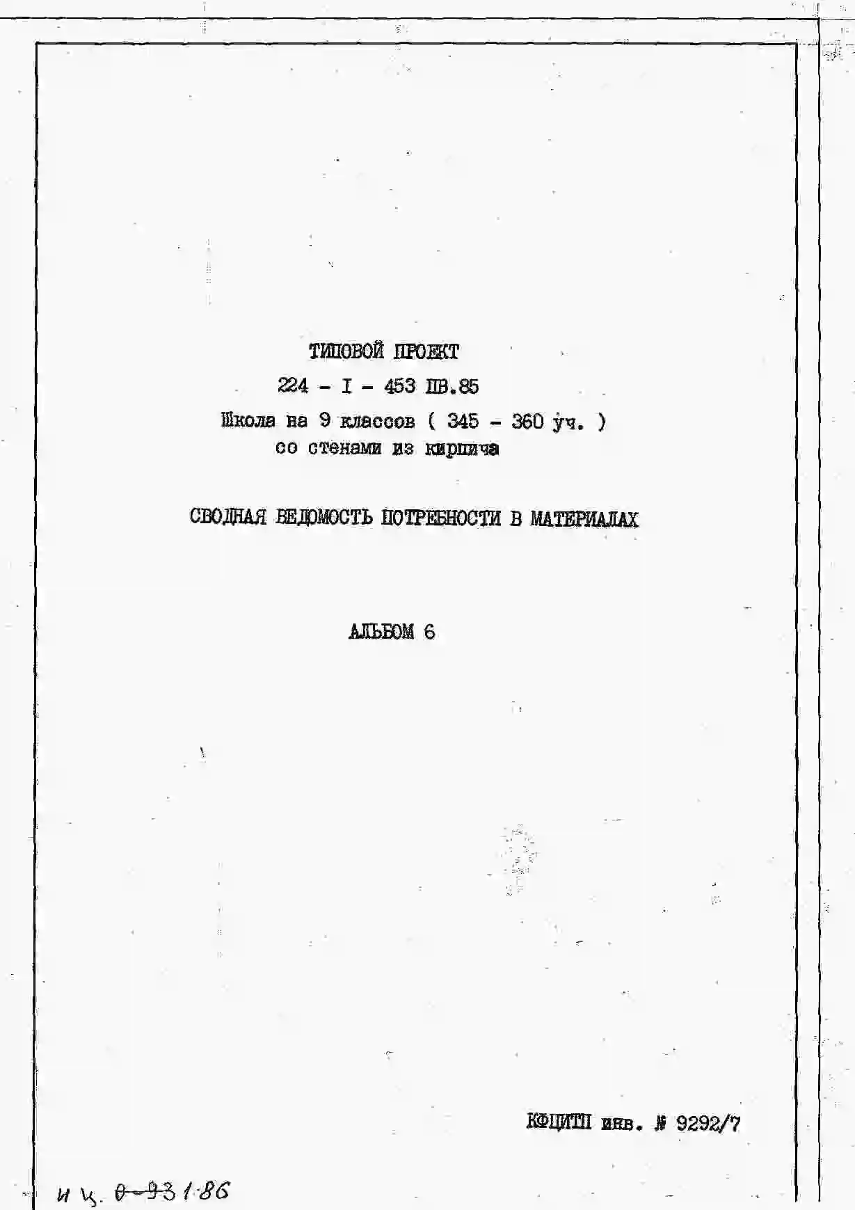 Типовой проект 224-1-453пв.85 Школа на 9 классов.(345-360 учащихся) со стенами из кирпича для строительства в сельской местности