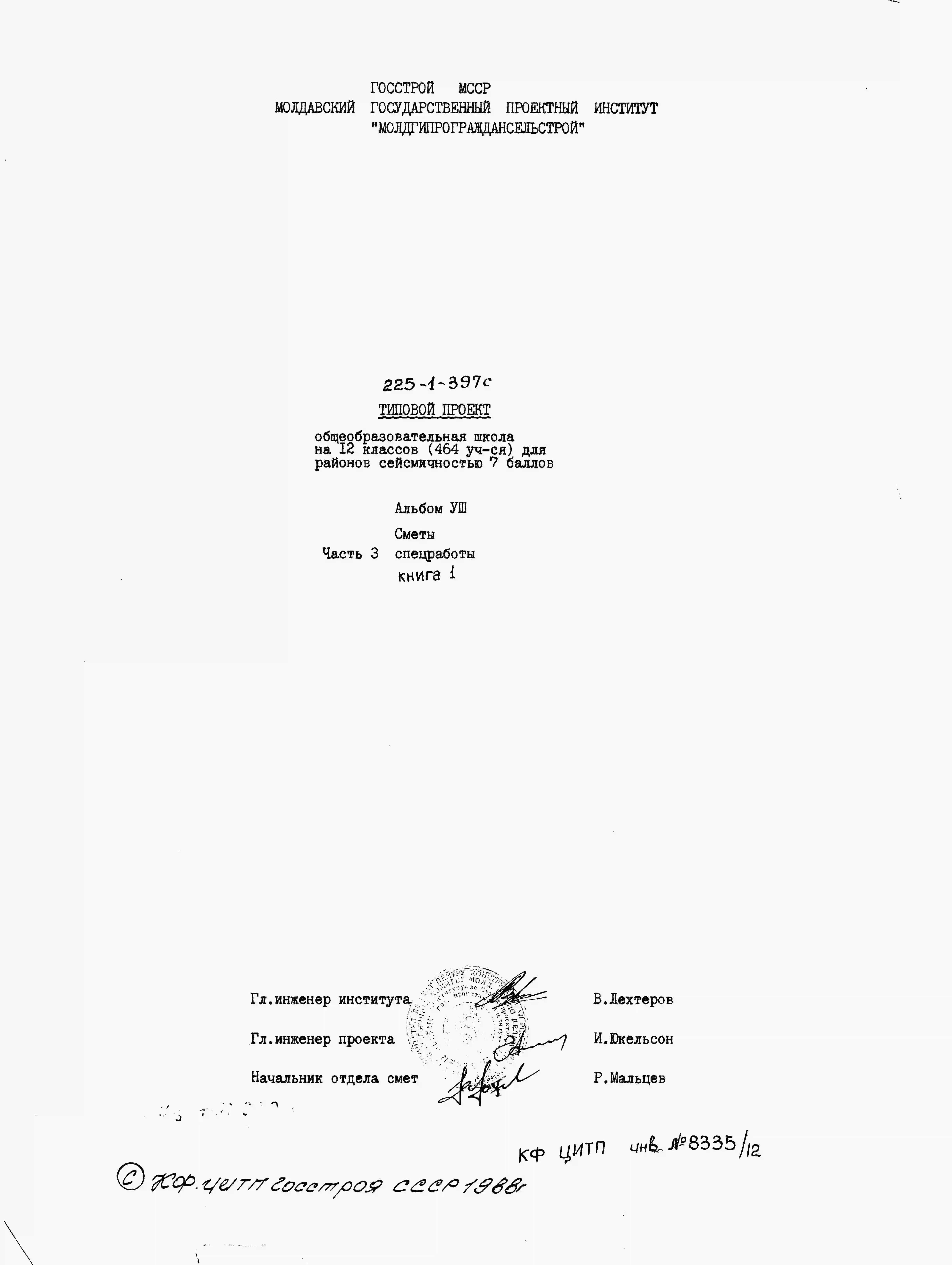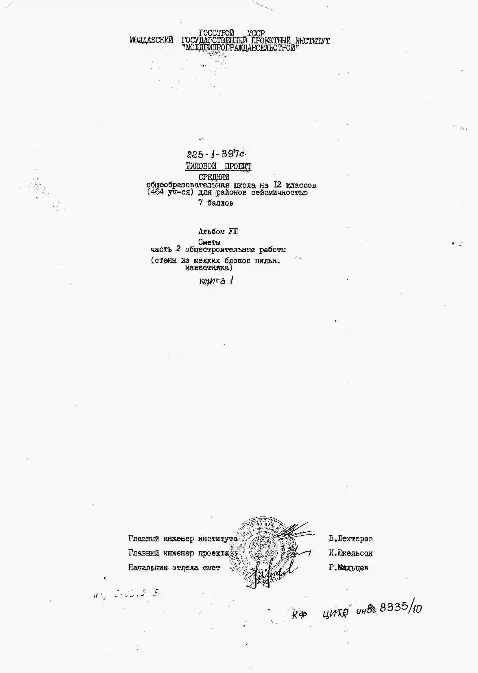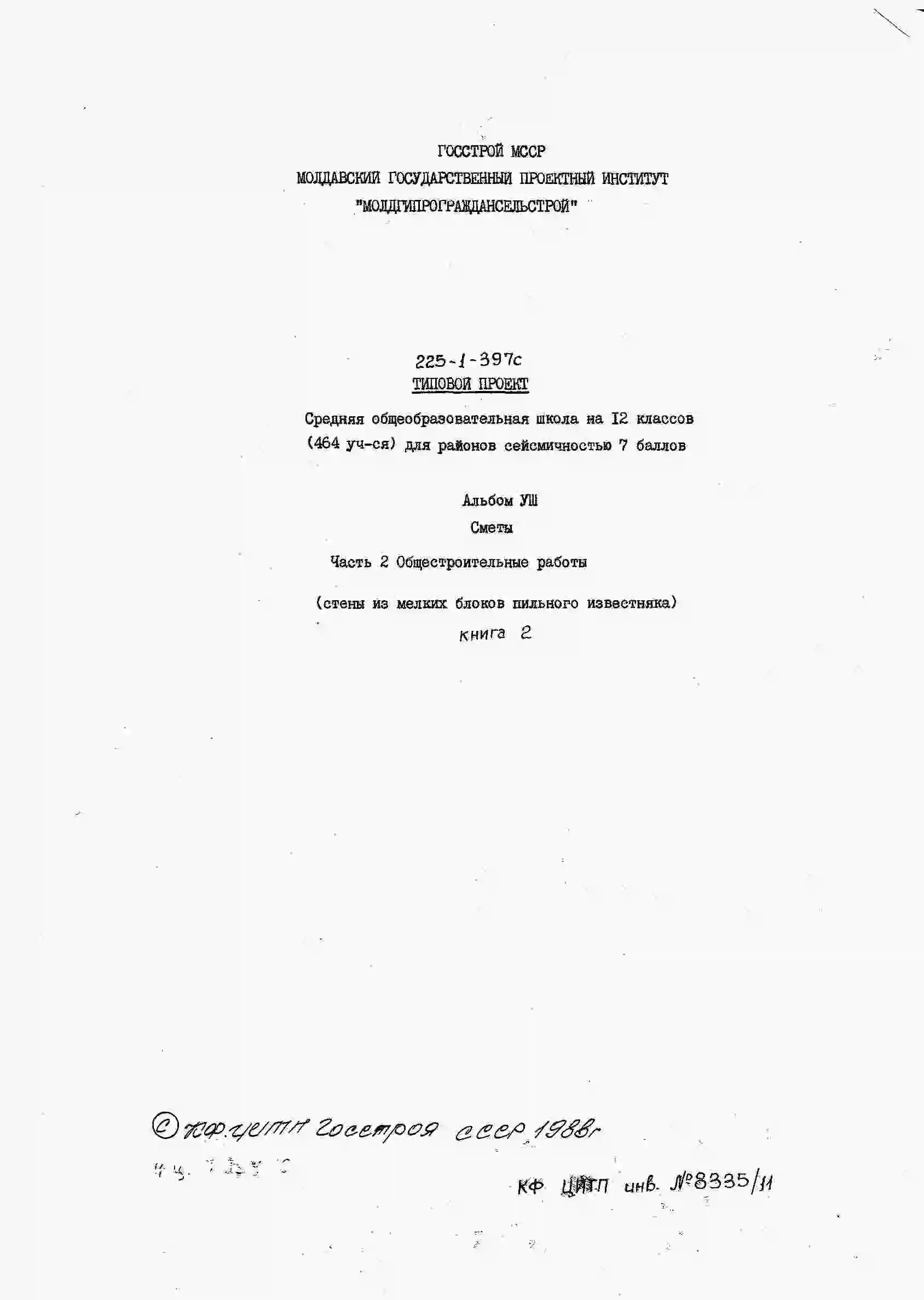 Типовой проект 225-1-397с Средняя общеобразовательная школа на 12 классов (464 учащихся)
