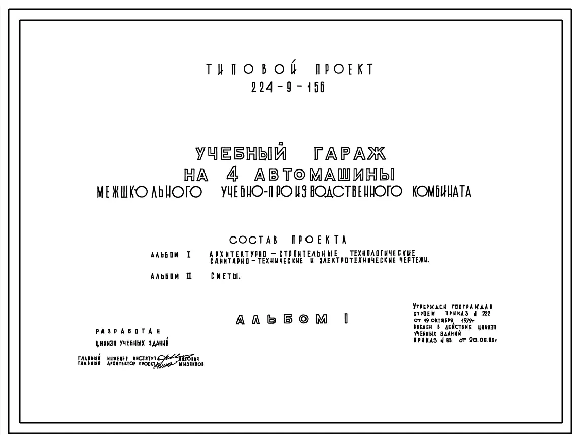 Типовой проект 224-9-156 Учебный гараж на 4 автомашины межшкольного производственного комбината. Стены из кирпича.