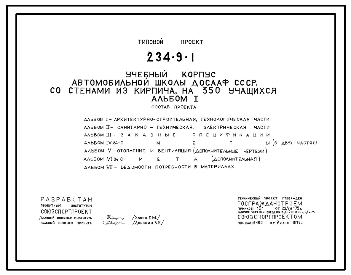 Типовой проект 234-9-1 Учебный корпус автомобильной школы ДОСААФ СССР, со стенами из кирпича, на 350 учащихся