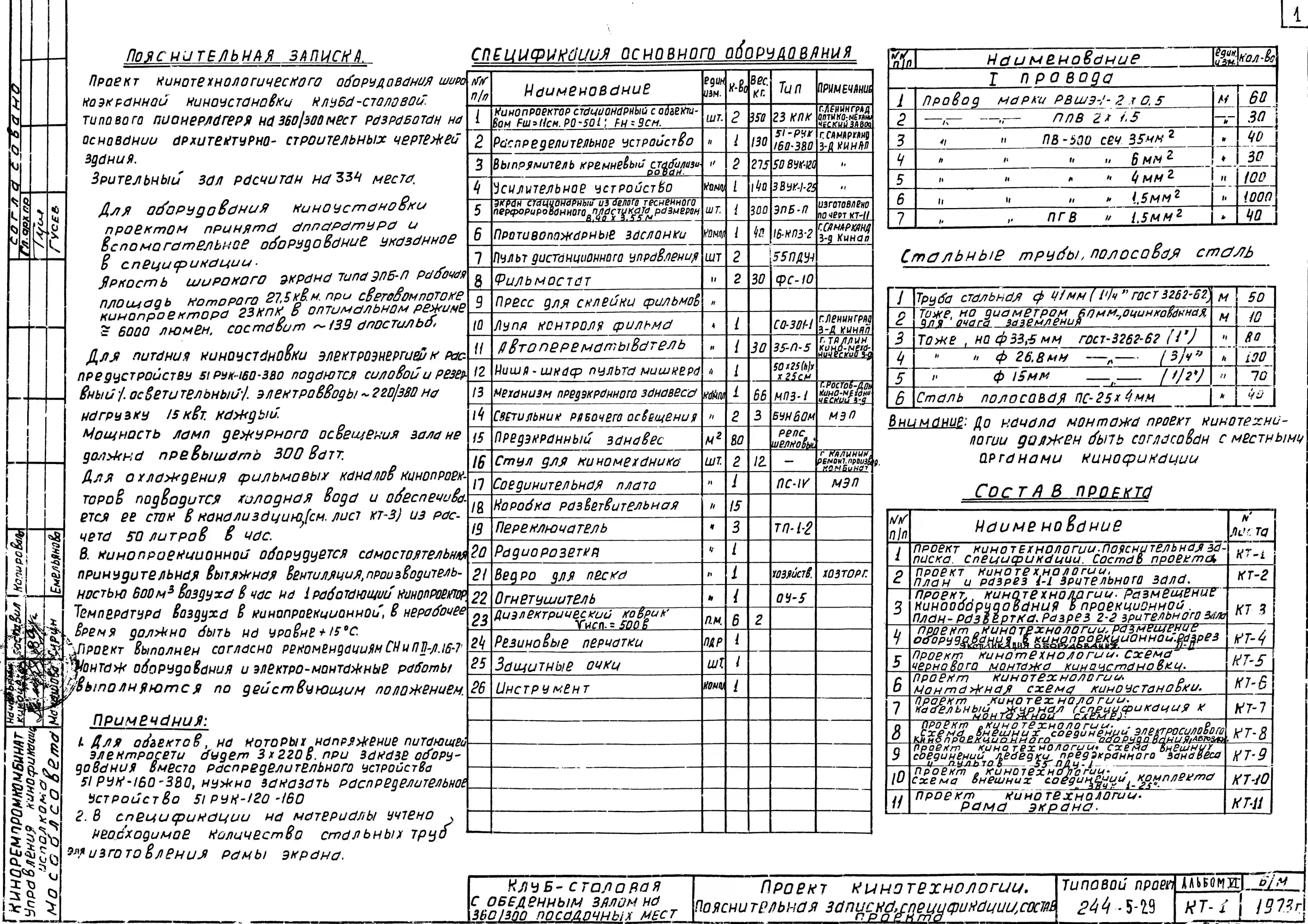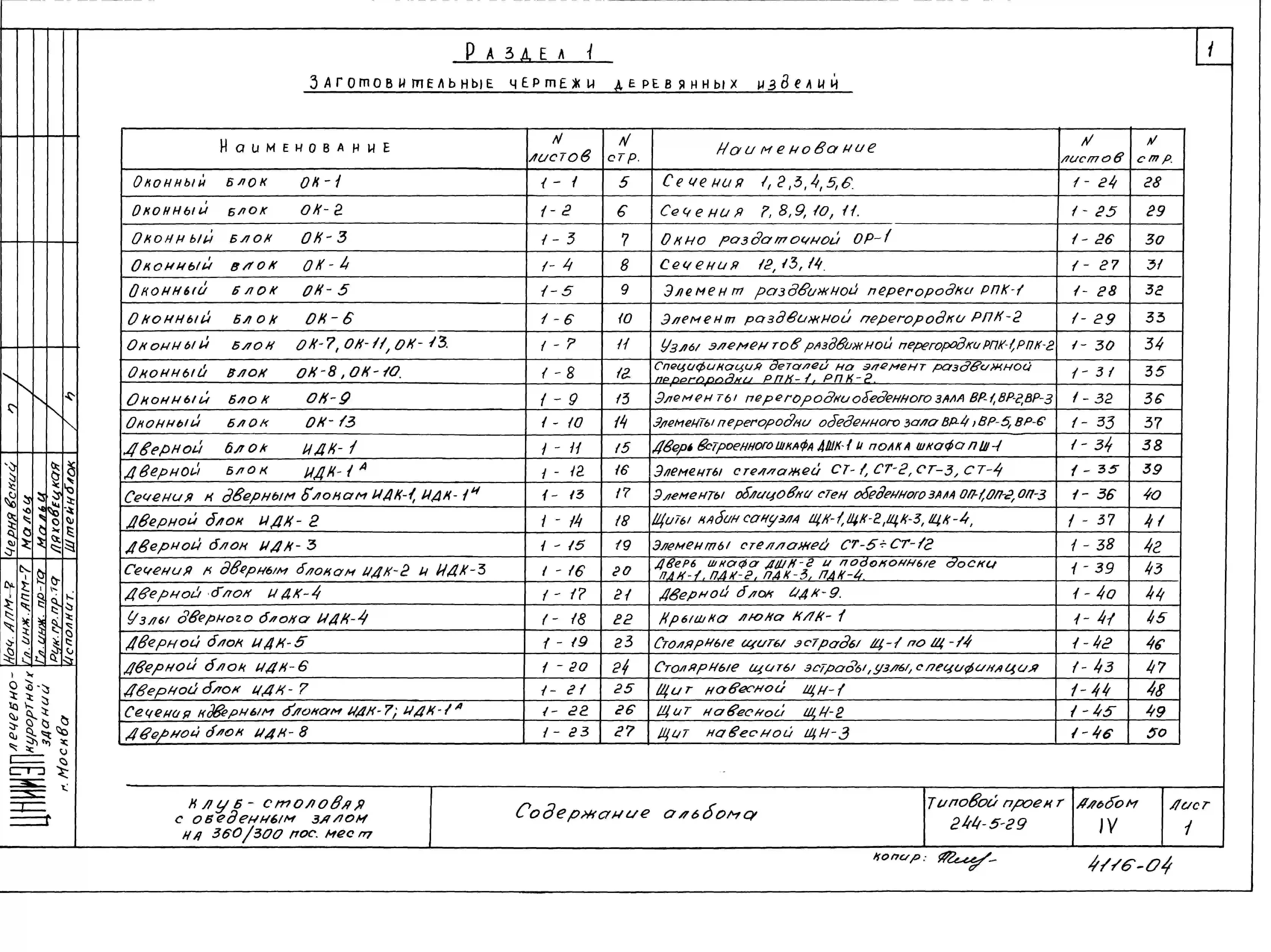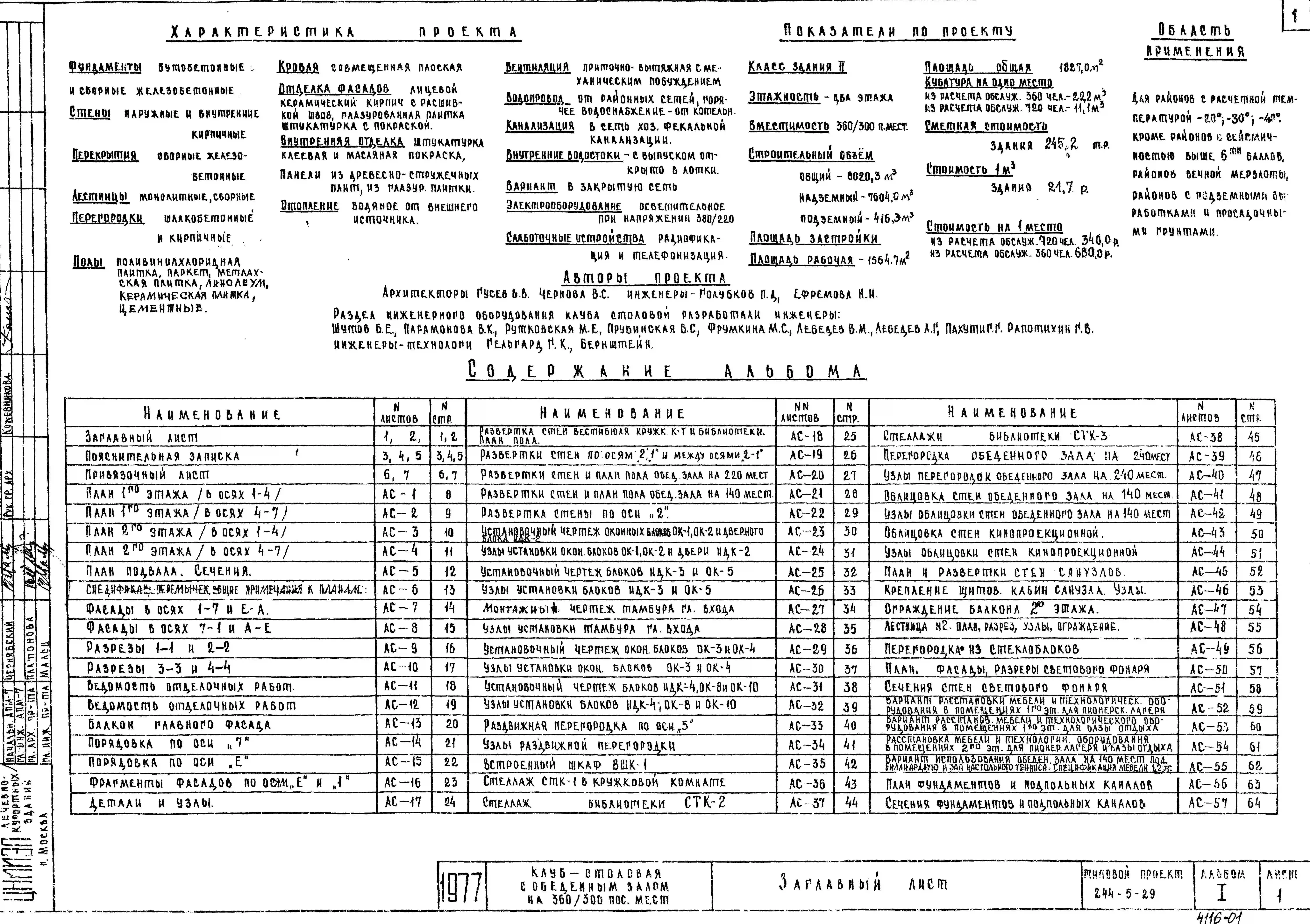 Типовой проект 244-5-29 Клуб-столовая с обеденным залом на 360/300 посадочных мест пионерского лагеря-базы отдыха круглогодичного действия для строительства в 1В климатических подрайоне, со стенами из кирпича и внутренним каркасом, 2 и 3 климатических рай