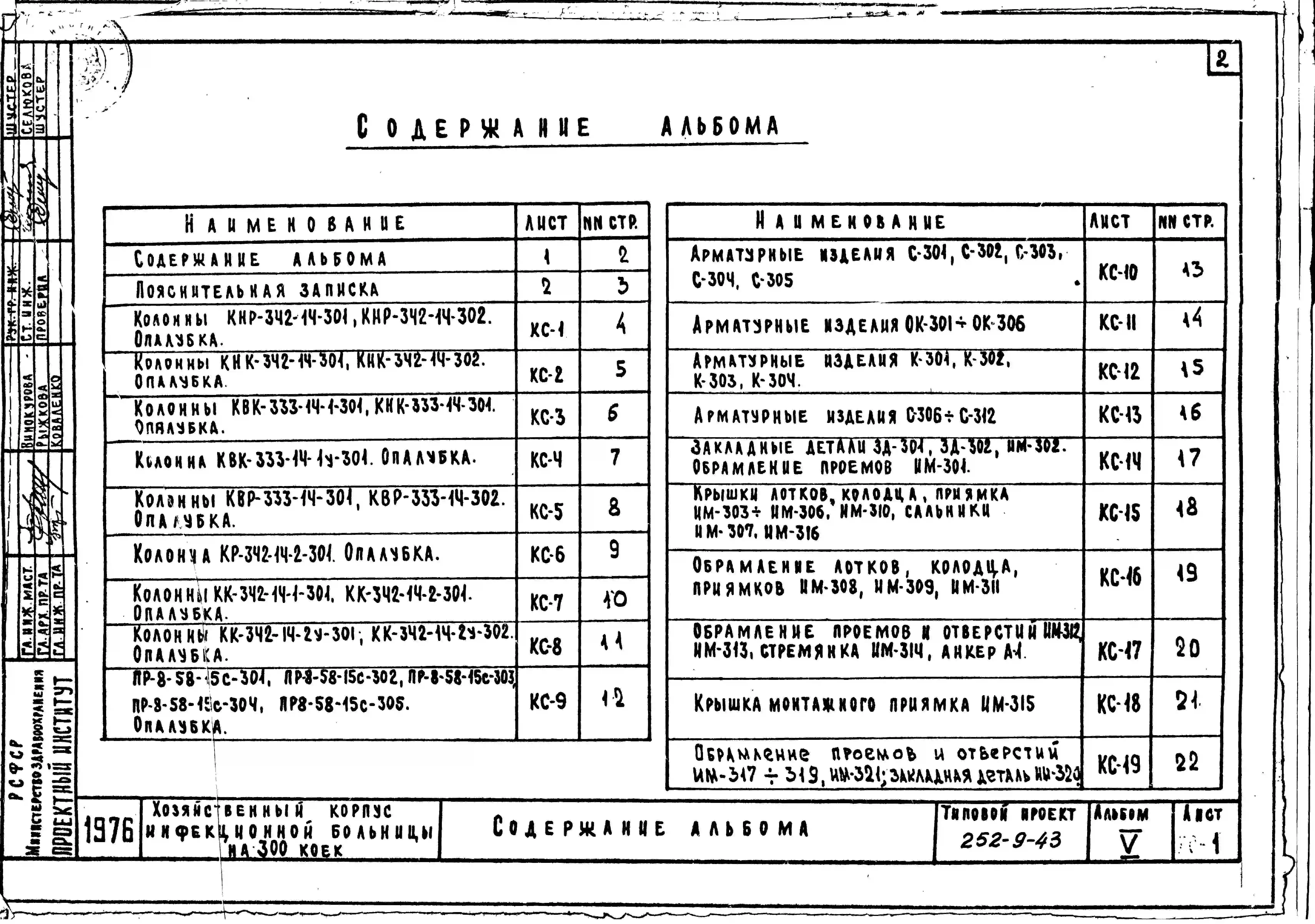 Типовой проект 252-9-43 Хозяйственный корпус инфекционной больницы на 300 коек. Здание одноэтажное. Каркас сборный железобетонный серии ИИ-04. Стены из керамзитобетонных панелей.