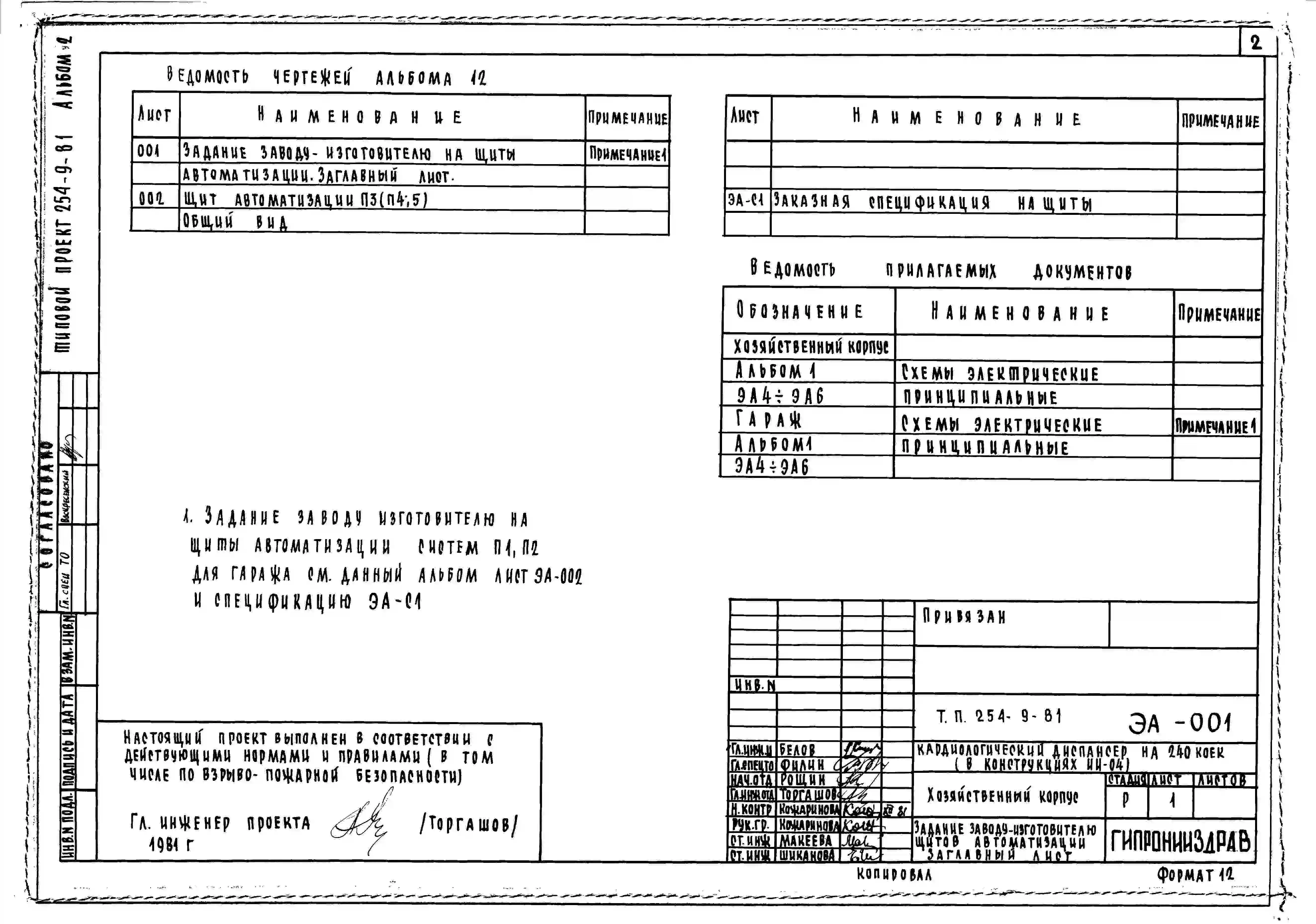 Типовой проект 254-9-81 Хозяйственный корпус кардиологического диспансера на 240 коек. Здание одно-, двухэтажное. Стены из кирпича.