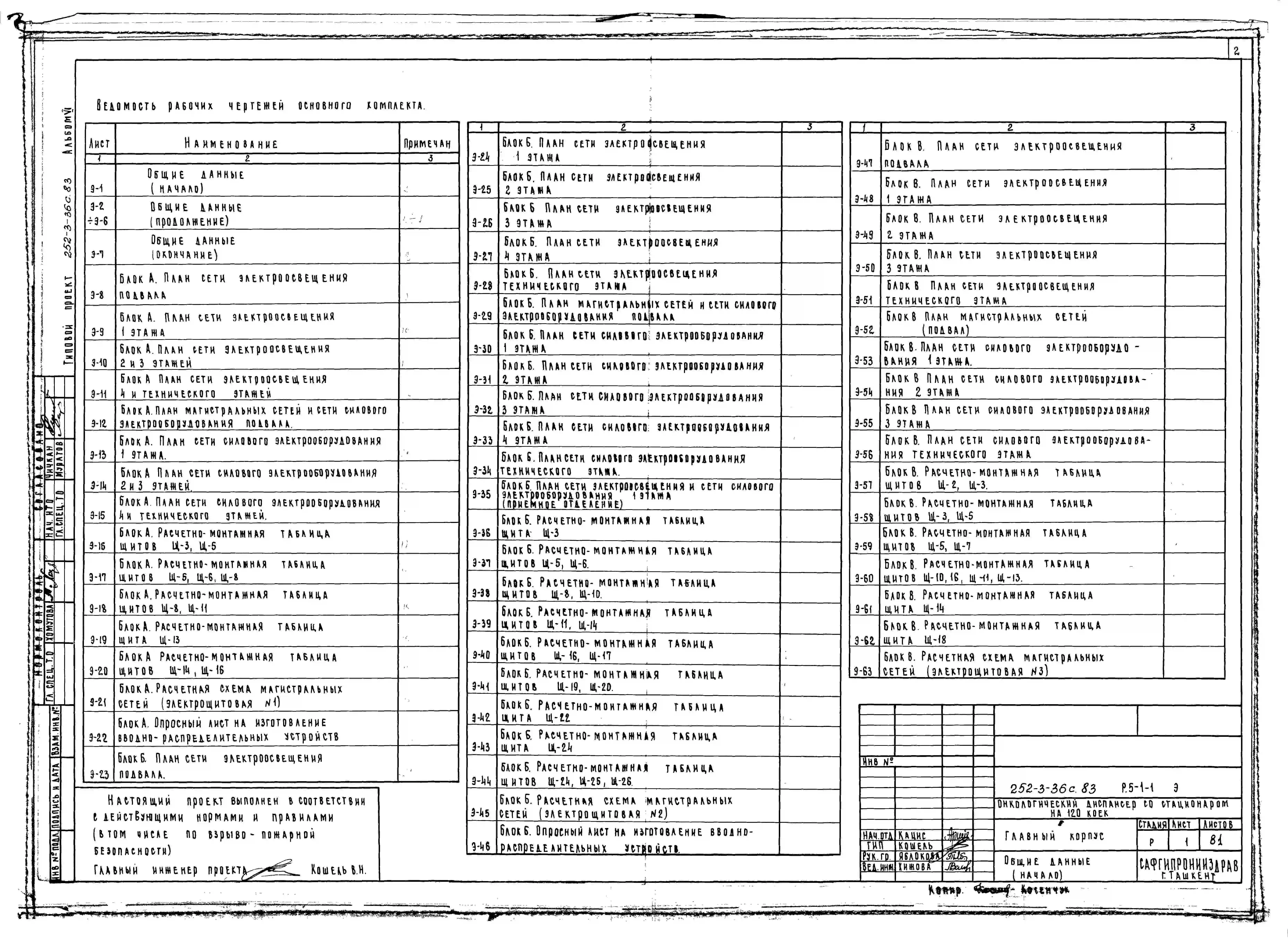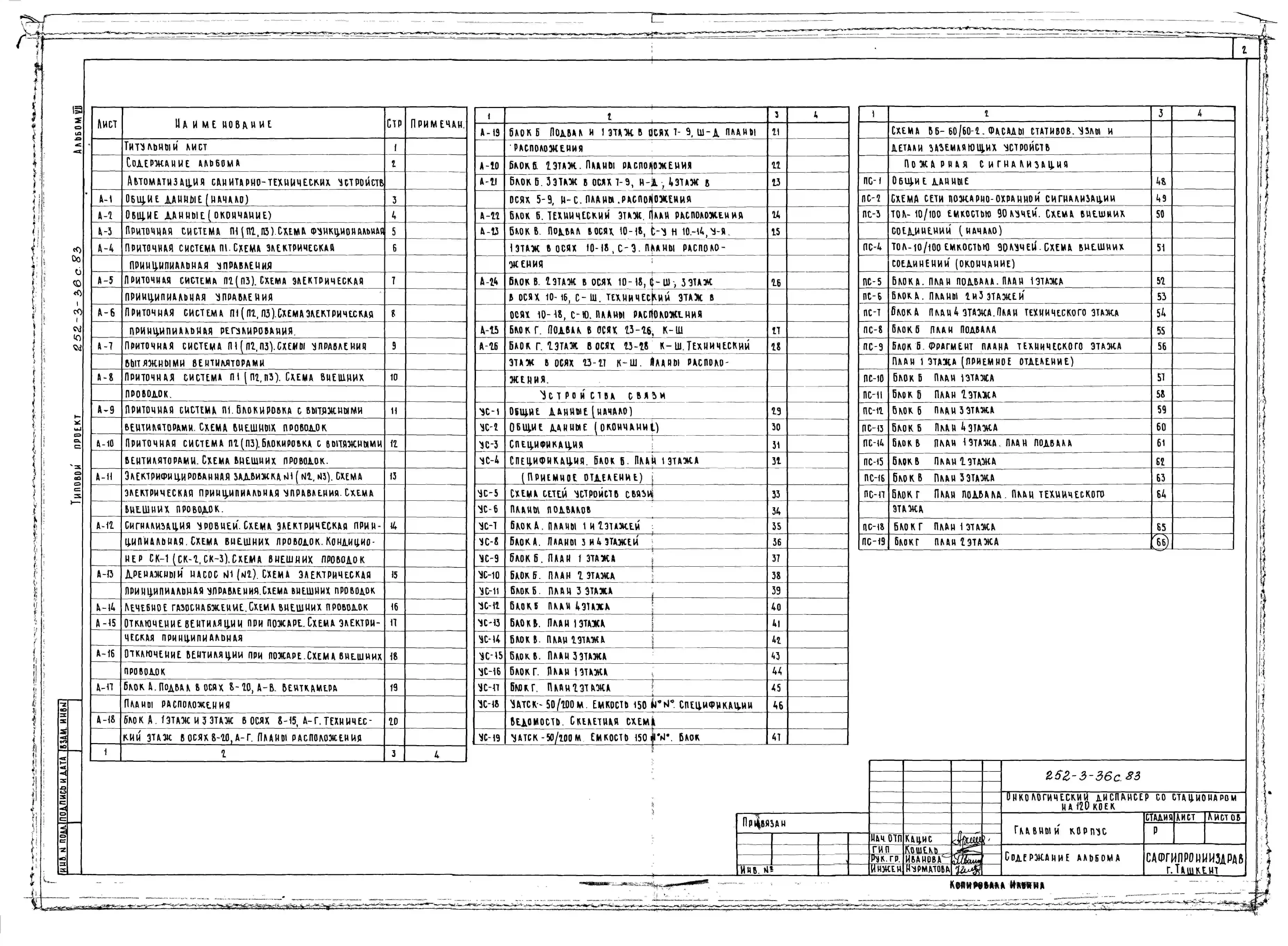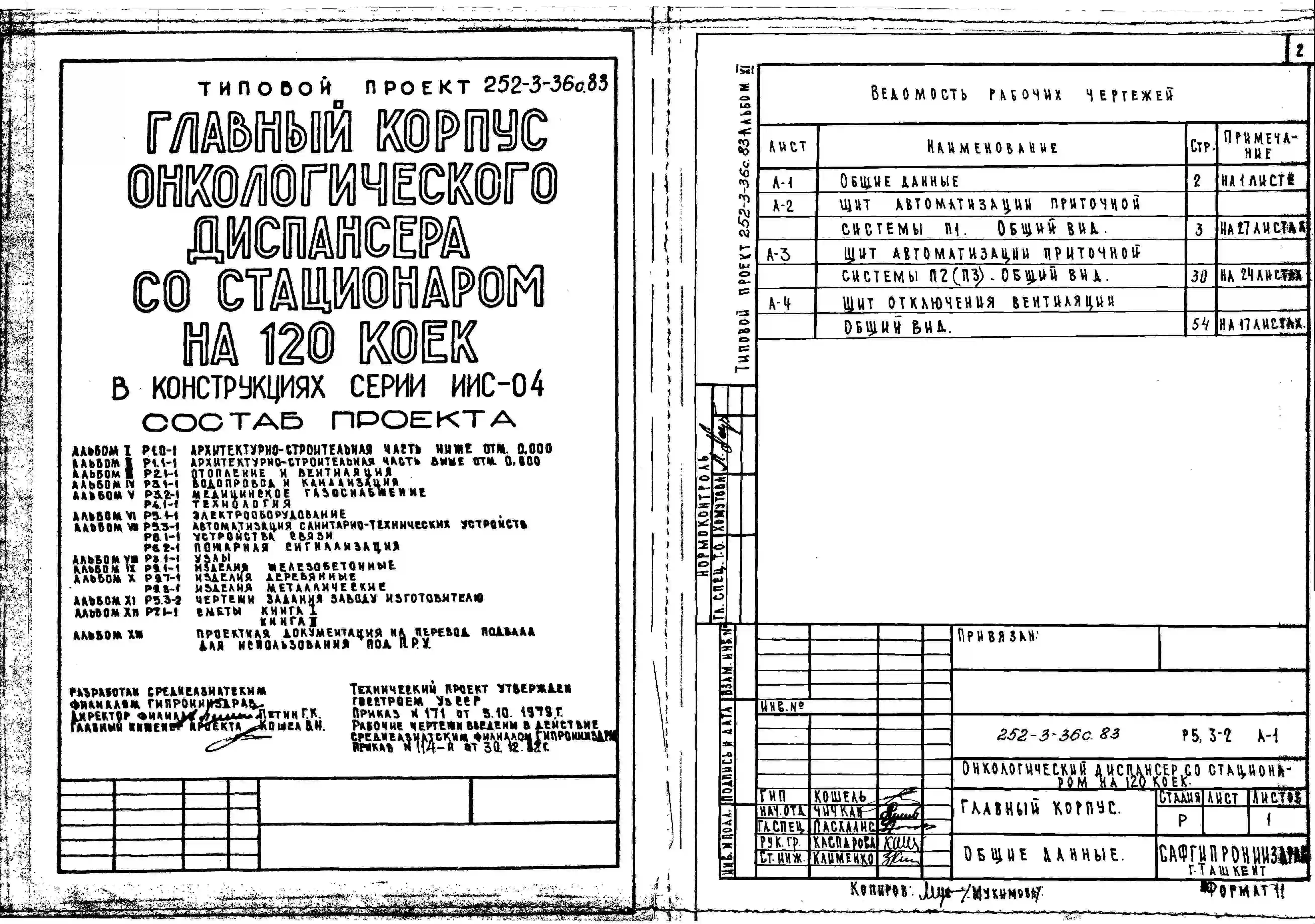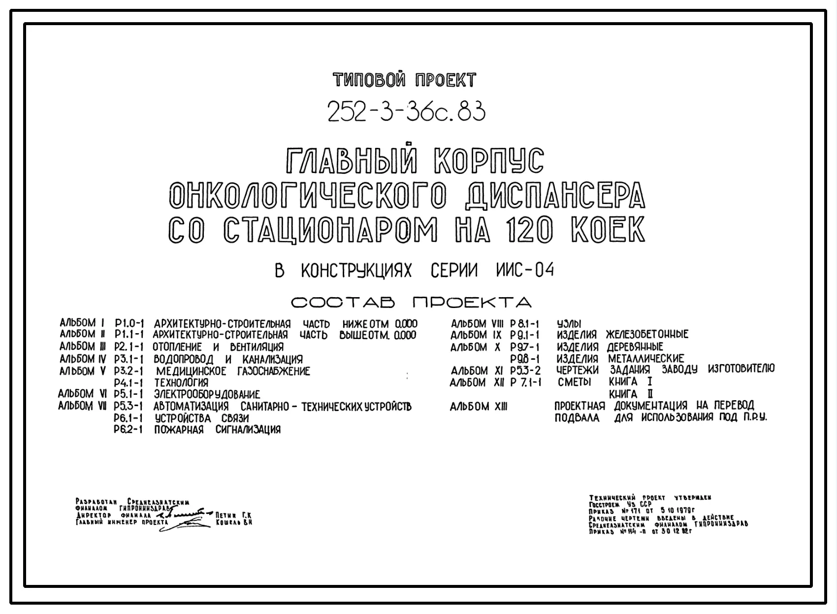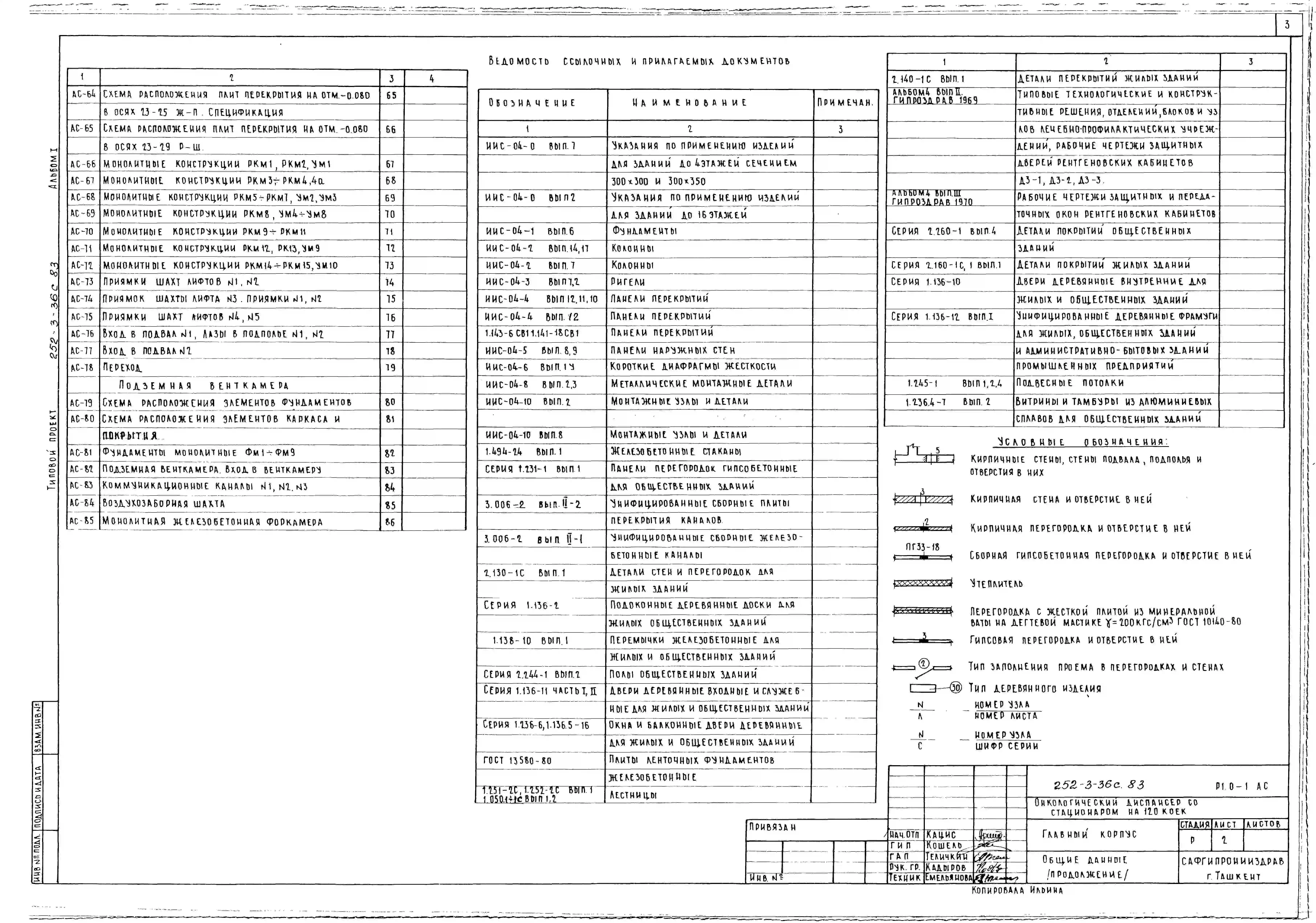 Типовой проект 252-3-36с.83 Главный корпус онкологического диспансера со стационаром на 120 коек. Сейсмичность 7, 8, 9 баллов. Здание трех -, пятиэтажное. Каркас сборный железобетонный серии ИИС-04. Стены из легкобетонных панелей.