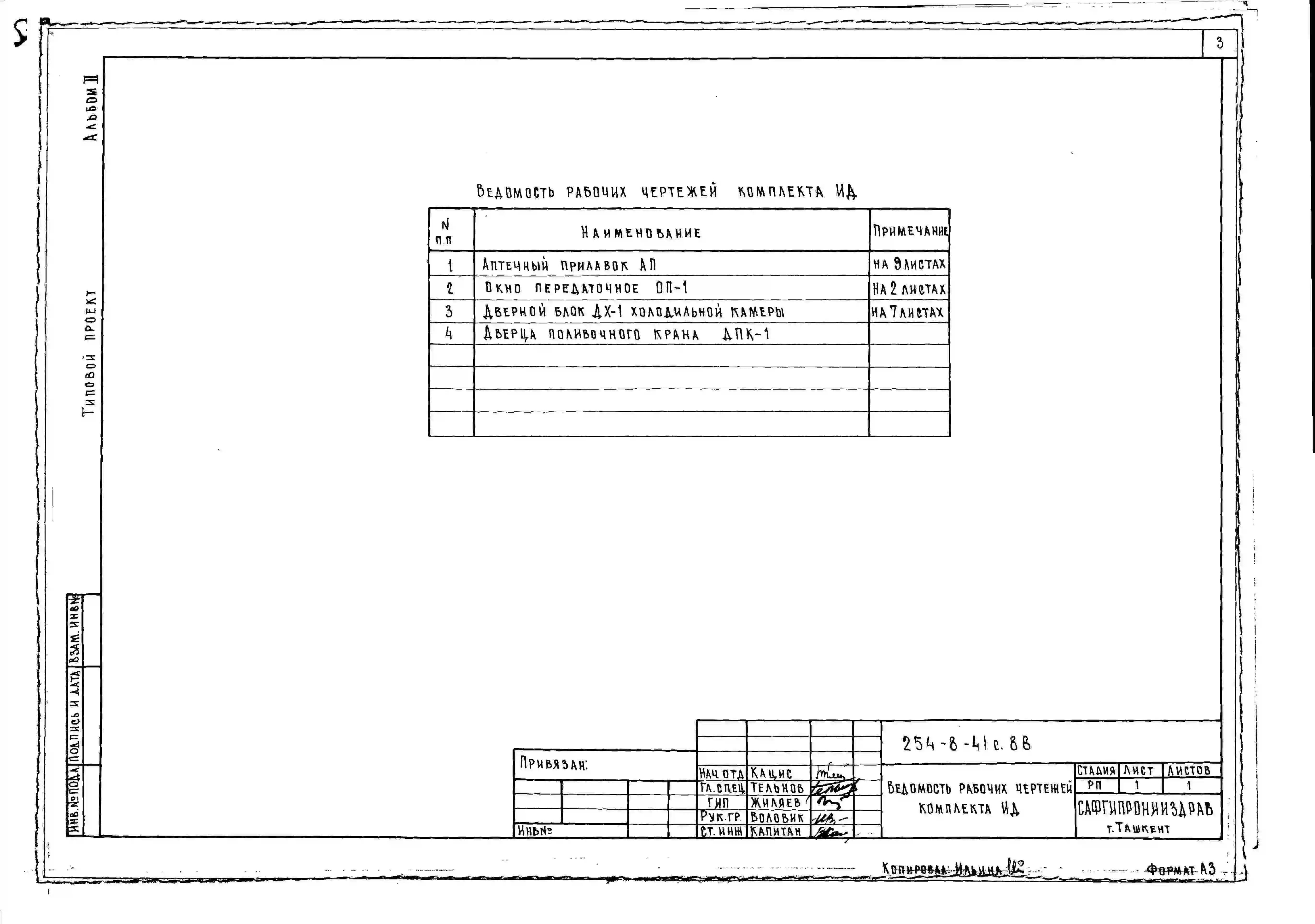Типовой проект 254-8-41с.86 Главный корпус сельской аптеки 5 категории со стенами из кирпича (вариант проекта с плитами перекрытия длиной 5860 мм)