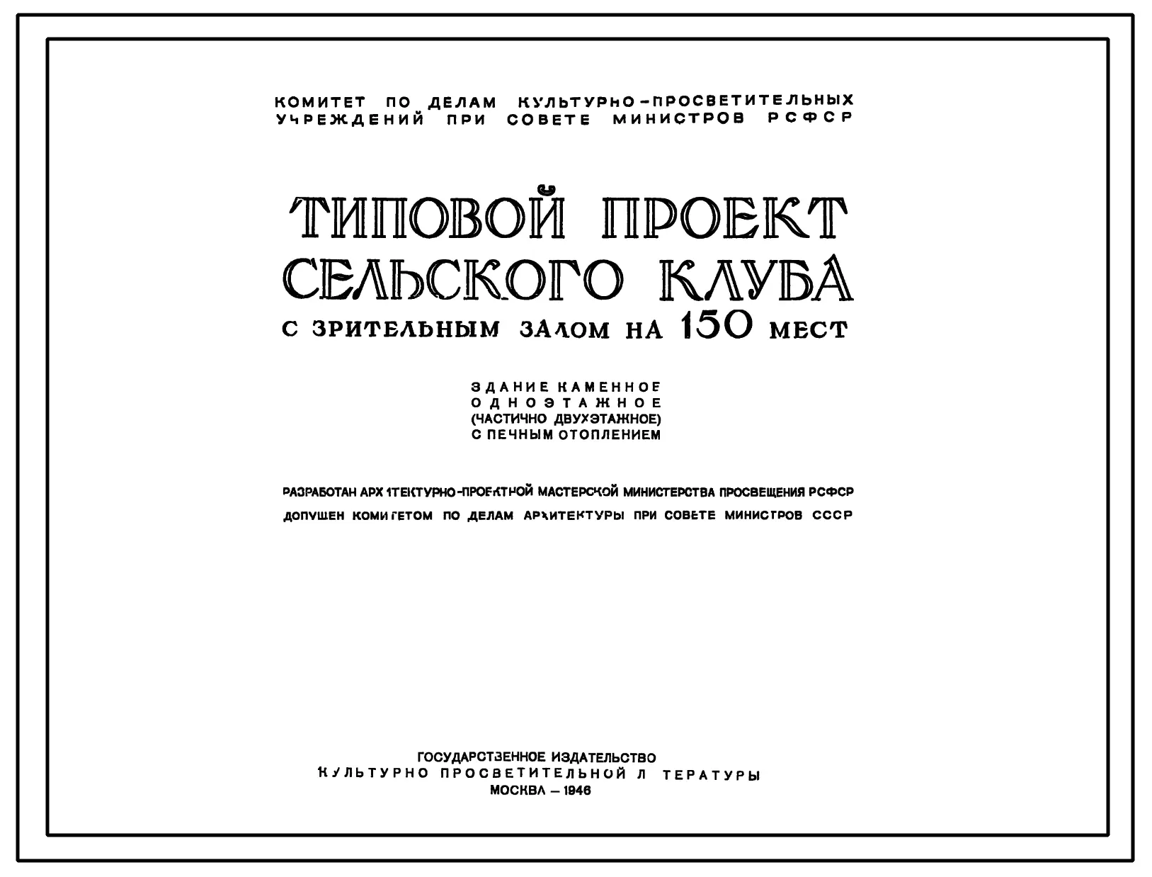 Типовой проект 183 Сельский клуб с залом на 150 мест. Стены из кирпича.
