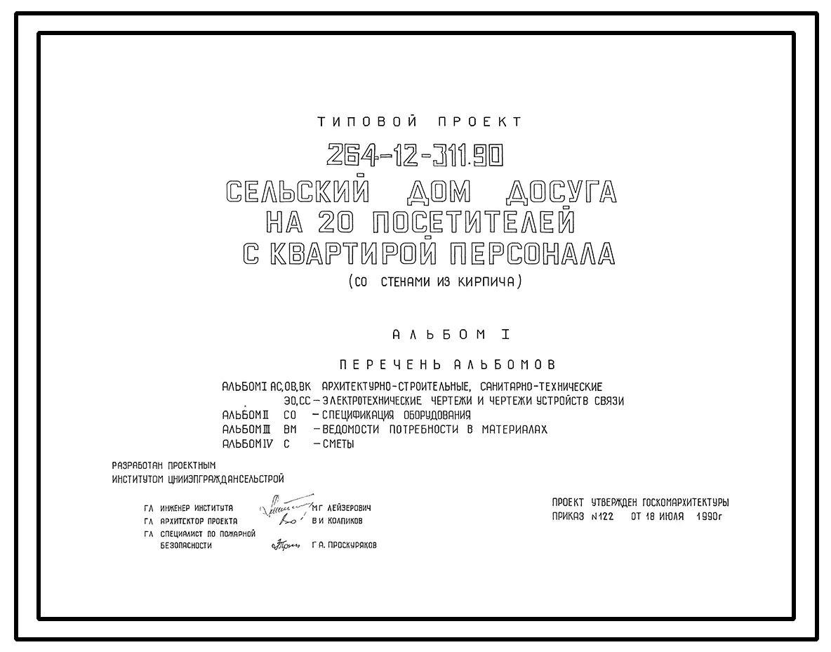 Типовой проект 264-12-311.90 Сельский дом досуга на 20 посетителей с квартирой персонала (со стенами из кирпича)