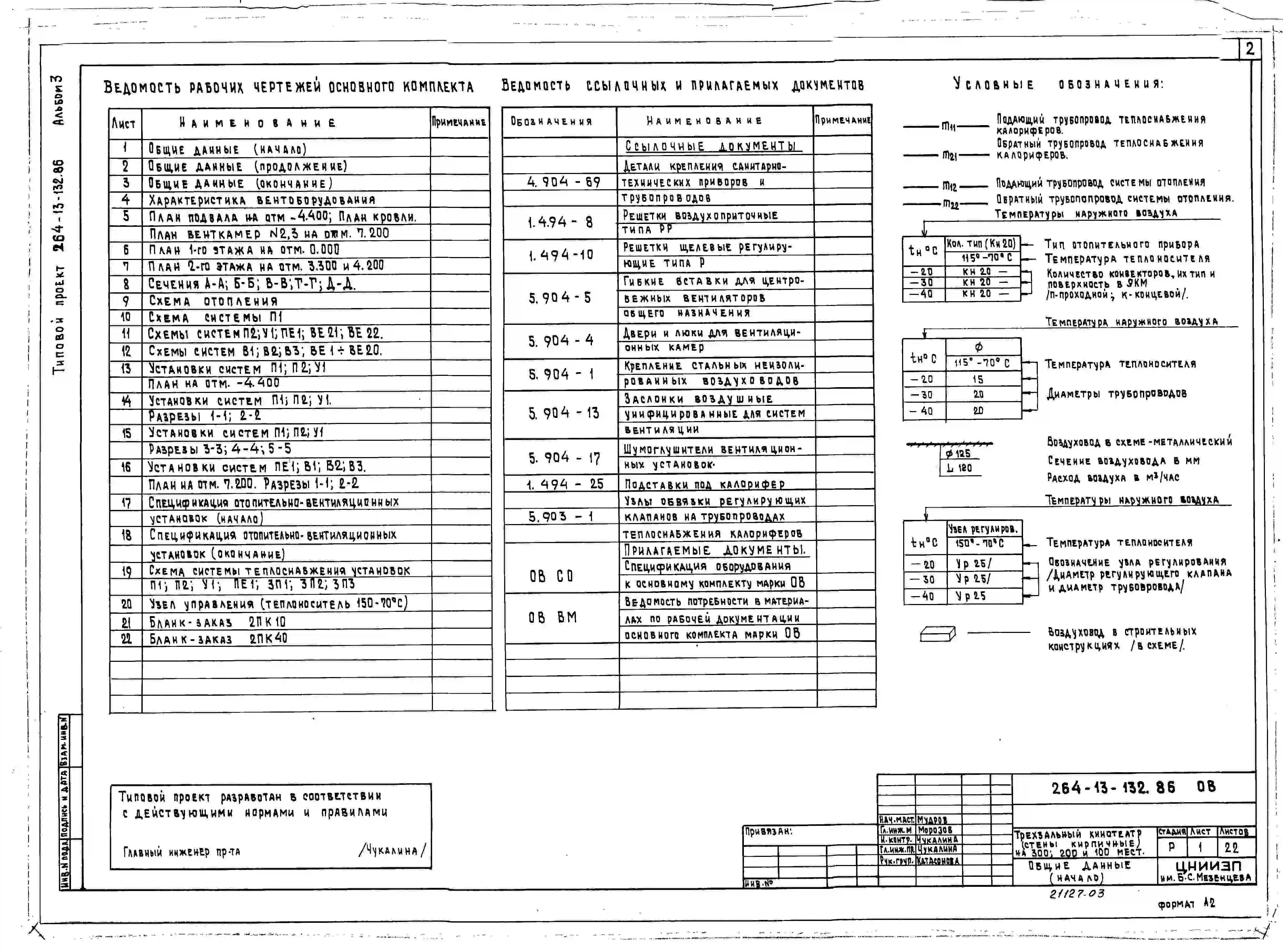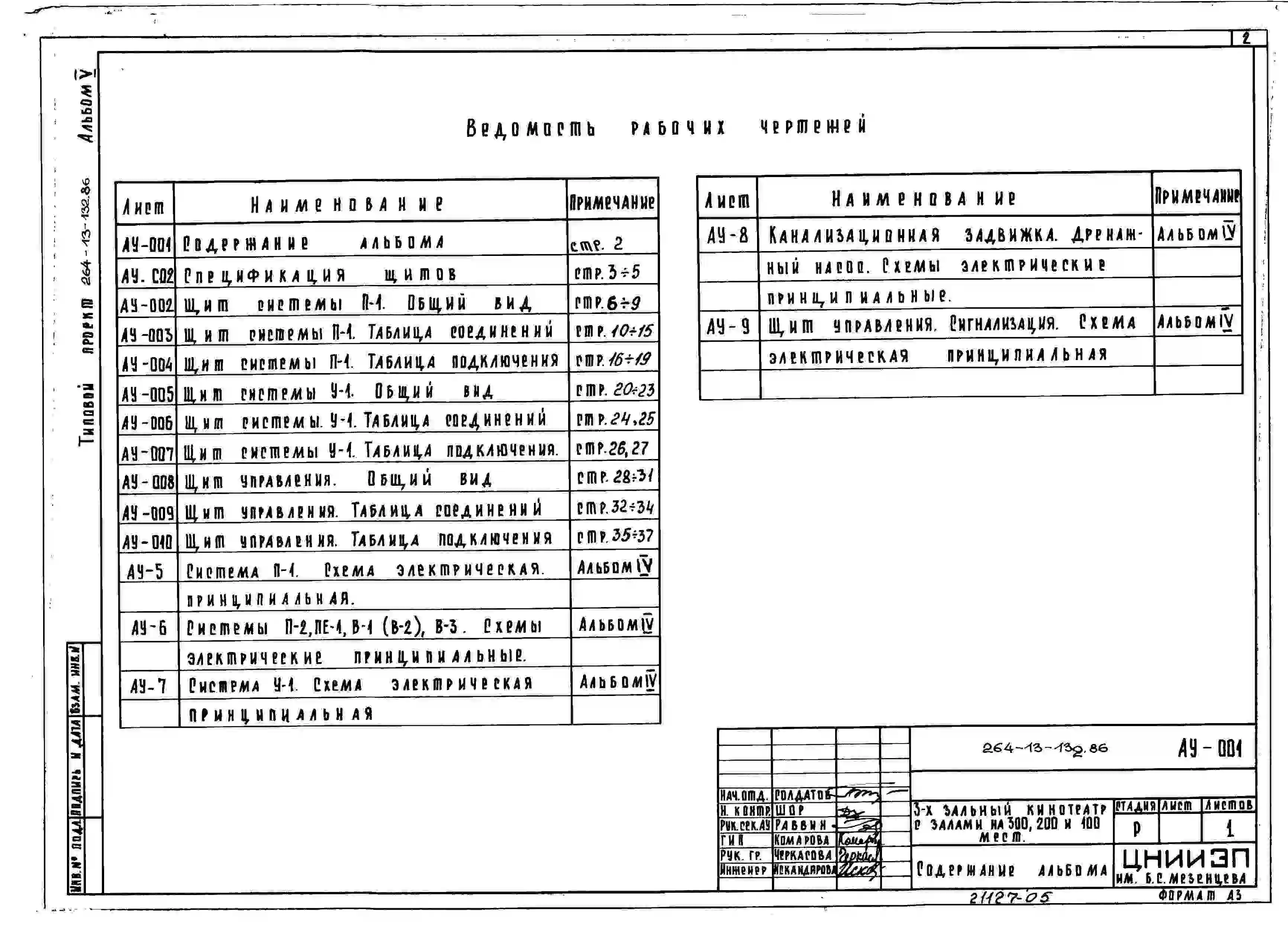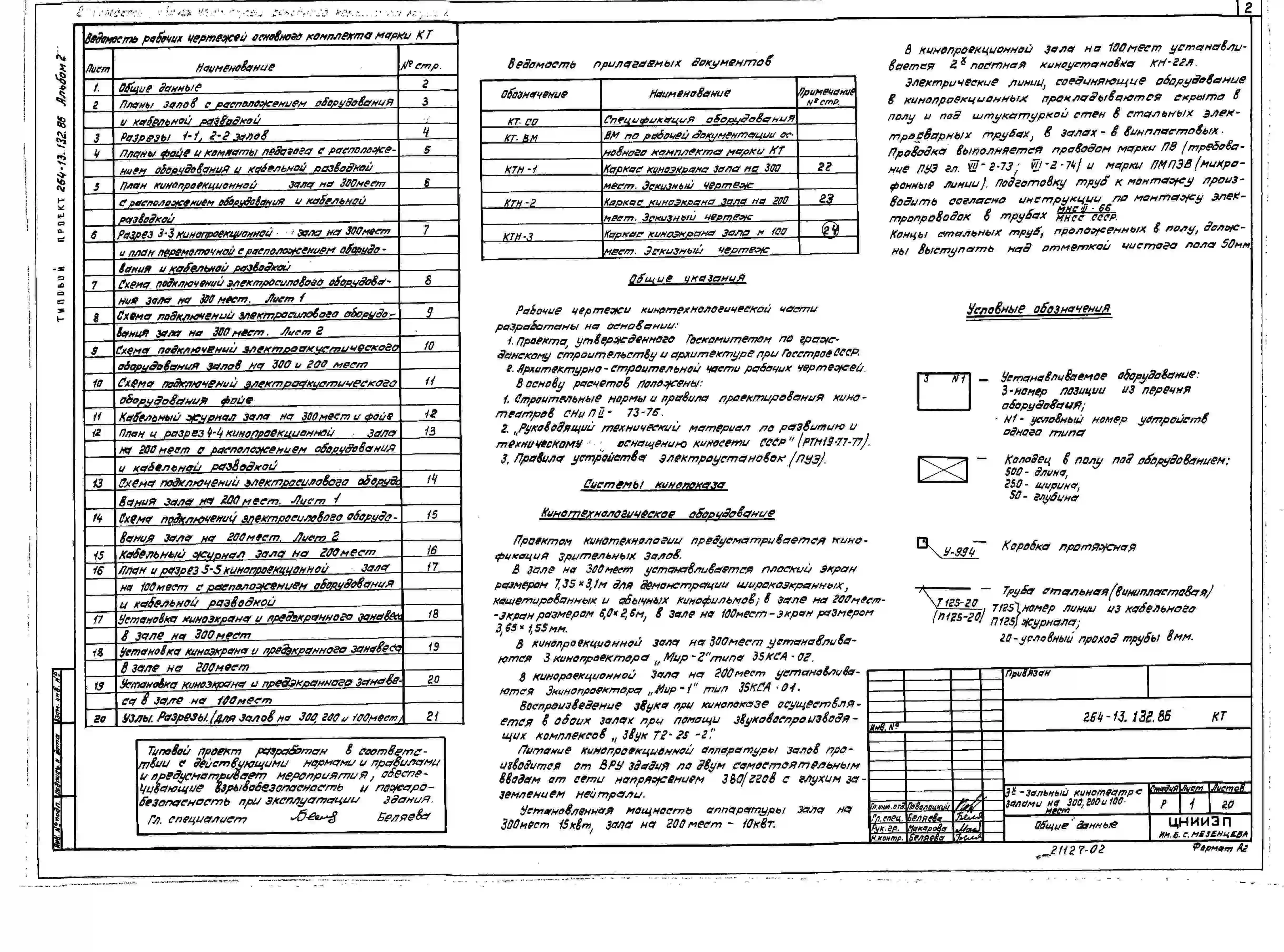 Типовой проект 264-13-132.86 Трехзальный кинотеатр на 300, 200 и 100 мест. Стены кирпичные