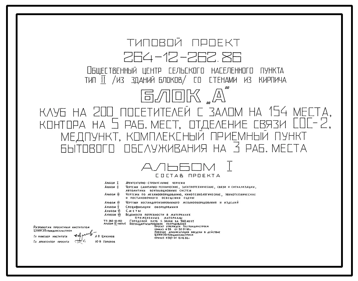 Типовой проект 264-12-262.86 Общественный центр сельского населенного пункта