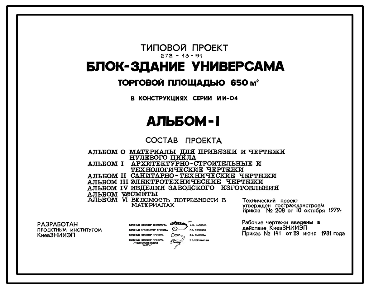 Типовой проект 272-13-91 Блок-здание универсама торговой площадью 650 кв. м.