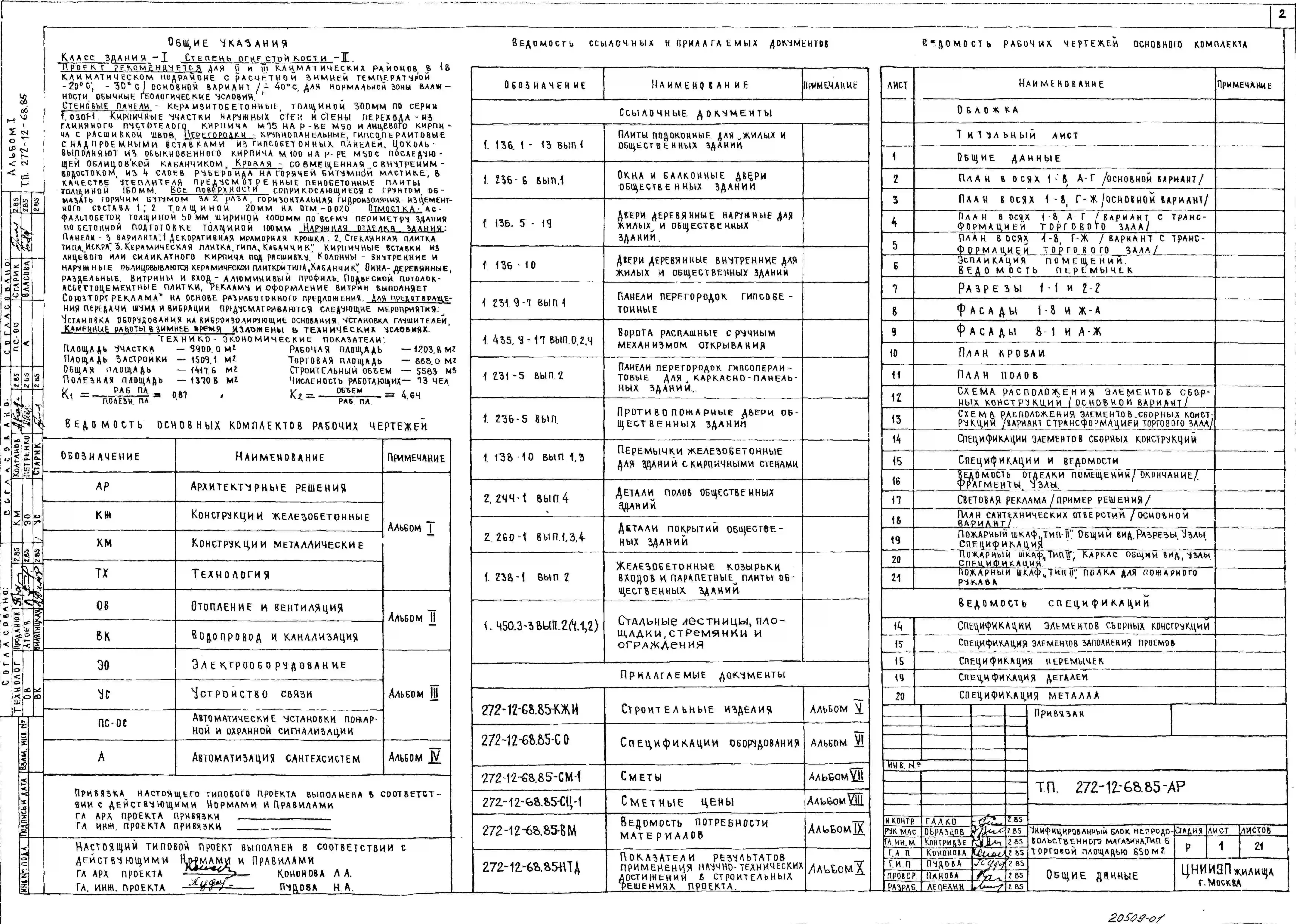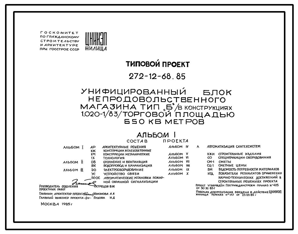 Типовой проект 272-12-68.85 Унифицированный блок непродовольственного магазина тип «Б» (в конструкциях 1.020-1/83) торговой площадью 650 м.кв