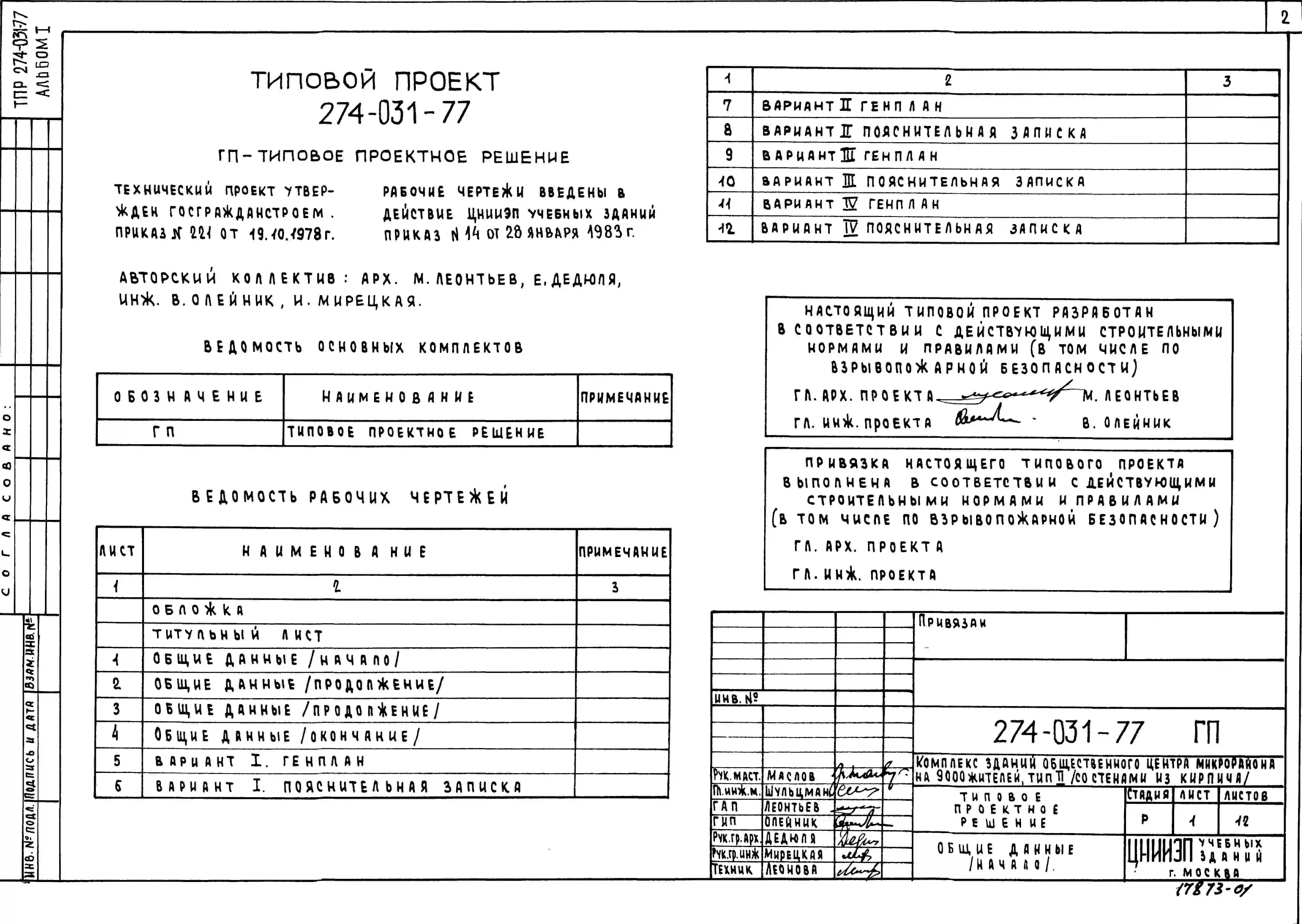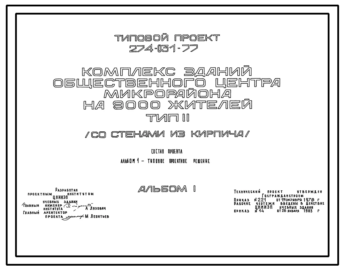 Типовой проект 274-031-77 Комплекс зданий общественного центра микрорайона на 900 жителей. Для строительств в 1 климатическом районе