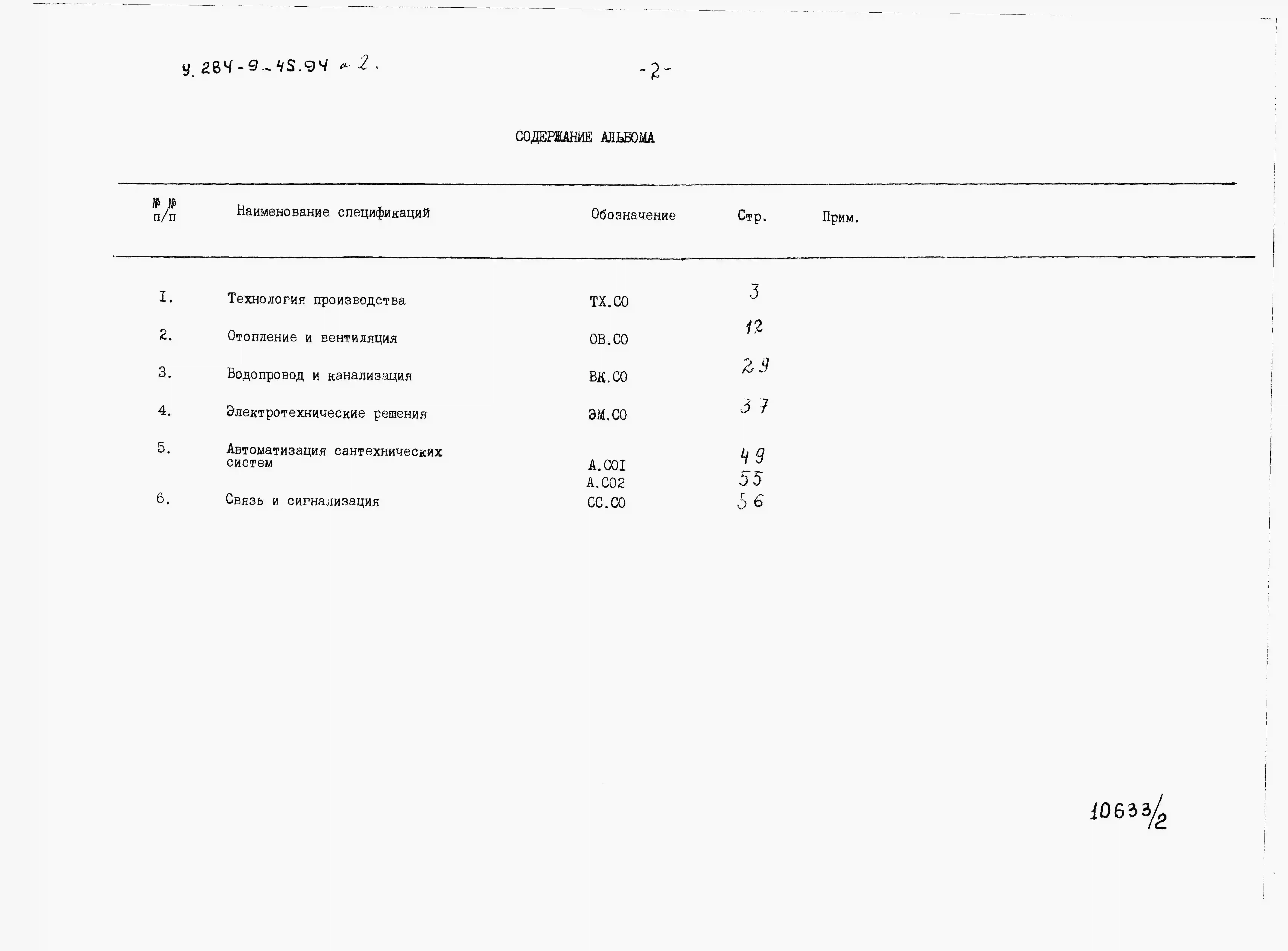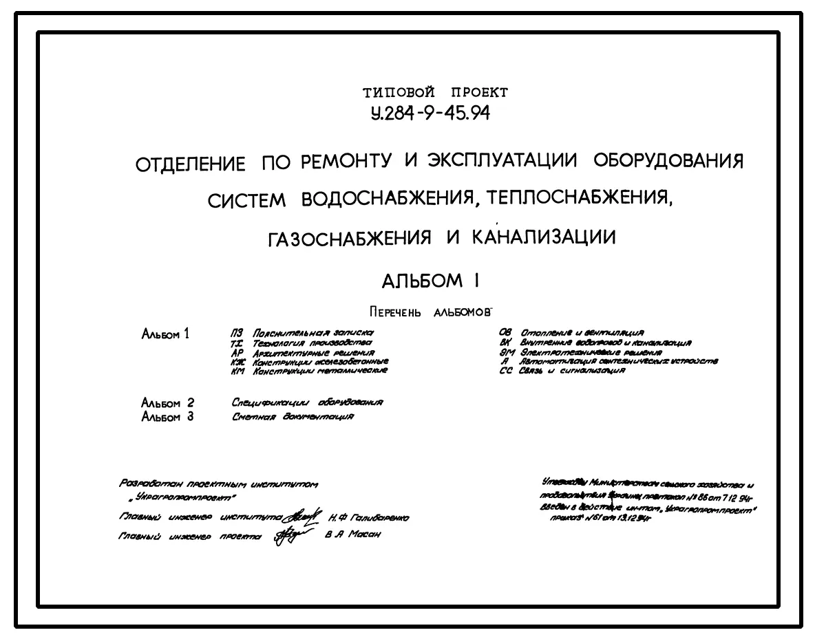 Типовой проект У.284-9-45.94 Отделение по ремонту и эксплуатации оборудования, систем водоснабжения, теплоснабжения, газоснабжения и канализации