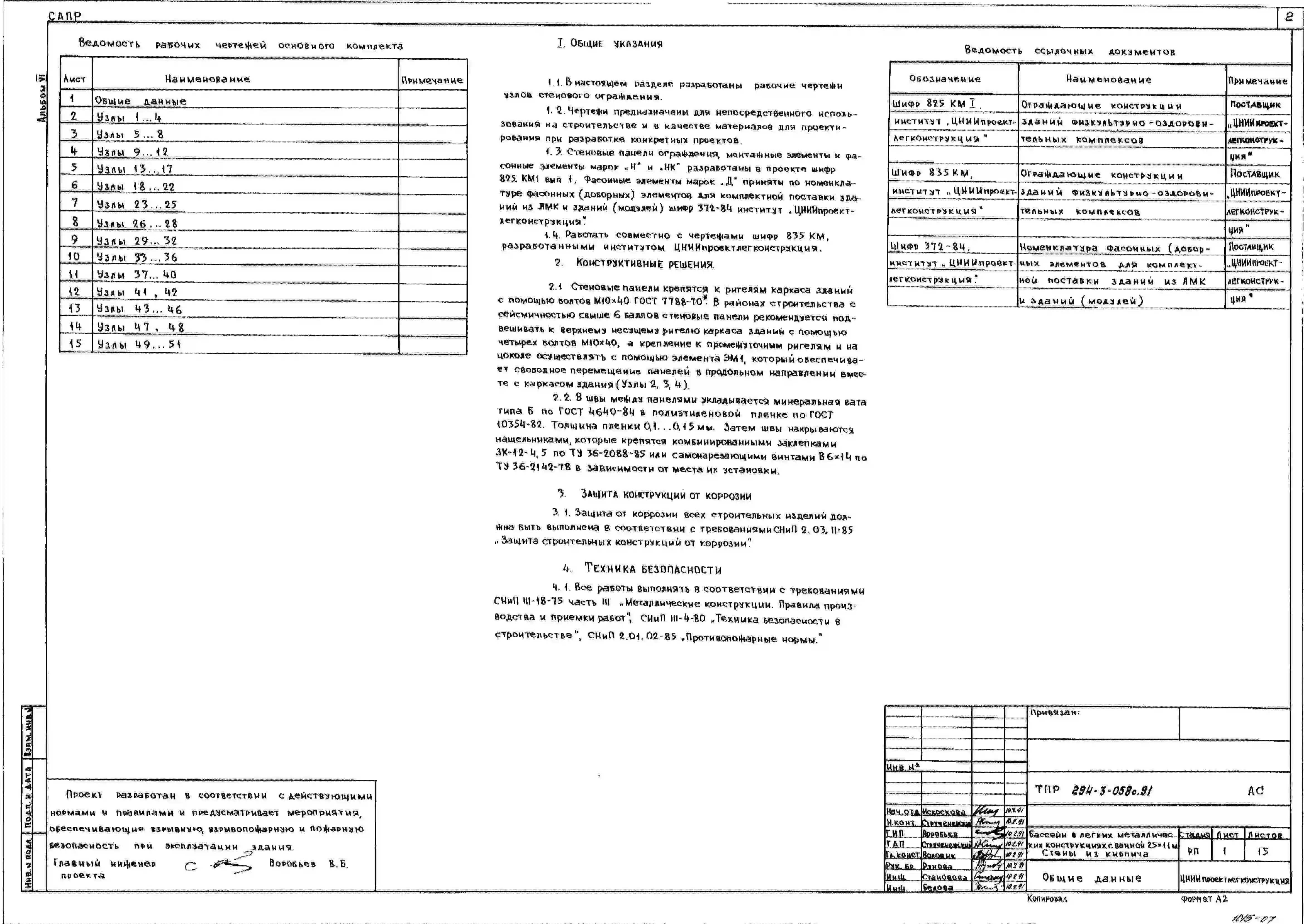 Типовой проект 294-3-058с.91 Бассейн в легких металлических конструкциях с ванной 25х11м. Сейсмичность 7, 8 баллов. Стены из кирпича (варианты – из каркасных и экструзионных панелей).