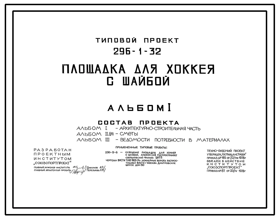 Типовой проект 296-1-32 Площадка для хоккея с шайбой