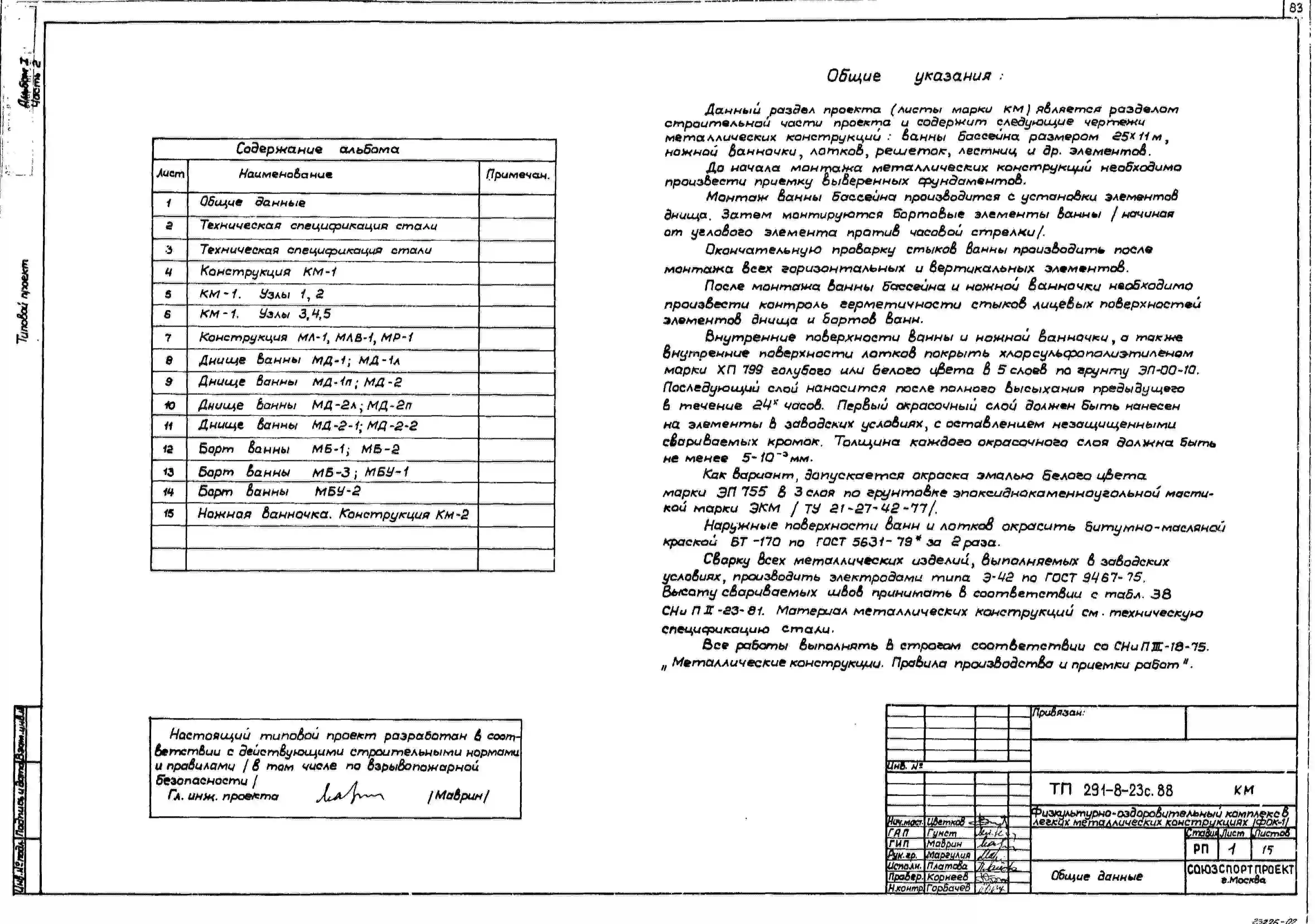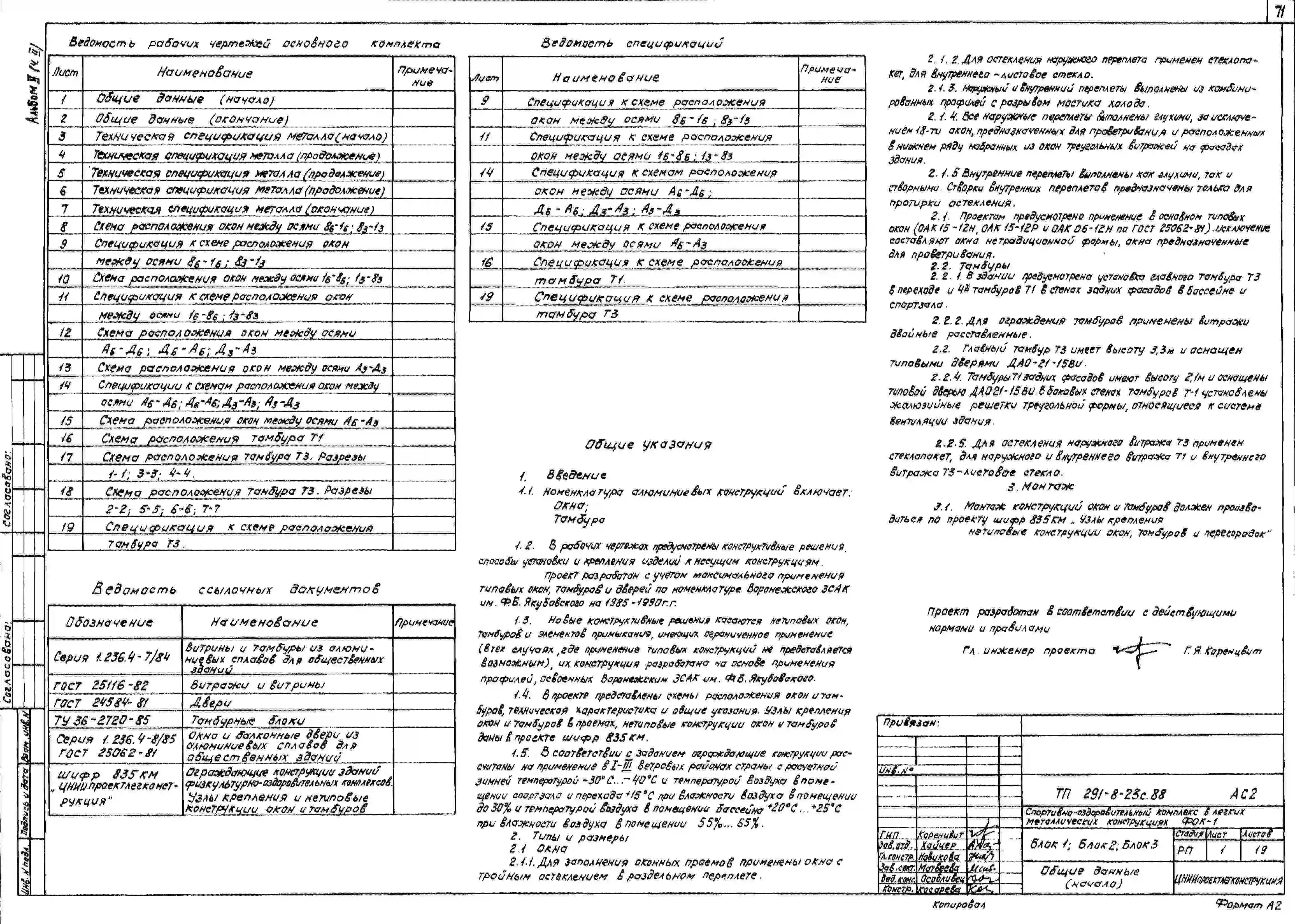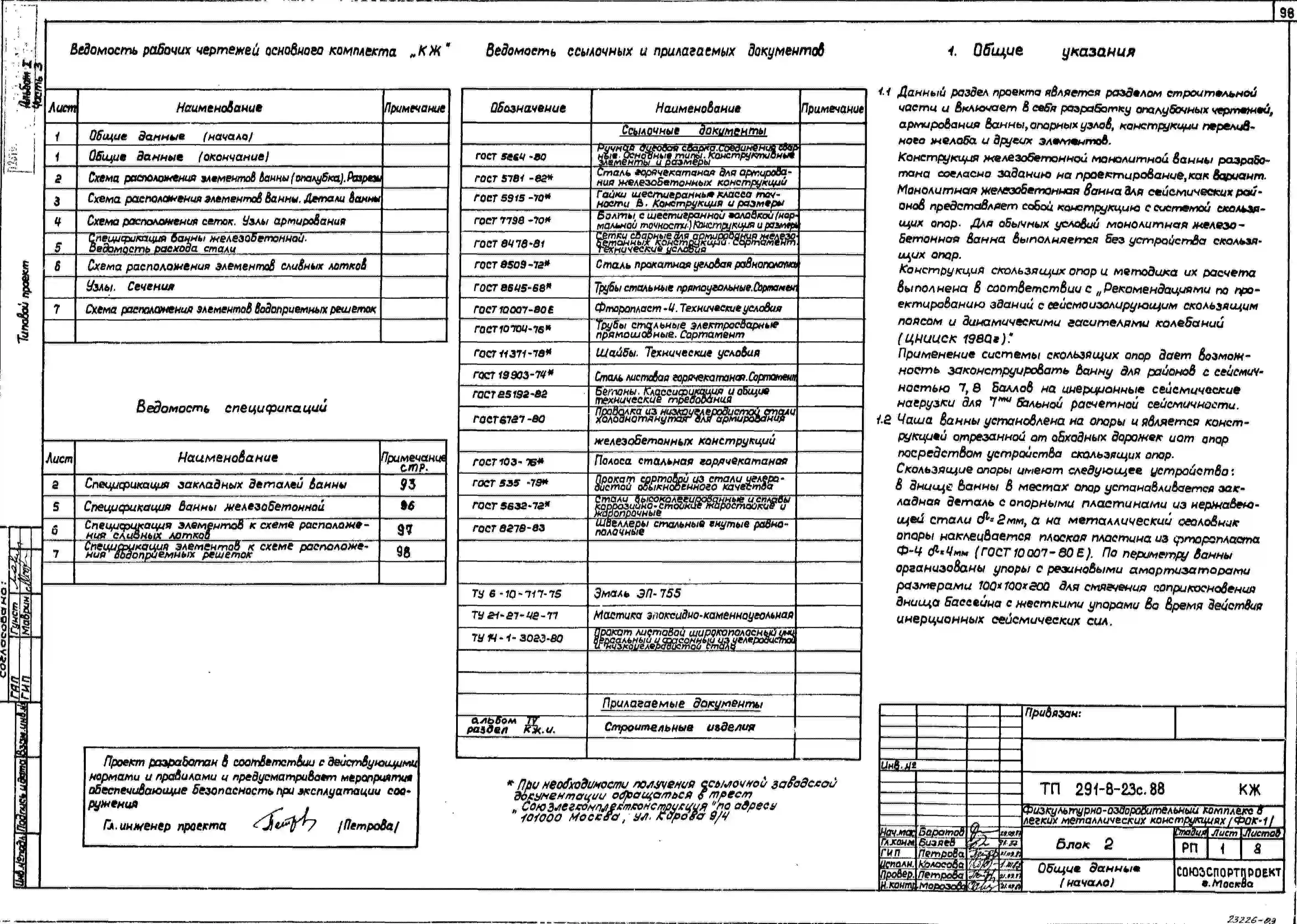 Типовой проект 291-8-23с.88 Физкультурно-оздоровительный комплекс ( в легких металлических конструкциях) (ФОК-1). Сейсмичность 7, 8 баллов. Стены из трехслойных металлических панелей.