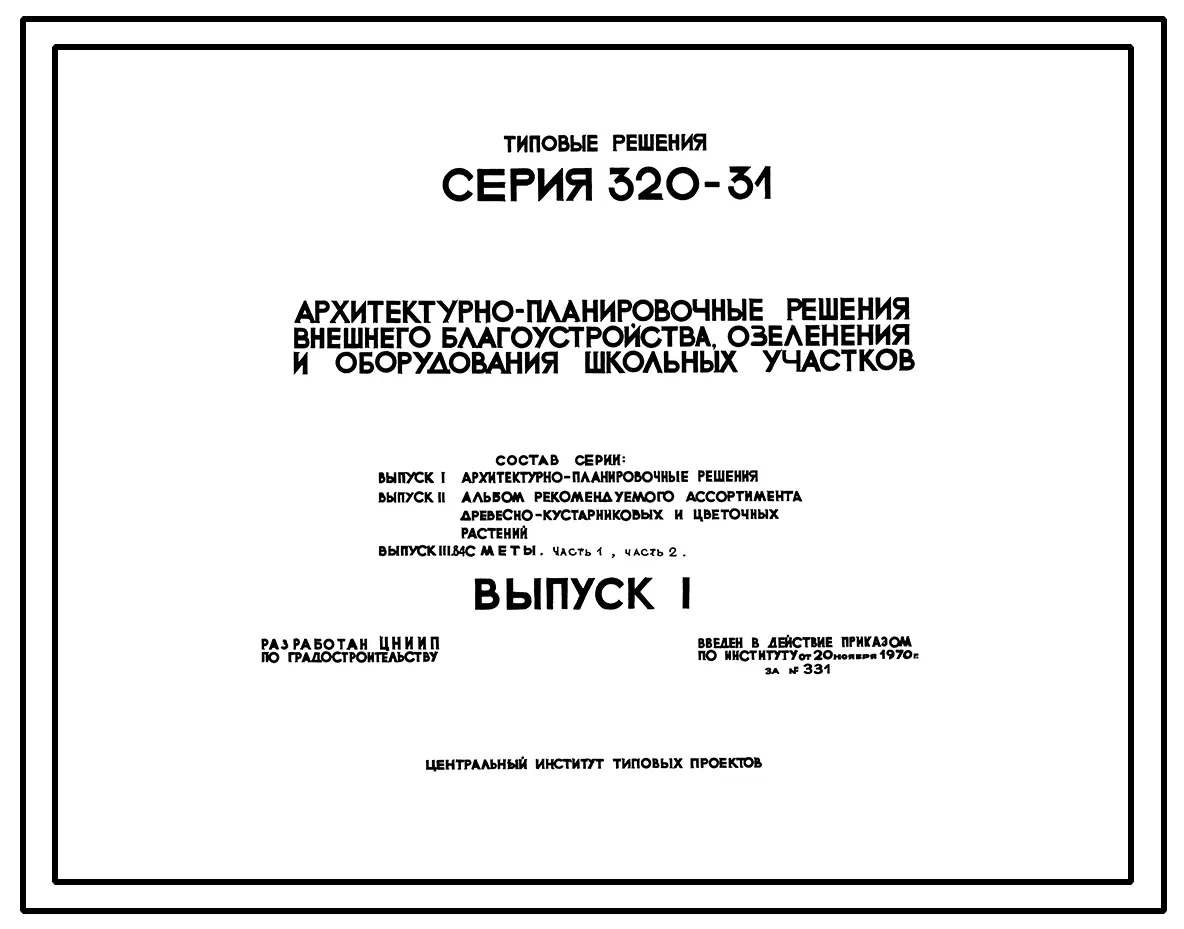 Типовой проект 320-31 Архитектурно - планировочные решения внешнего благоустройства, озеленения и оборудования школьных участков