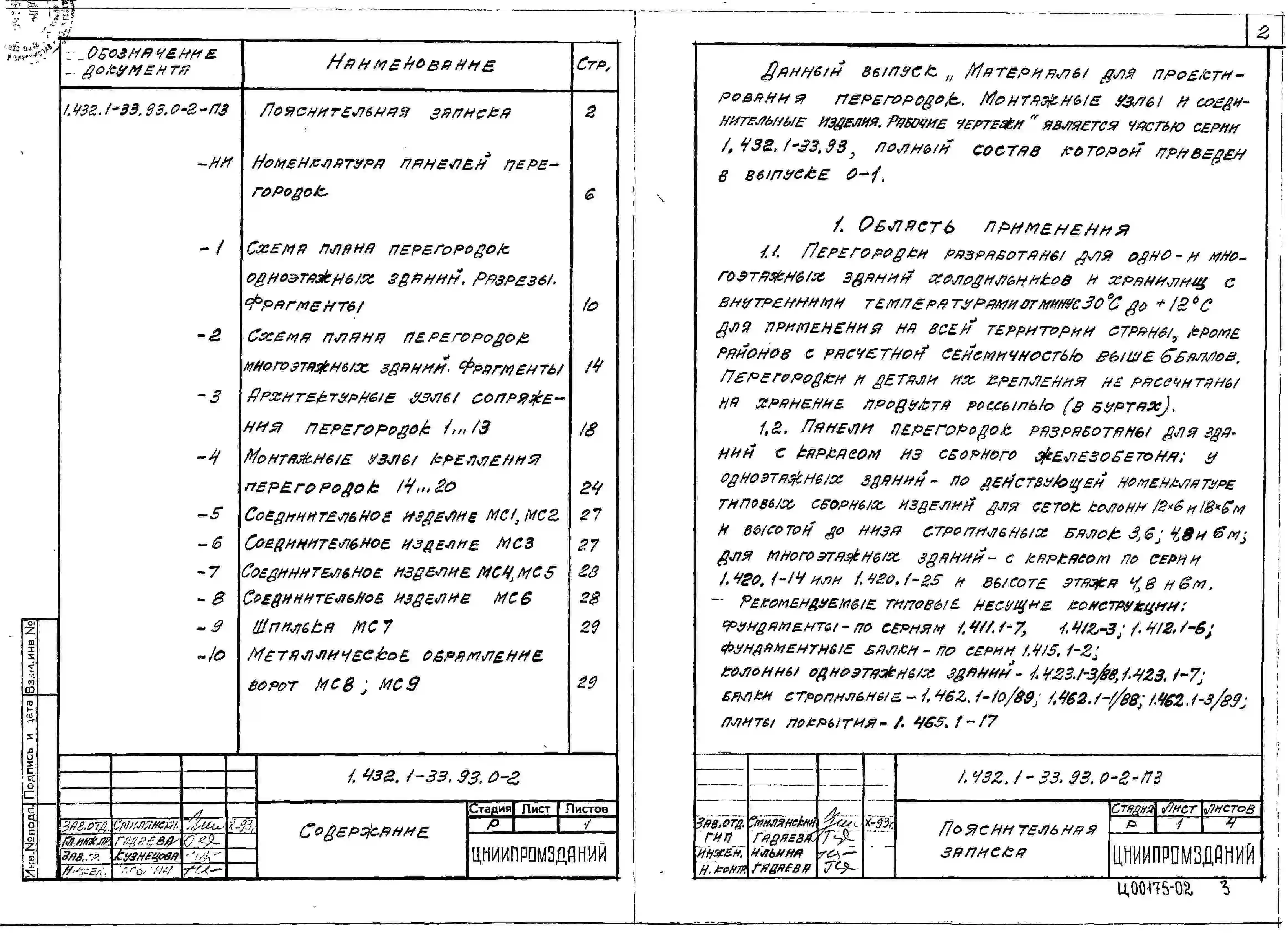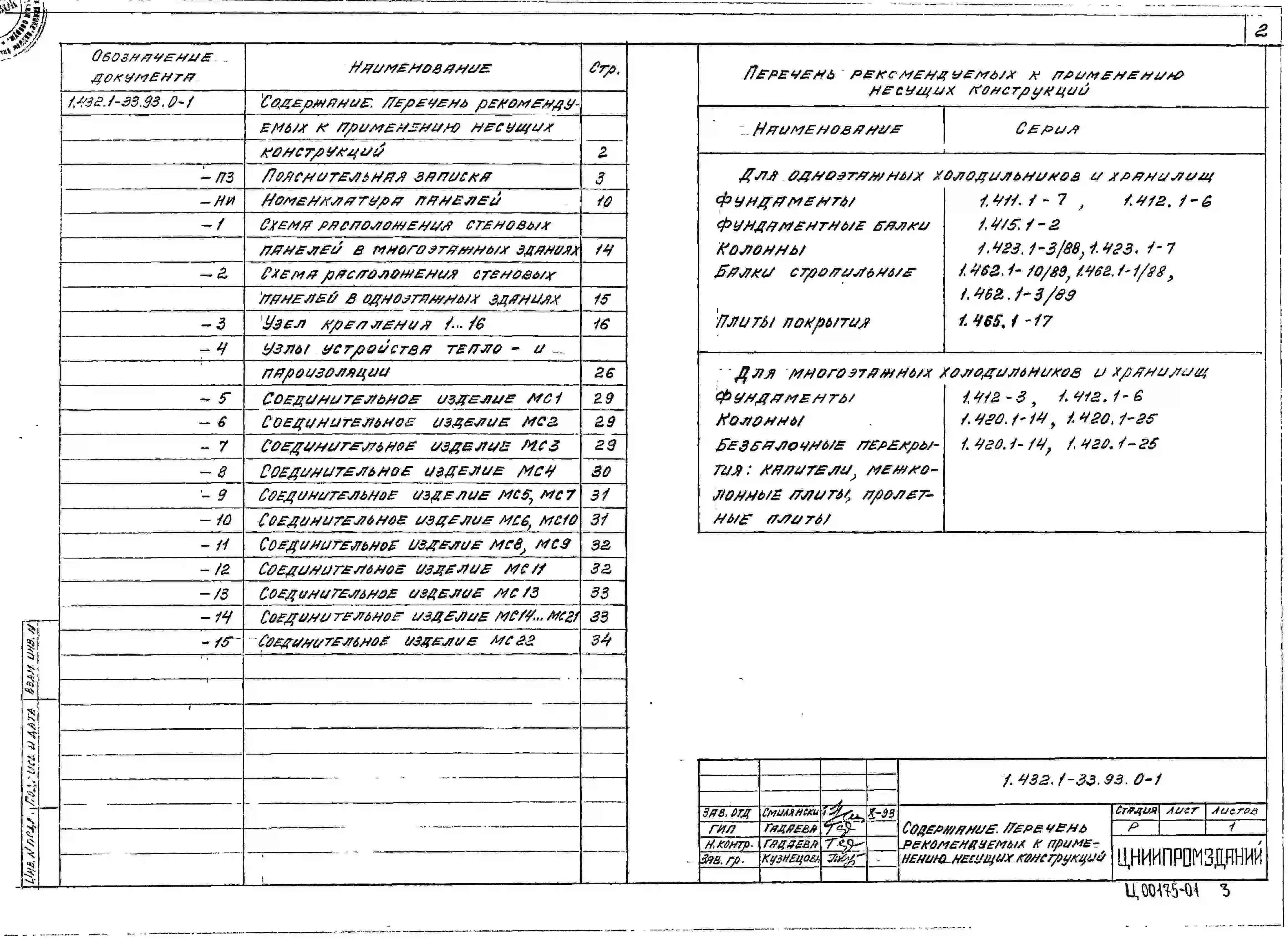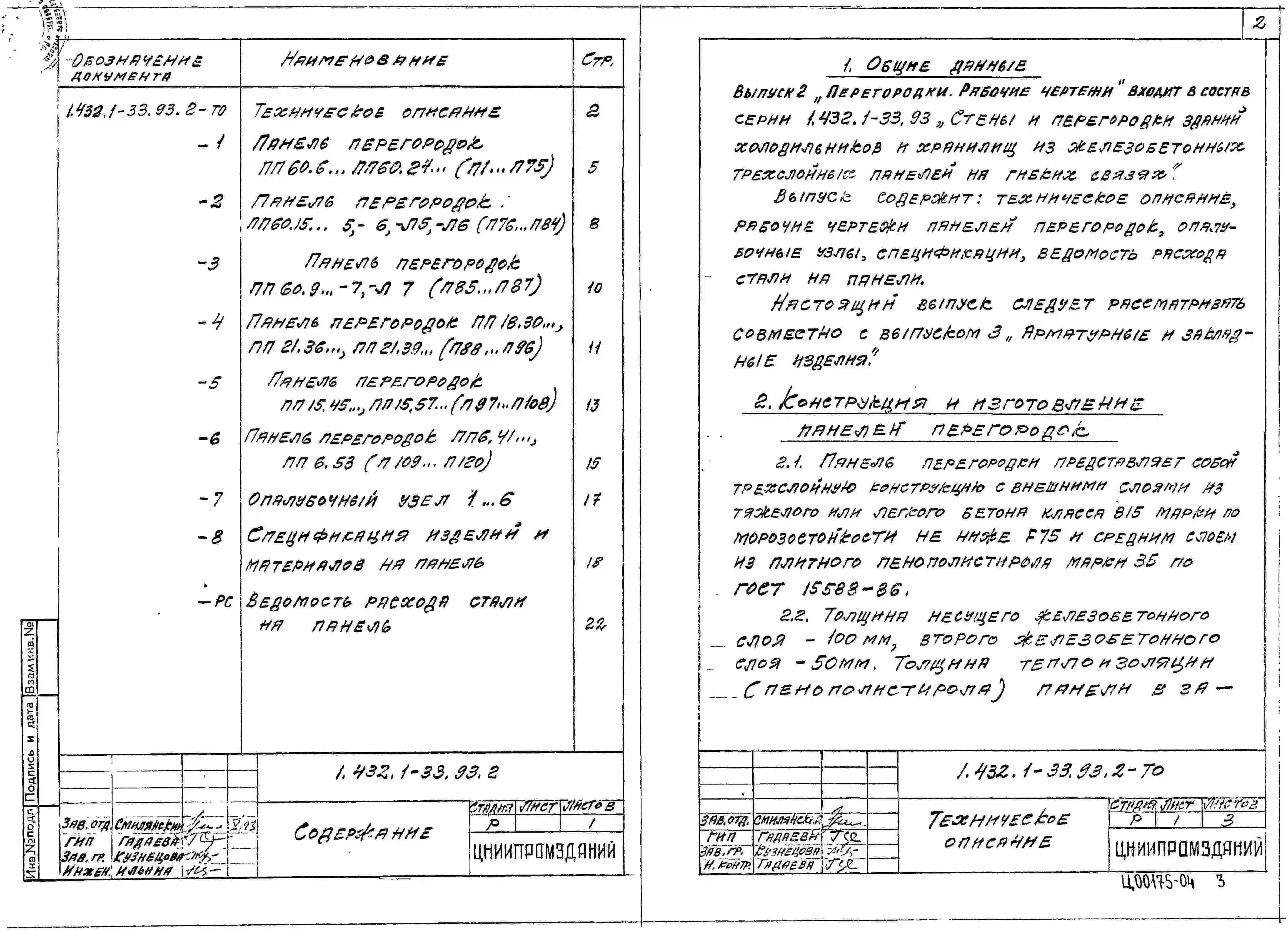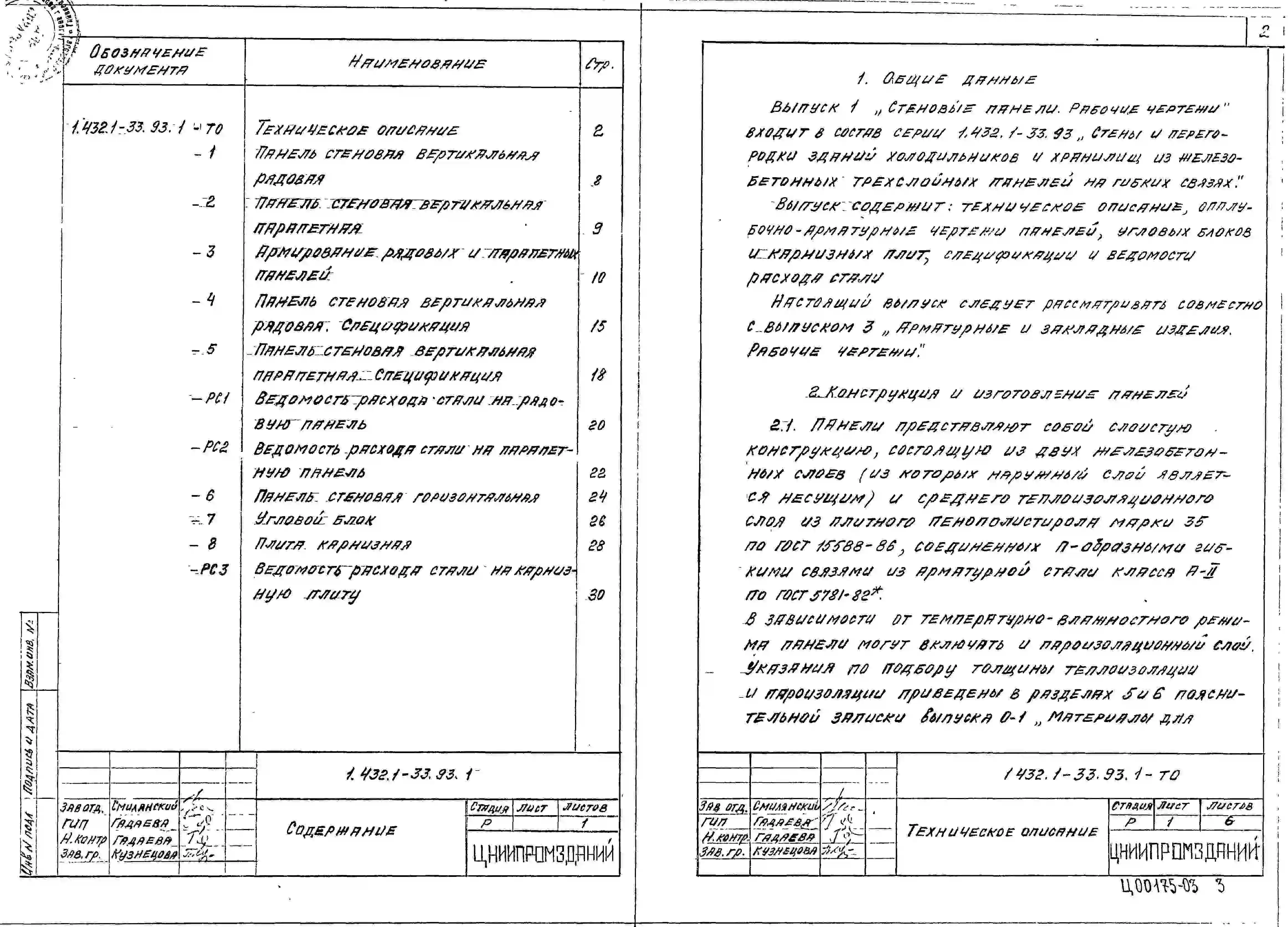 Серия 1.432.1-33.93 Стены и перегородки зданий холодильников и хранилищ из железобетонных трехслойных панелей на гибких связях. Материалы для проектирования. Рабочие чертежи.