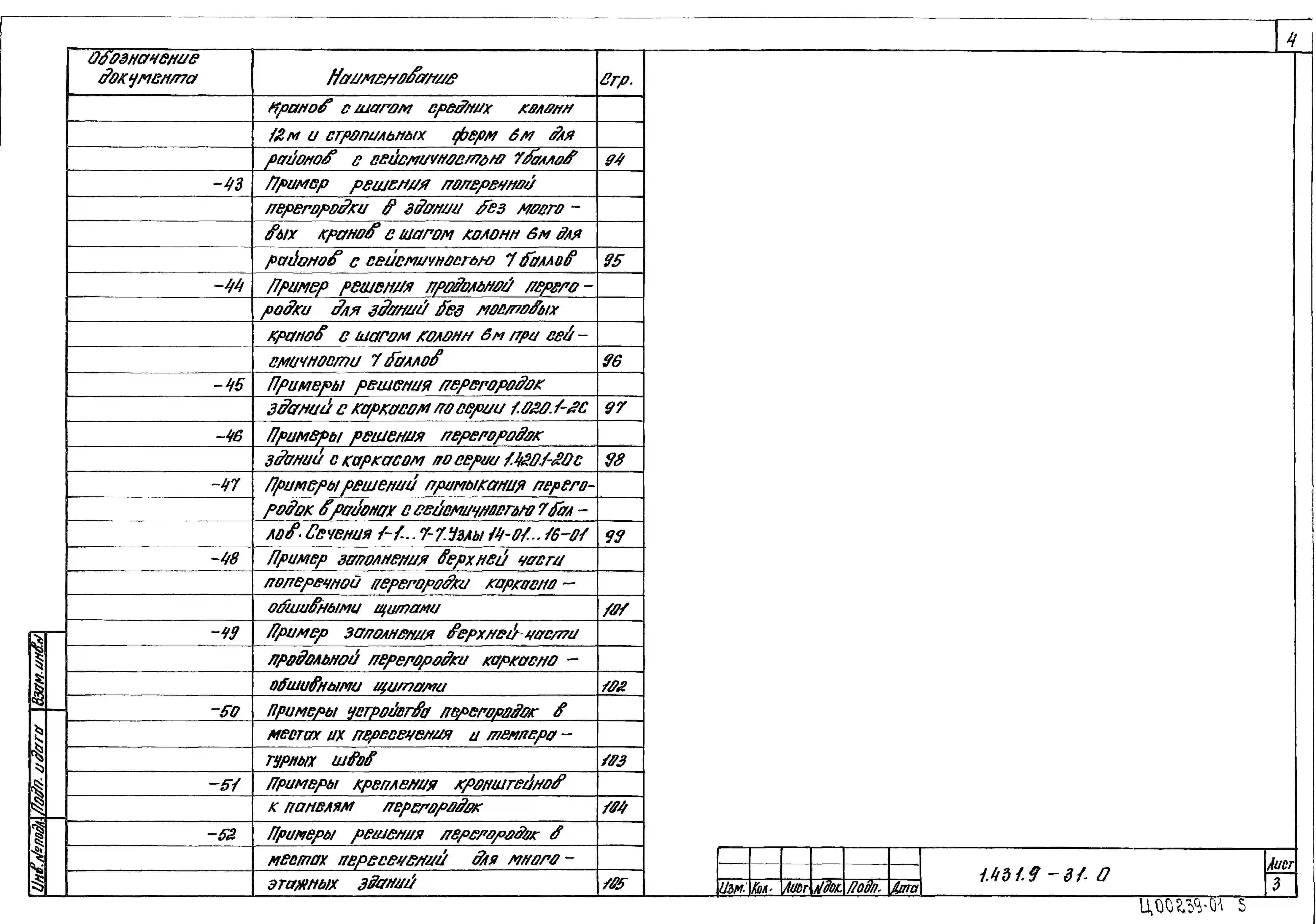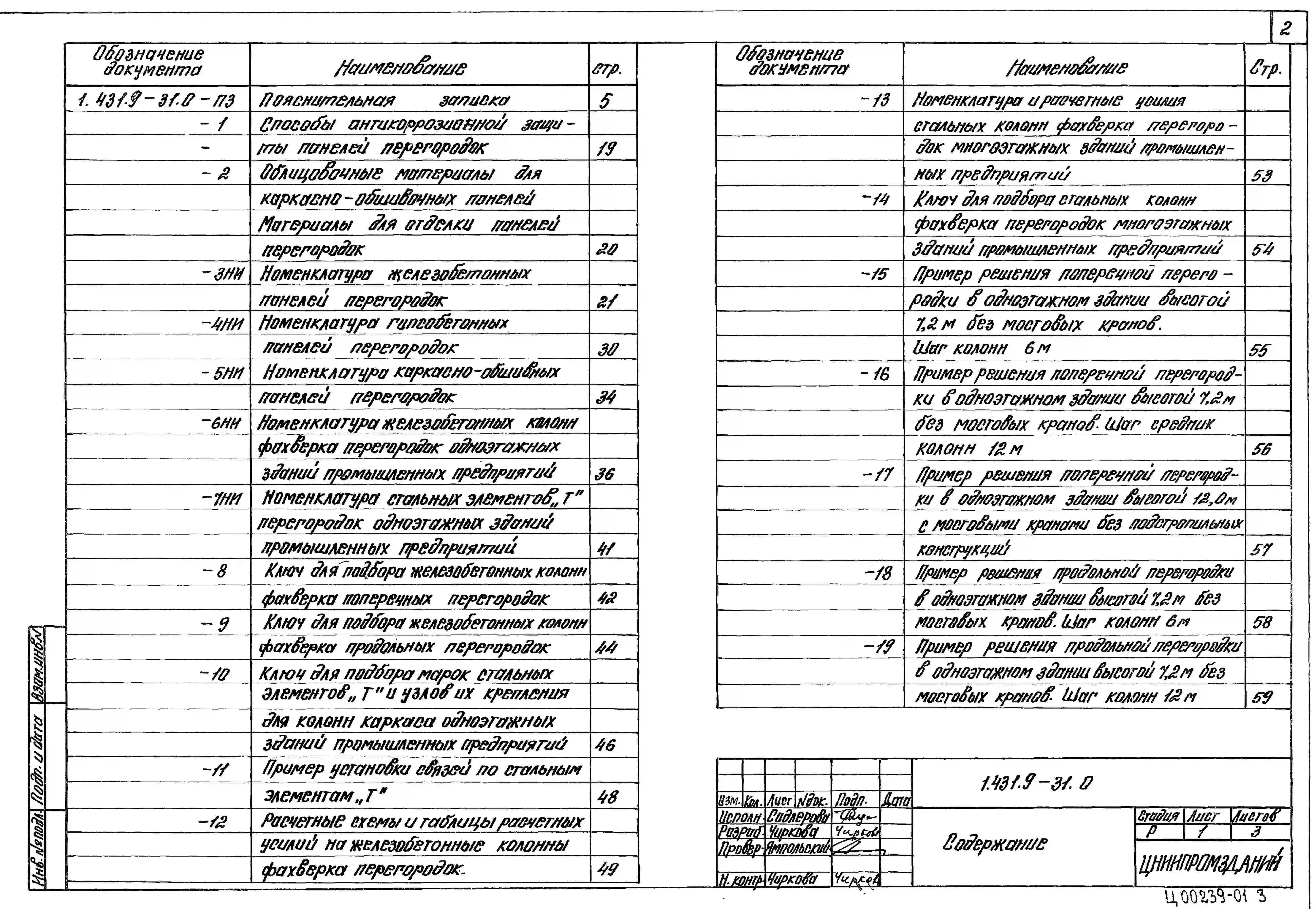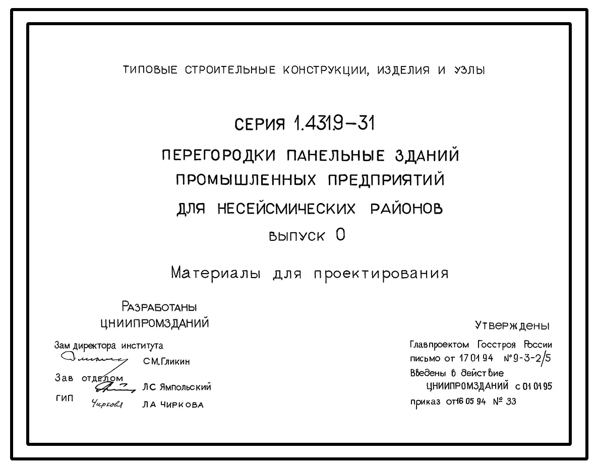 Серия 1.431.9-31 Перегородки панельные зданий промышленных предприятий для несейсмических районов. Материалы для проектирования и рабочие чертежи.