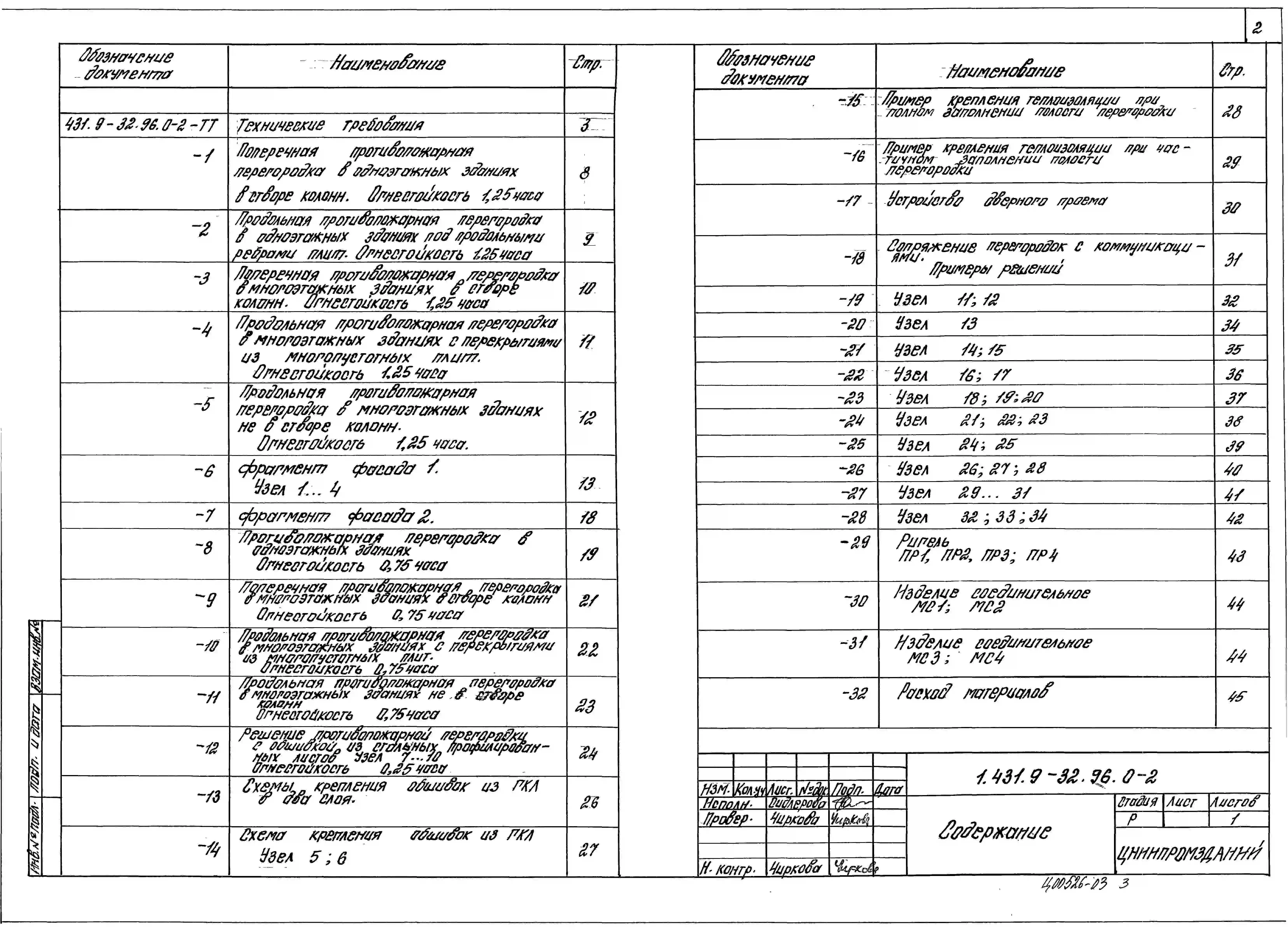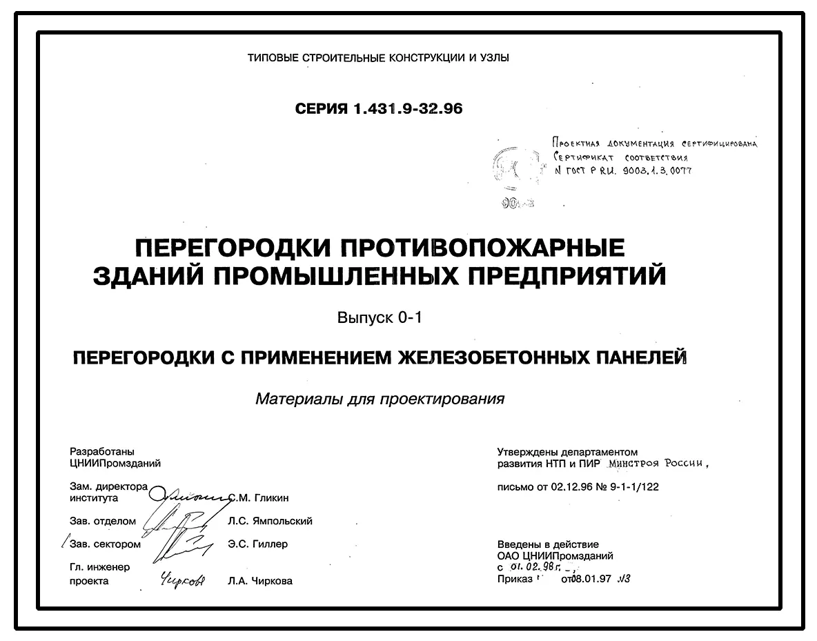 Серия 1.431.9-32.96 Перегородки противопожарные зданий промышленных предприятий. Материал для проектирования и рабочие чертежи.