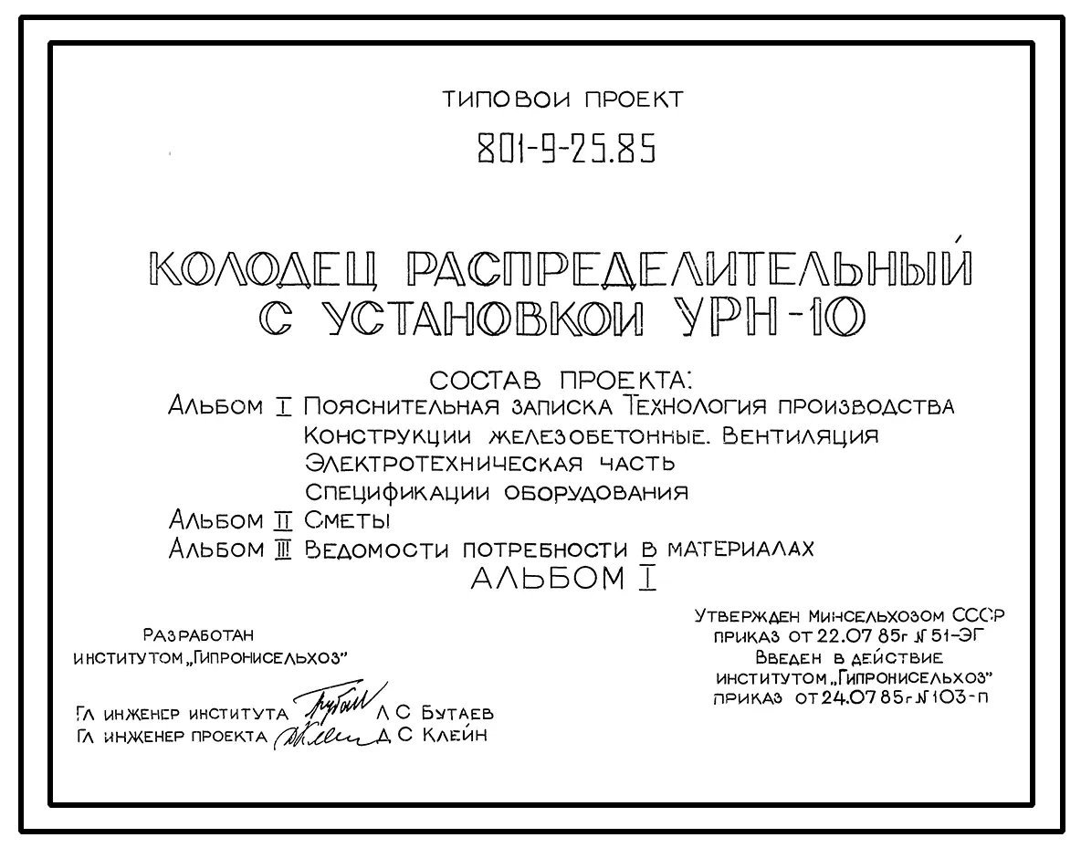 Типовой проект 801-9-25.85 Колодец распределительный с установкой УТН-10