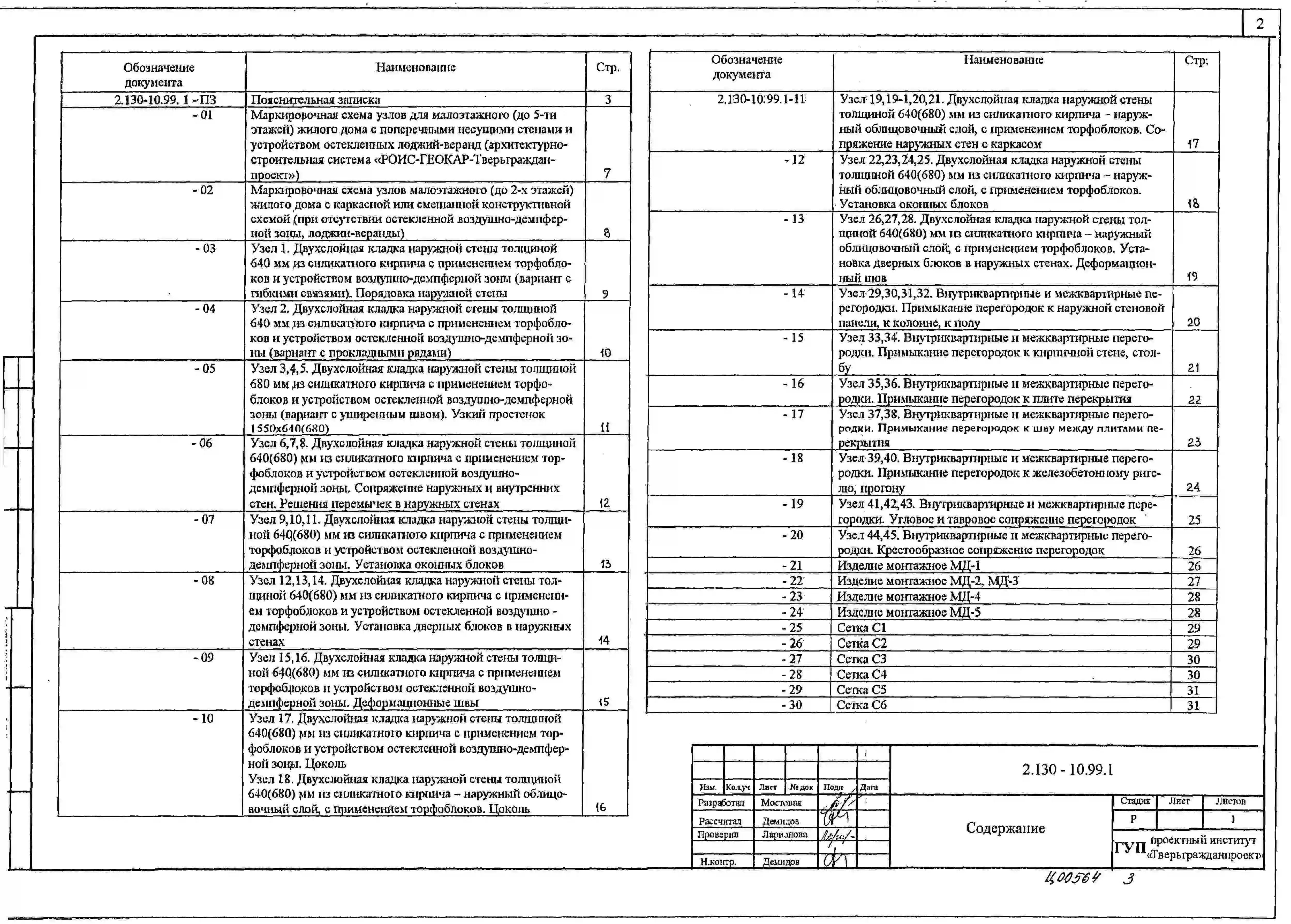Серия 2.130-10.99 Узлы ненесущих (навесных, самонесущих) наружных стен и перегородок малоэтажных жилых зданий с применением торфоблоков "Геокар". Материалы для проектирования и рабочие чертежи.
