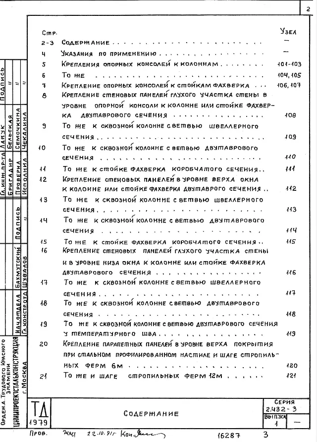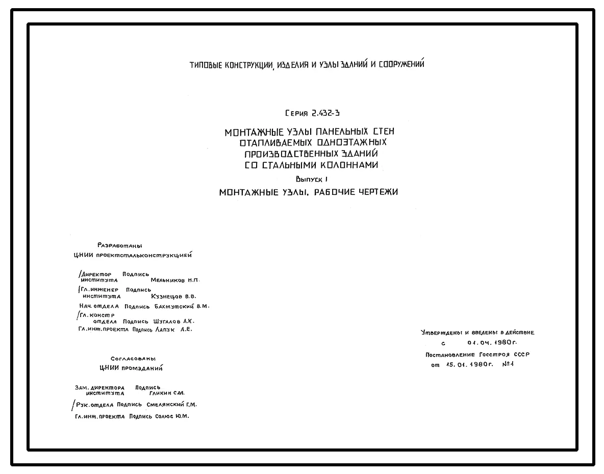 Серия 2.432-3 Монтажные узлы панельных стен отапливаемых одноэтажных производственных зданий со стальными колоннами. Материалы для проектирования и рабочие чертежи.