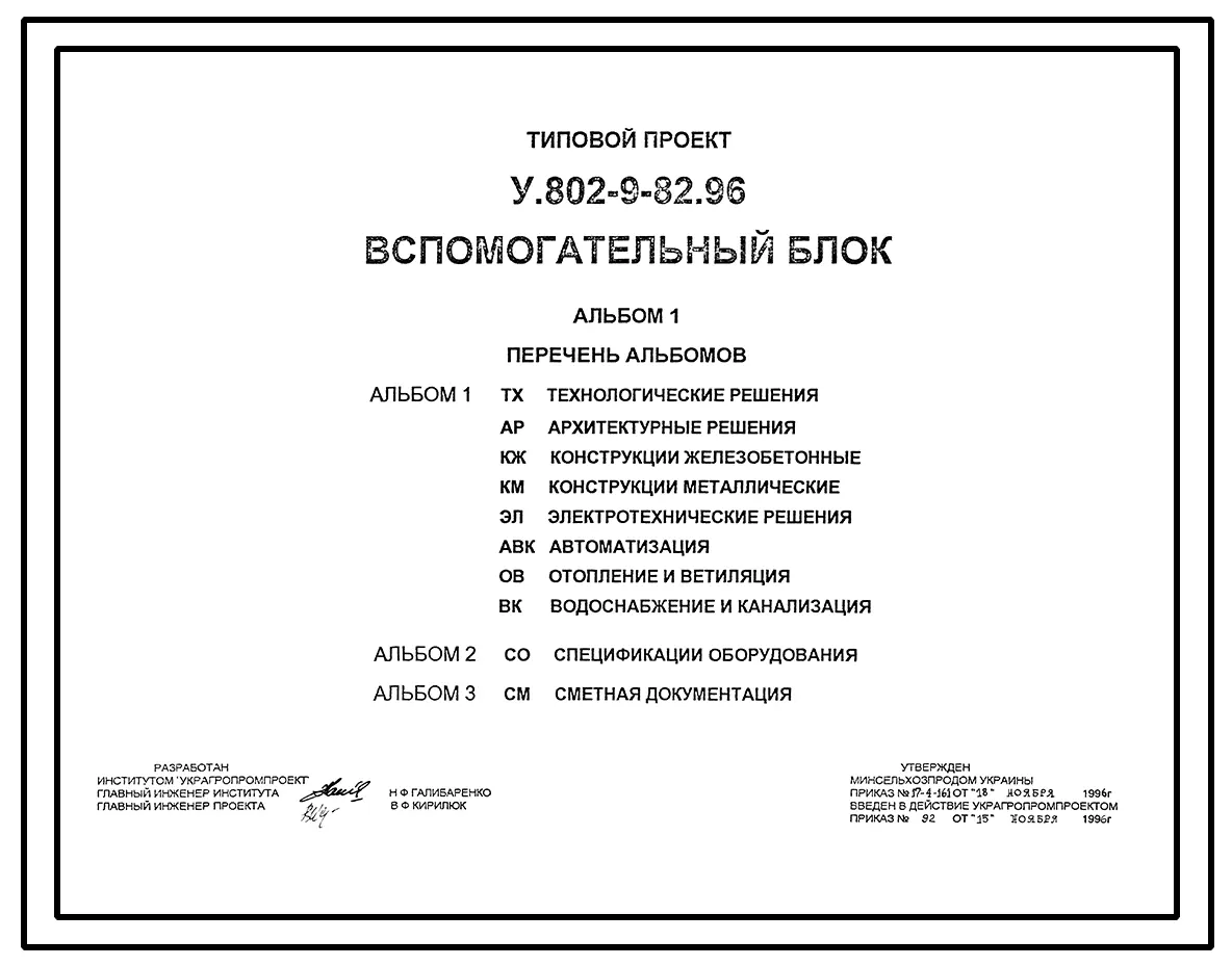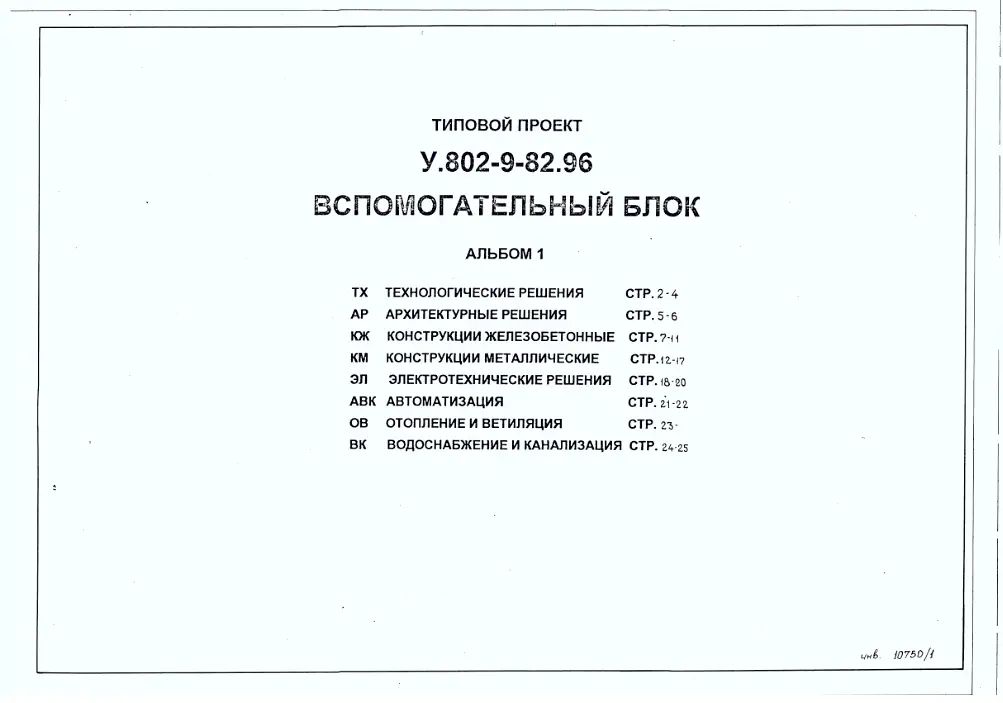 Типовой проект У.802-9-82.96 Вспомогательный блок