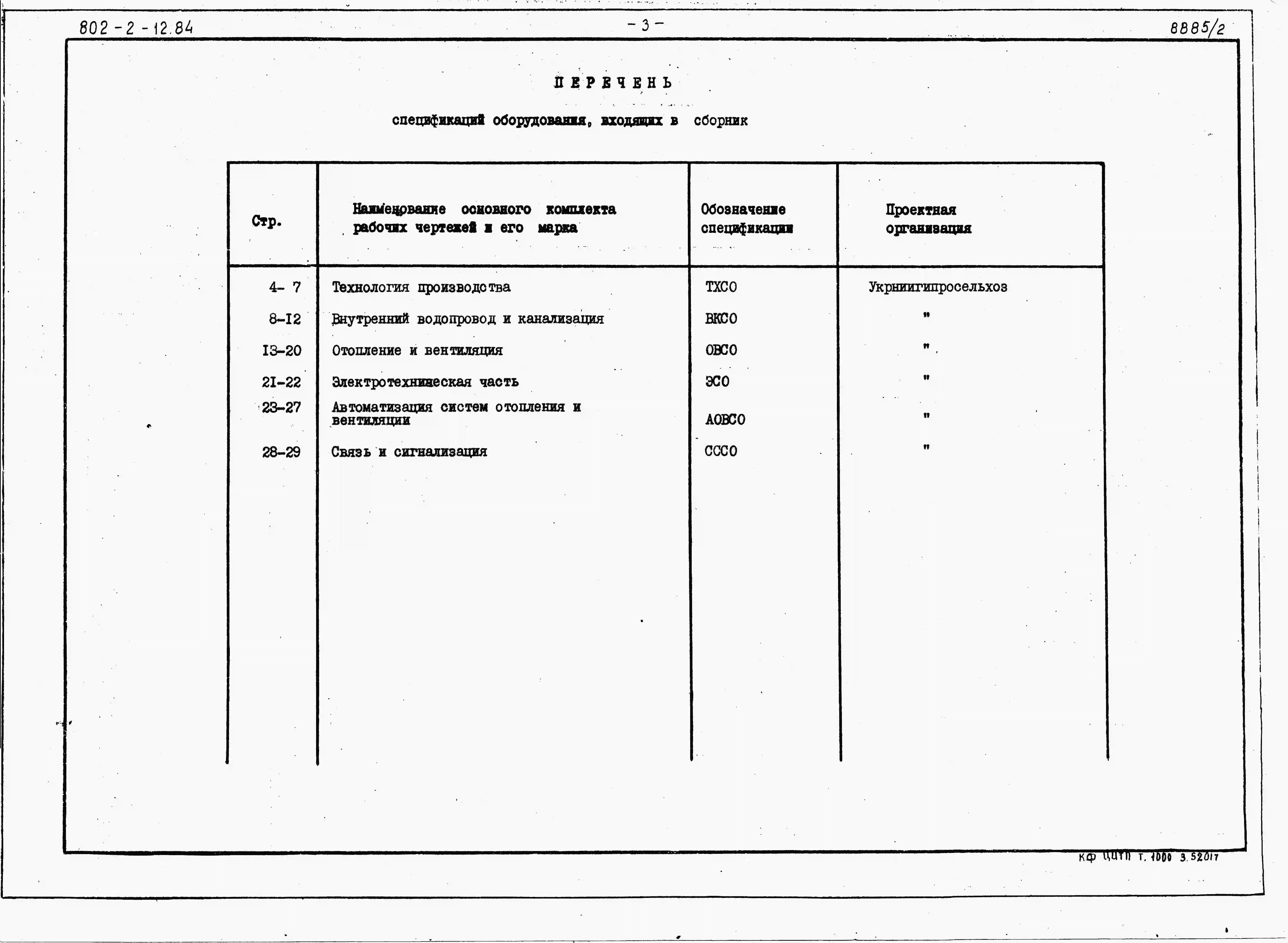 Типовой проект 802-2-12.84 Свинарник на 300 холостых и супоросных маток, 40 голов ремонтного молодняка, 4 хряка, 1040 поросят-отъемышей