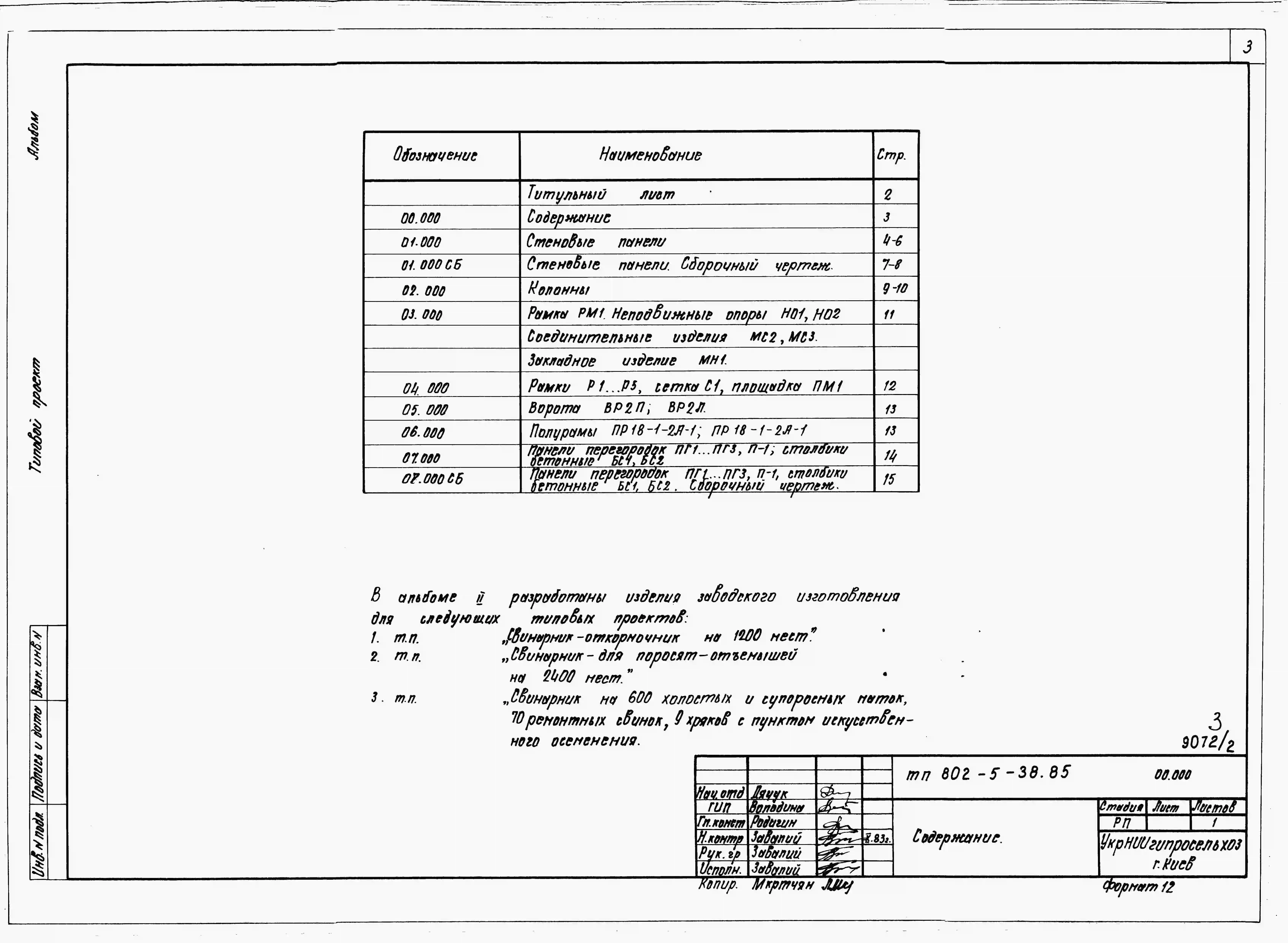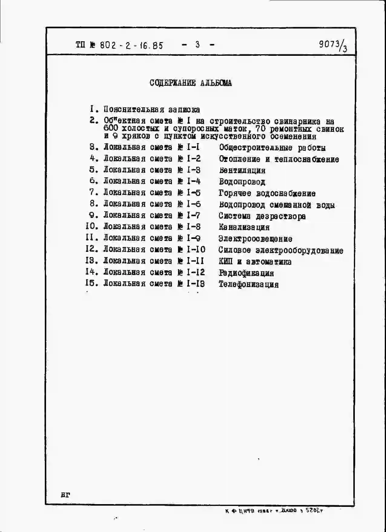Типовой проект 802-2-16.85 Свинарник на 600 холостых и супоросных маток, 70 ремонтных свинок и 9 хряков с пунктом их искусственного осеменения