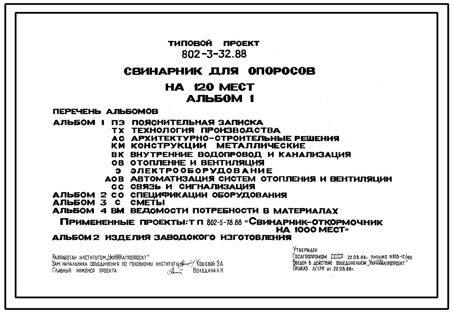 Типовой проект 802-3-32.88 Свинарник для проведения опоросов на 120 мест
