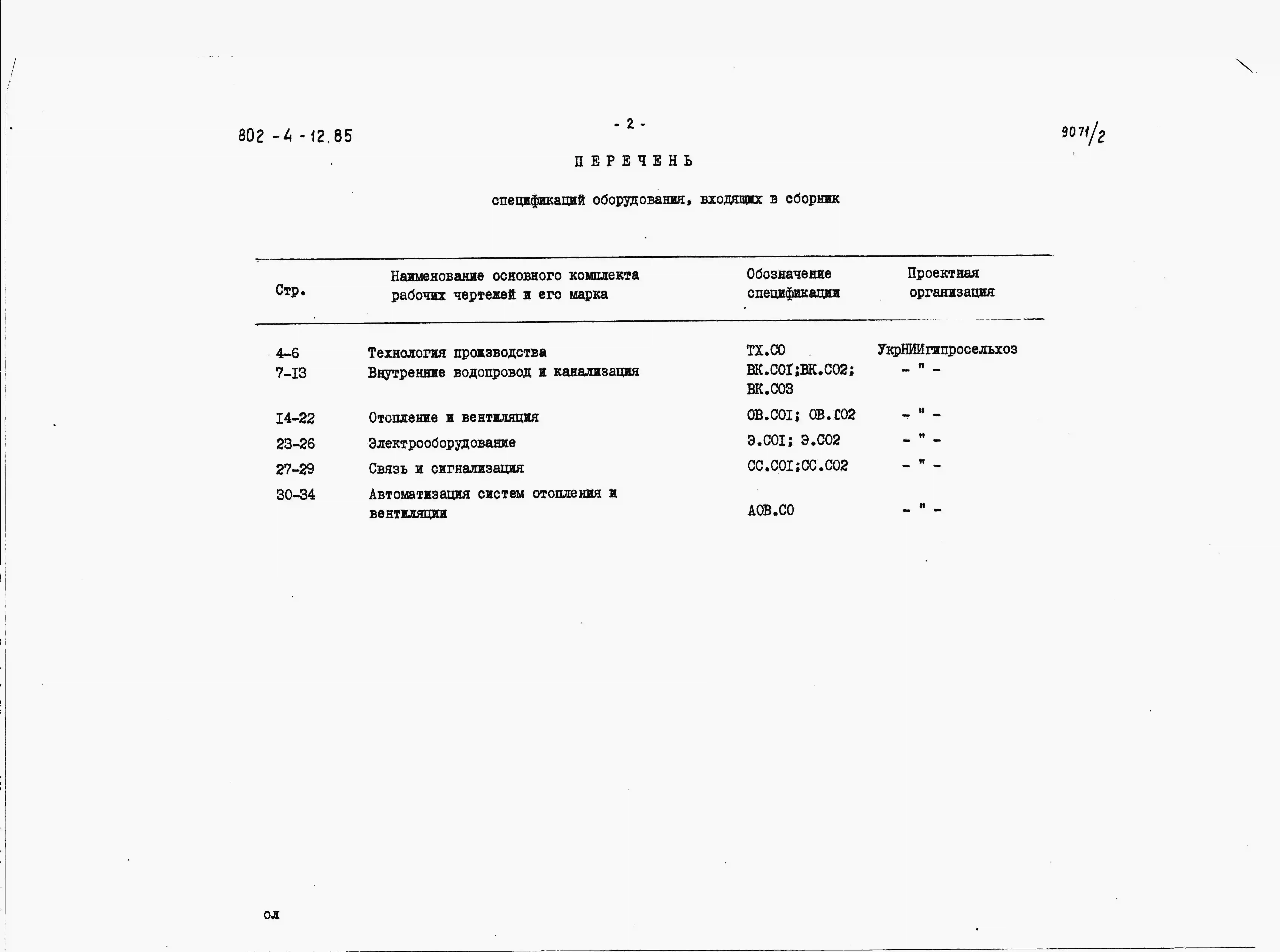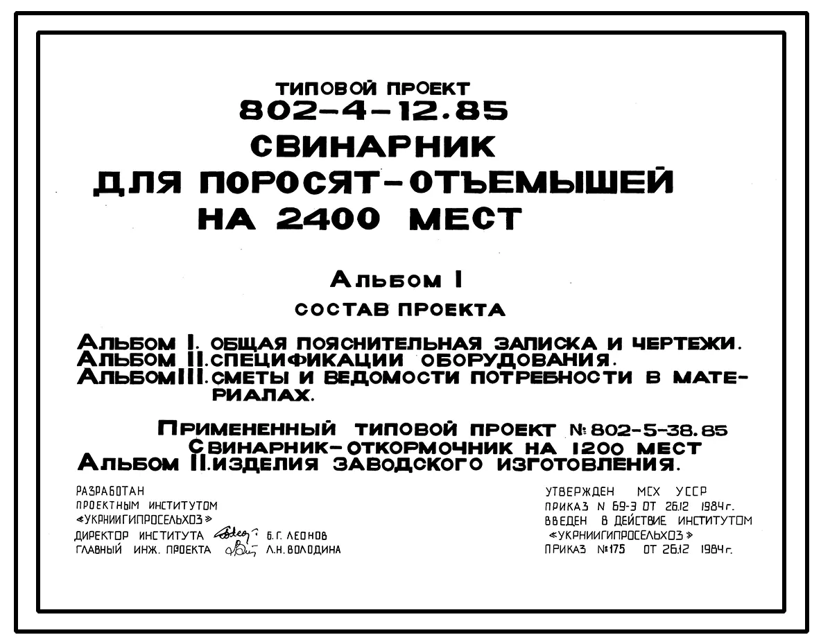 Типовой проект 802-4-12.85 Свинарник для поросят -отъемышей на 2440 мест