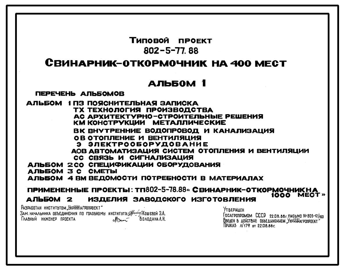 Типовой проект 802-5-77.88 Свинарник-откормочник на 400 мест
